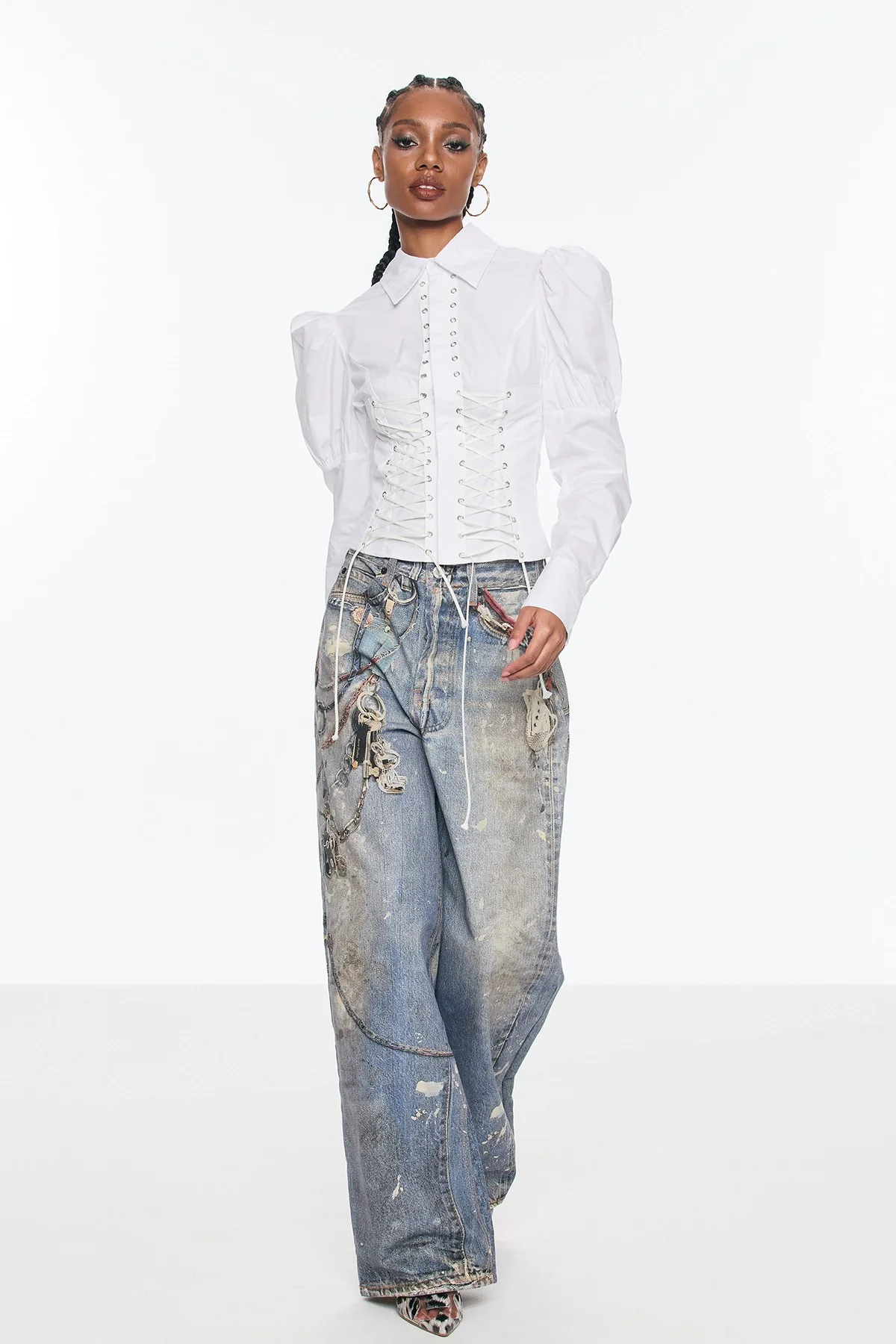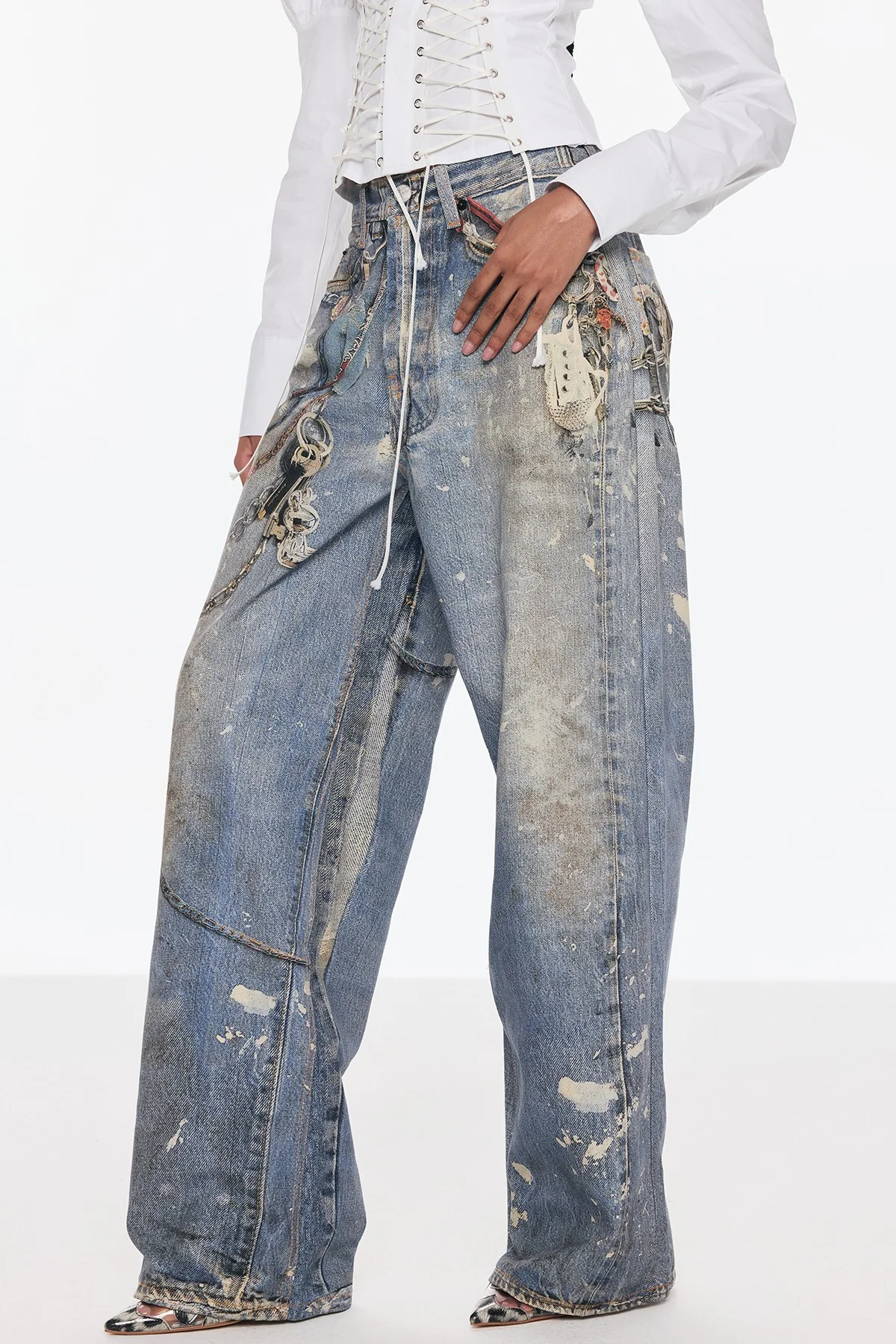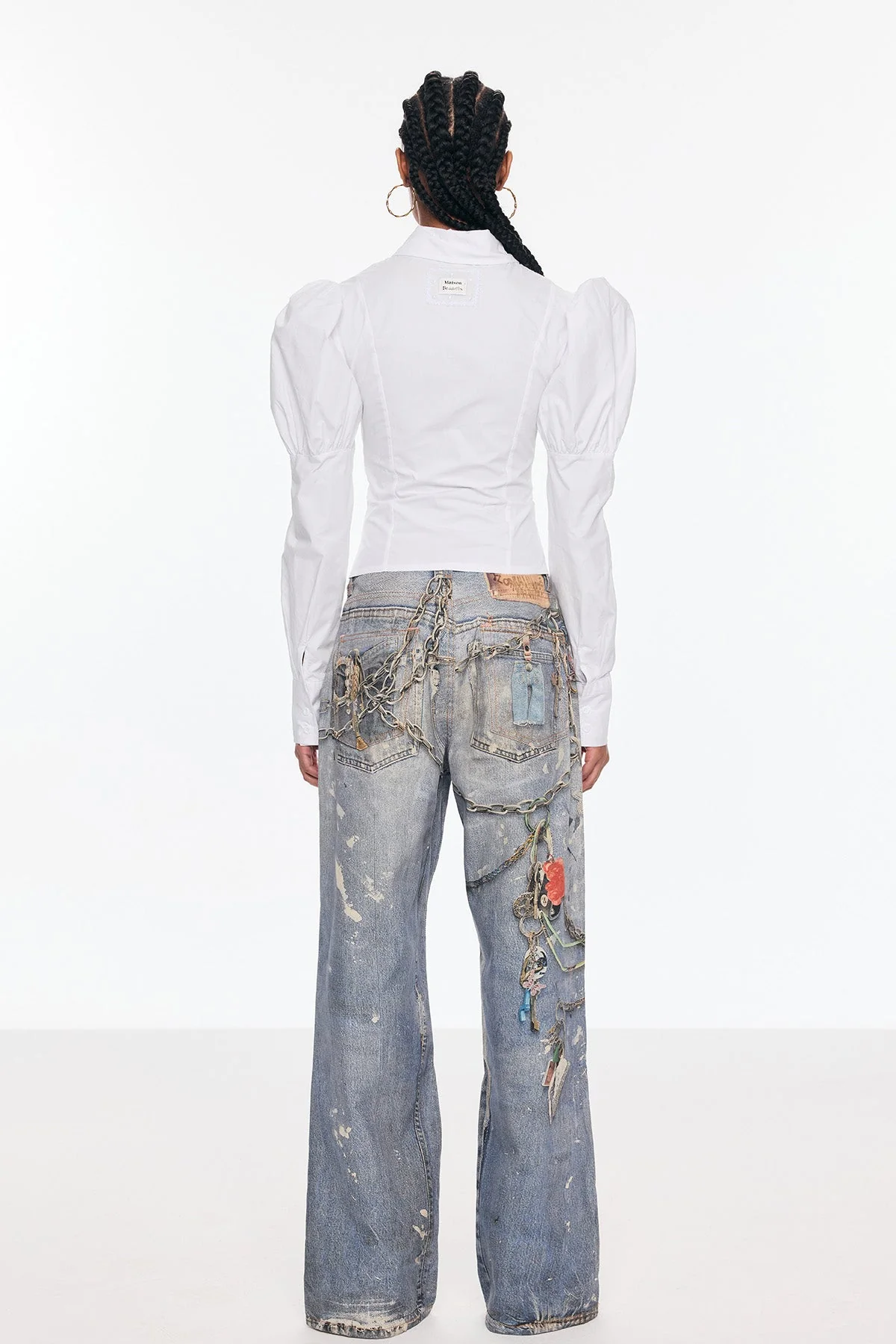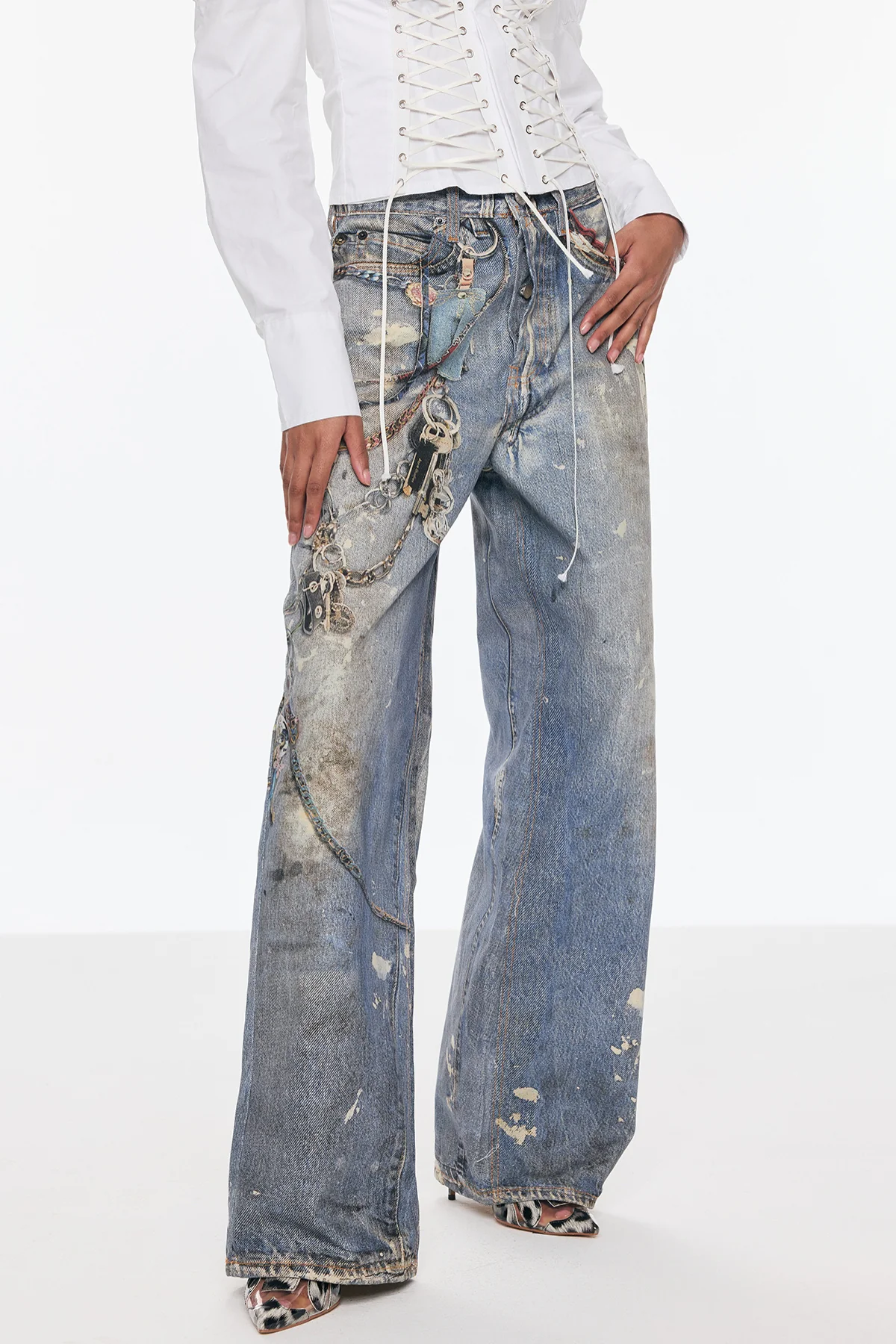 Discover the must-have Chain Print Wide Leg Blue Jeans . Elevate your style with these stunning jeans featuring a unique chain print. Crafted from 100% Cotton, these non-stretch jeans offer comfort and style. Perfect for any occasion, these wide-leg jeans are a statement piece for your wardrobe. Experience the ultimate blend of fashion and comfort with the Chain Print Wide Leg Blue Jeans. Color may vary slightly due to lighting. Machine wash gently for best care.