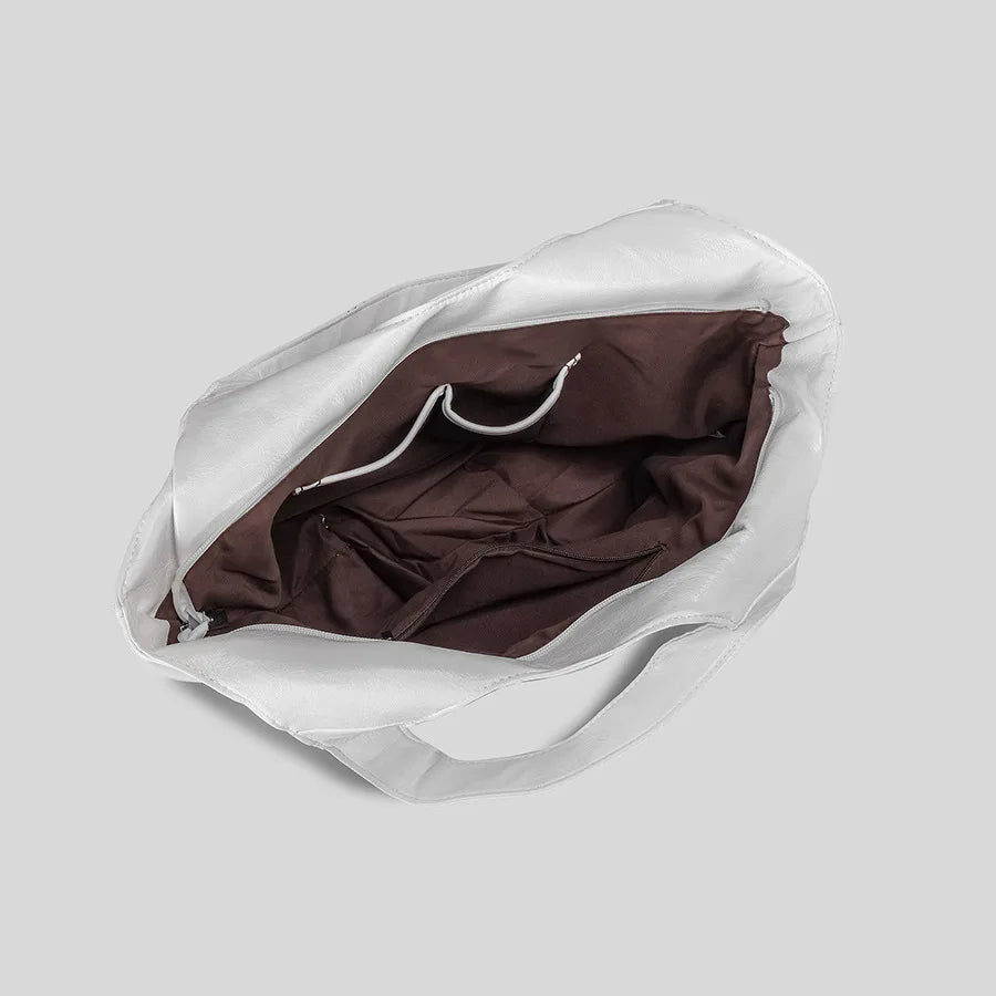 The Chaos Leather Shoulder Bag seamlessly blends fashion with functionality, perfect for your busy days. This oversized bag accommodates laptops, books, and everyday essentials effortlessly with its spacious interior and multiple compartments for easy organization. The sturdy shoulder strap ensures comfort, whether youre at work, traveling, or shopping. Transition smoothly from office to casual wear with its versatile design, offering durability, style, and practicality for everyday use. Discover our styling inspirations on Instagram @mermaidway. Measurements: L – 42 cm / 16.5 inch, W – 10 cm / 3.9 inch, H – 30 cm / 11.8 inch