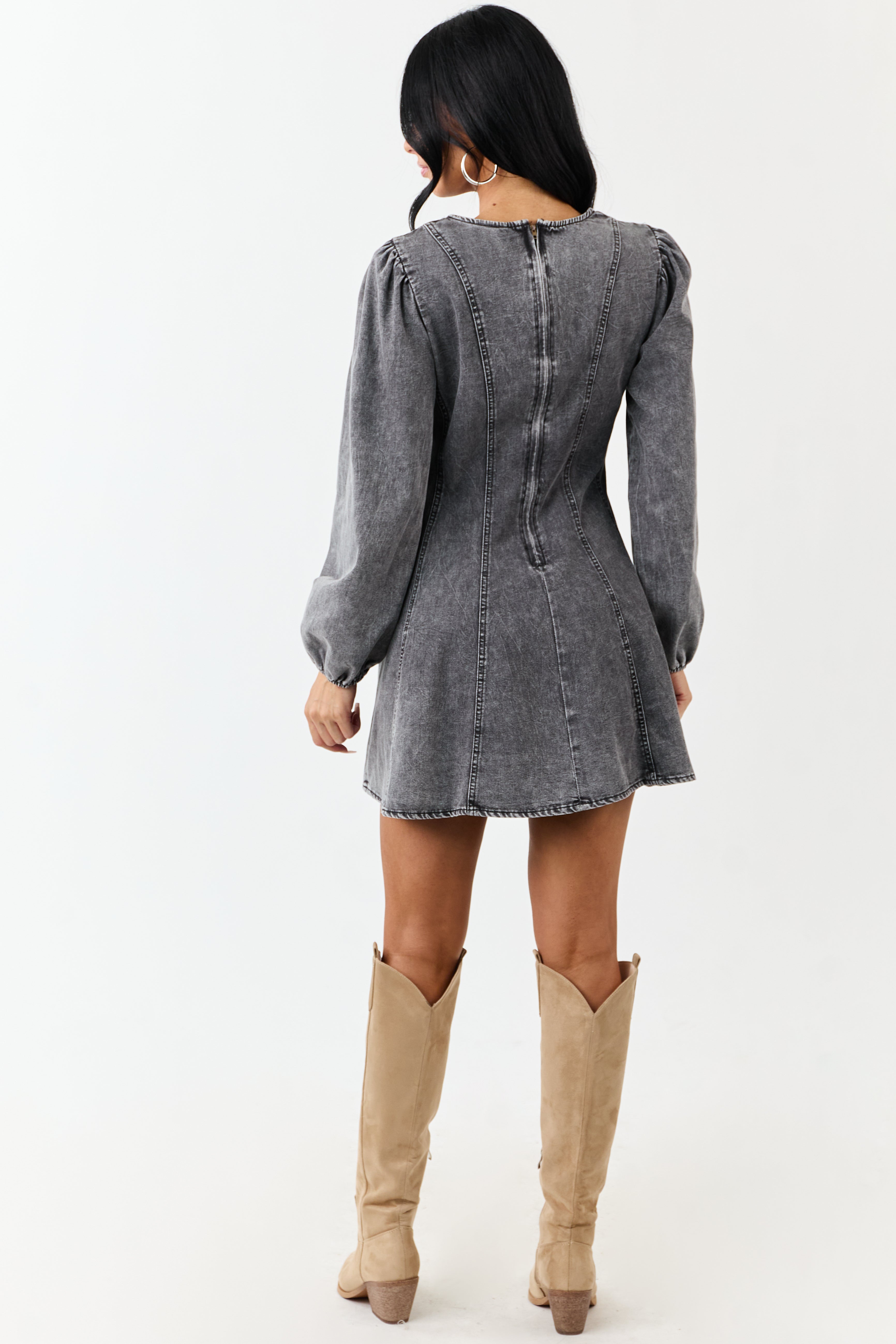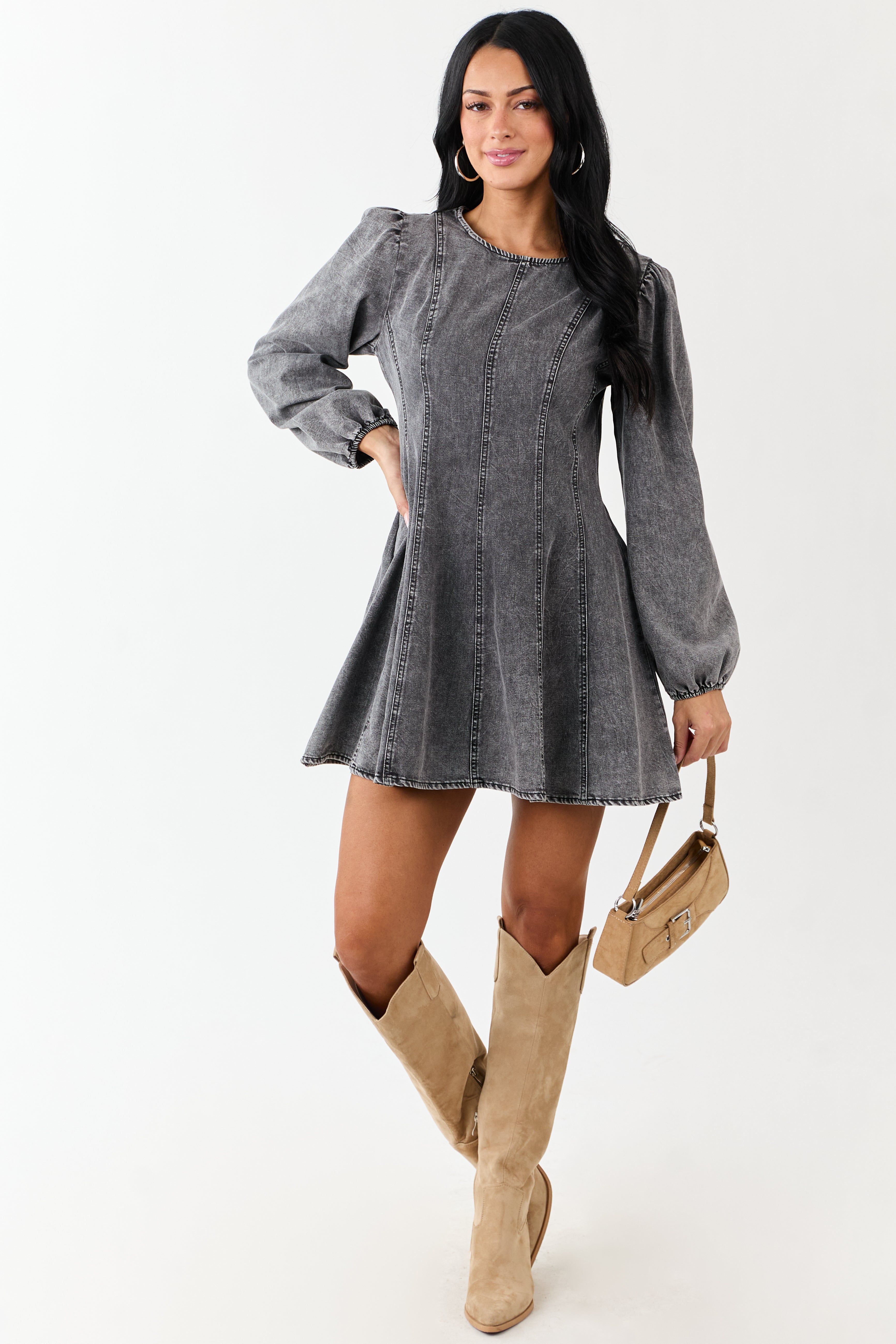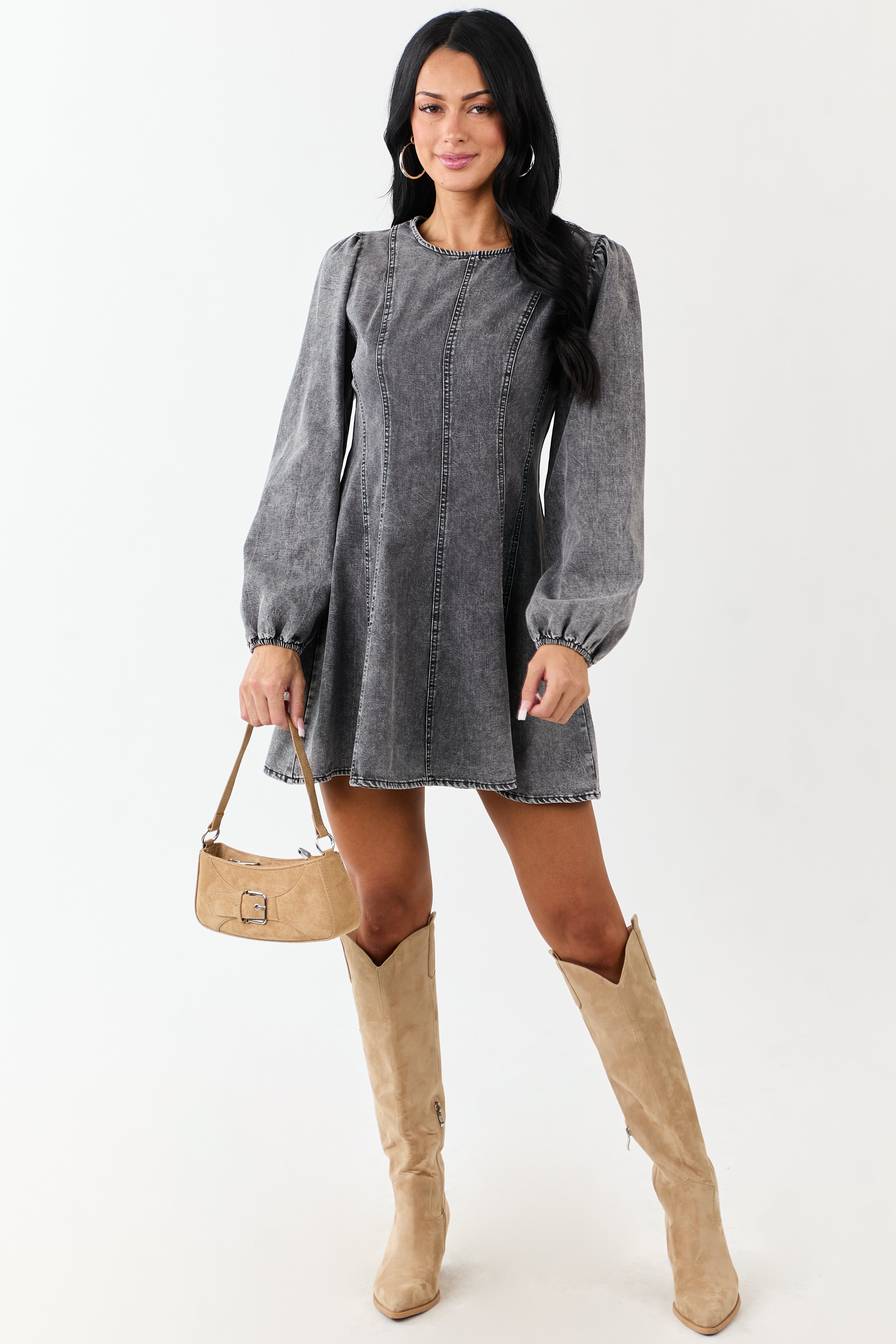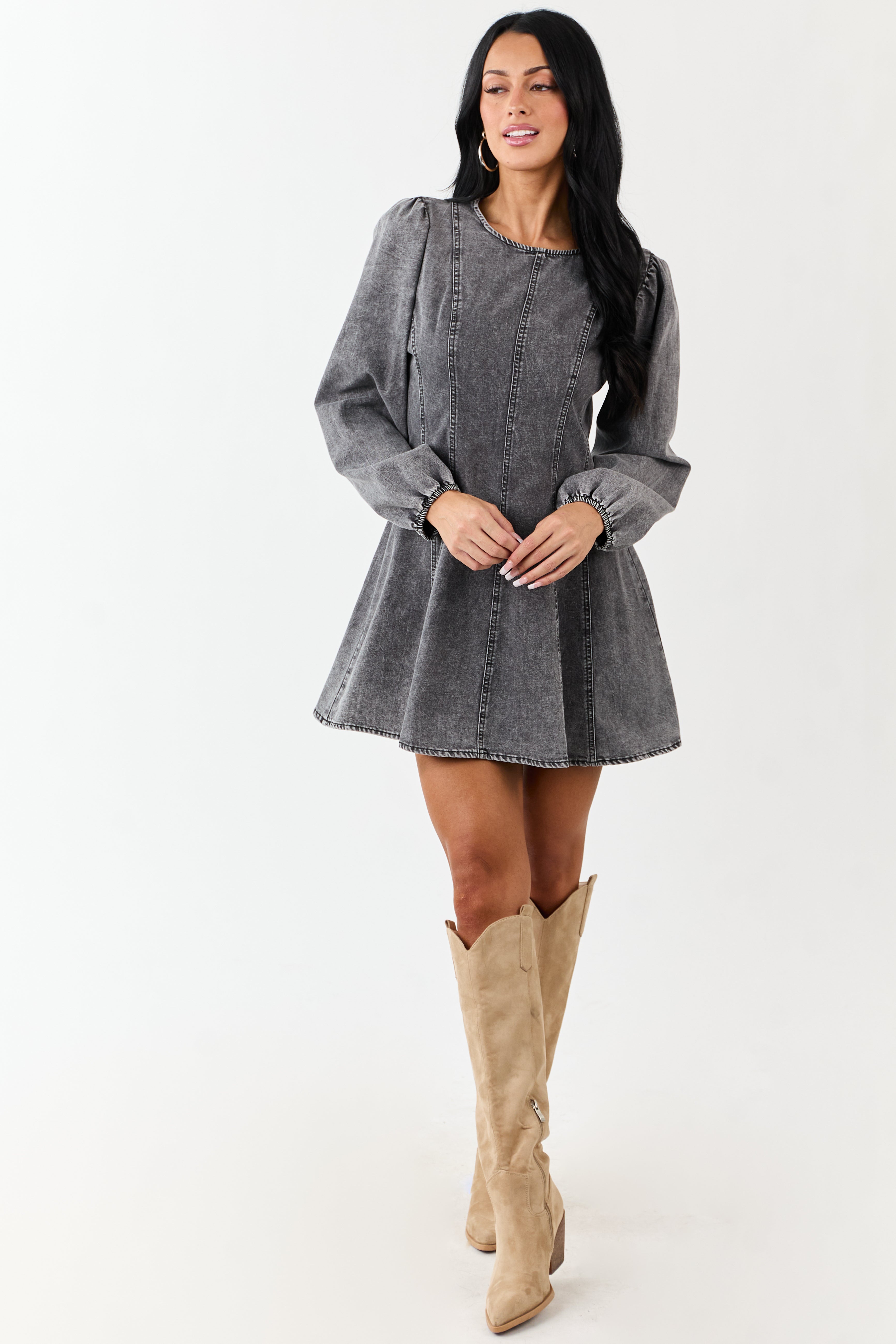 This charcoal denim mini dress is a must-have for your wardrobe. Featuring a flattering A-line fit and lived-in finish, it is made of non-stretchy lightweight denim for a comfortable and stylish look. Complete with elastic cuffs, back zipper, and unlined design, this dress suits various occasions. Grab this 80% Cotton, 20% Polyester dress now! Size Chart: XS (Numeric Size 0/2, Bust: 31-32″, Waist: 23-24″), S (Numeric Size 4/6, Bust: 33-34″, Waist: 25-26″), M (Numeric Size 8/10, Bust: 35-36″, Waist: 27-28″).