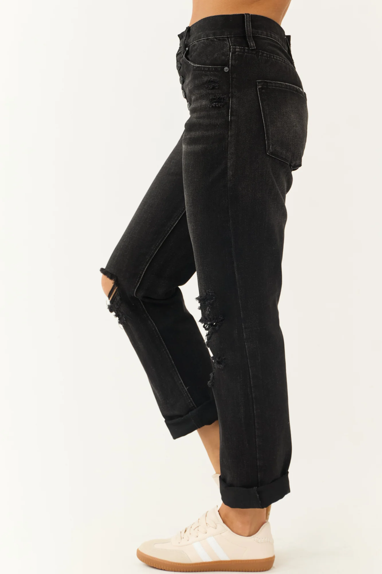Achieve edgy style with these Charcoal Distressed Straight Jeans . Made of 100% Cotton, these non-stretch denim jeans feature high-rise fit, knee torn details, and five functional pockets. With a front rise of 11″ and back rise of 15″, these jeans come in varying inseam lengths. Care instructions: Wash inside out, machine wash cold, do not bleach, tumble dry low. Get the perfect fit with sizes ranging from 0 to 15. Model is wearing size 3, Height: 57″, Bust: 34″, Waist: 26″.