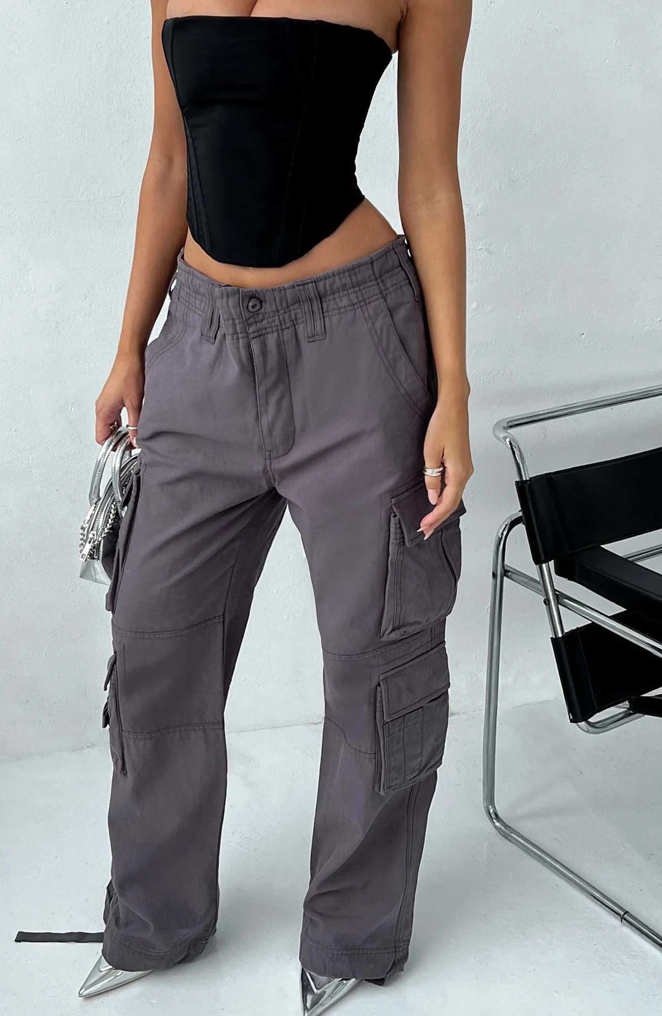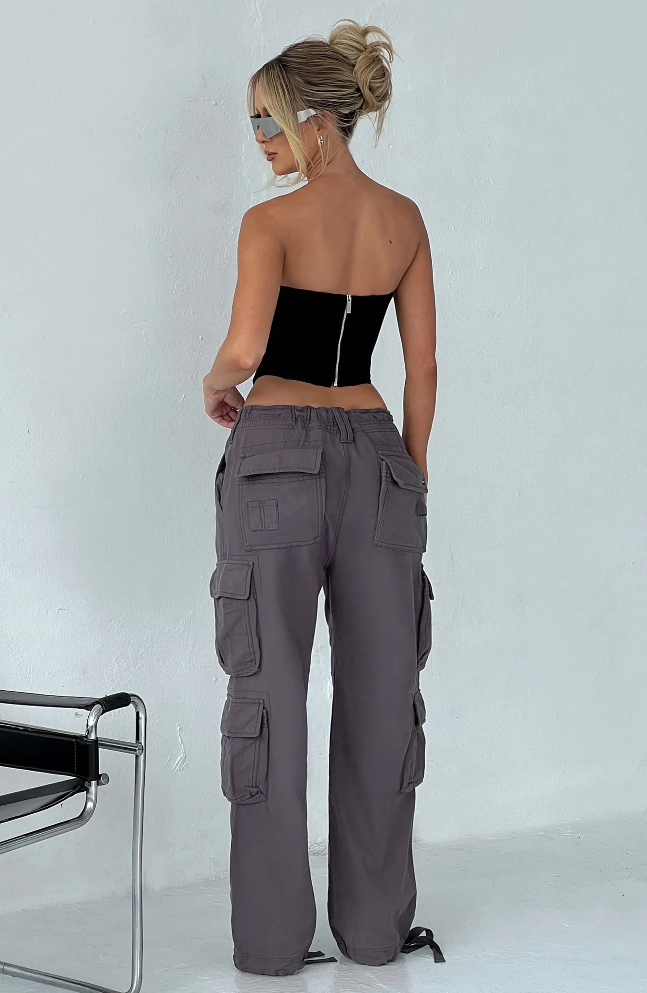 Embrace the Y2K revival with our Charcoal Wide Leg Cargo Pants. Crafted from premium woven fabric, these pants feature an oversized fit, multiple pockets, and a high-waisted design. Pair them with the Mika corset for a trendy aesthetic. Available in sizes XS to XXL. Elevate your style game with these fashionable cargo pants perfect for any occasion.