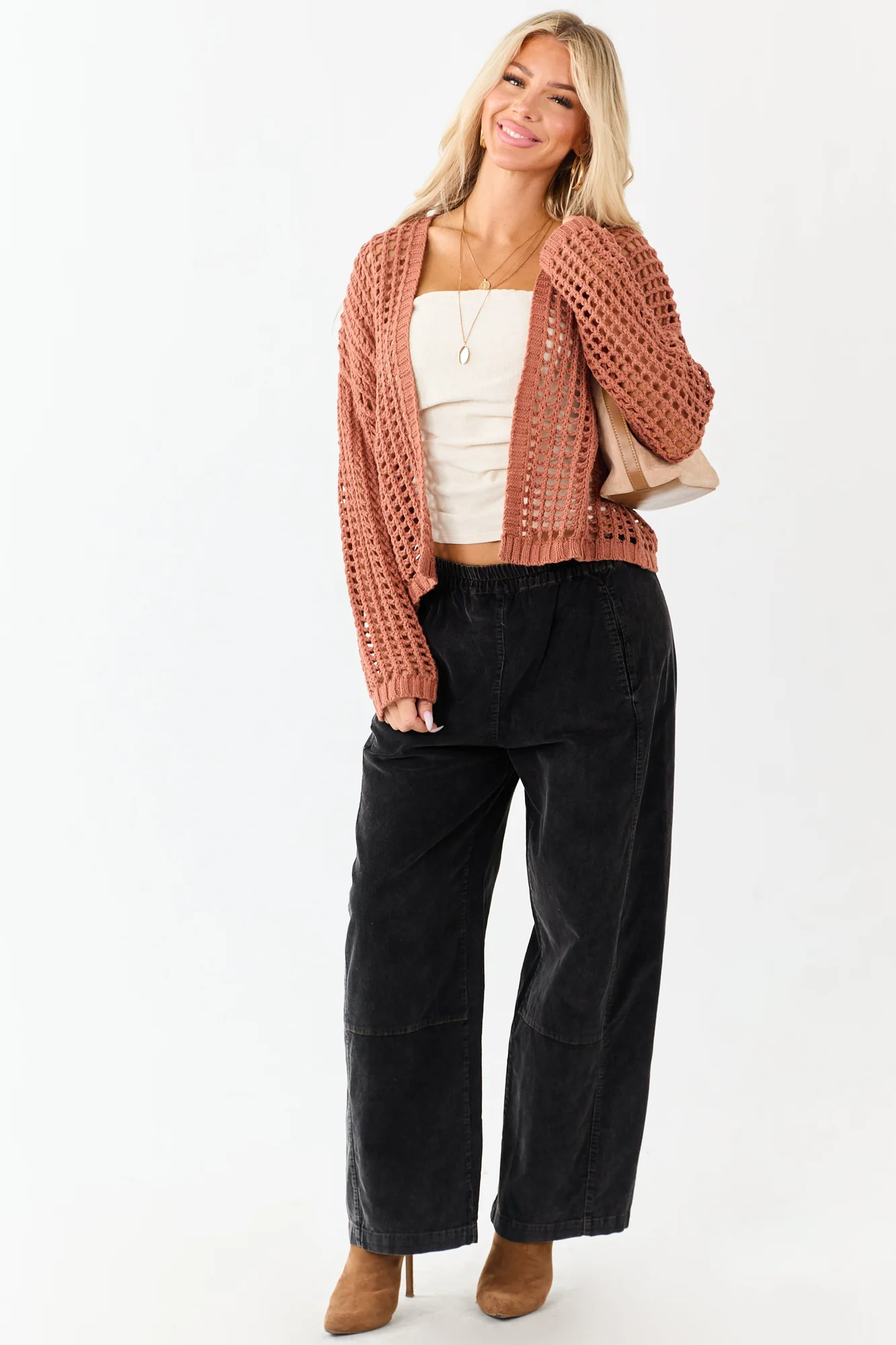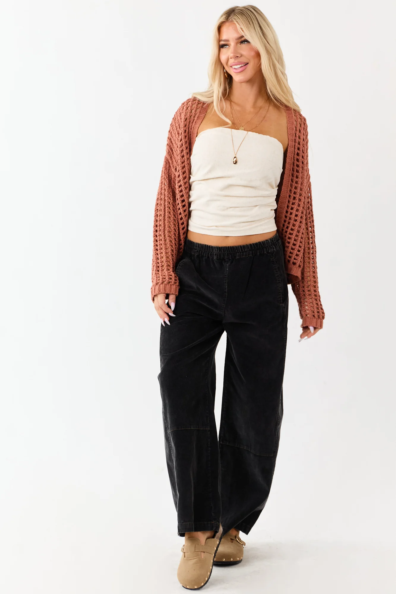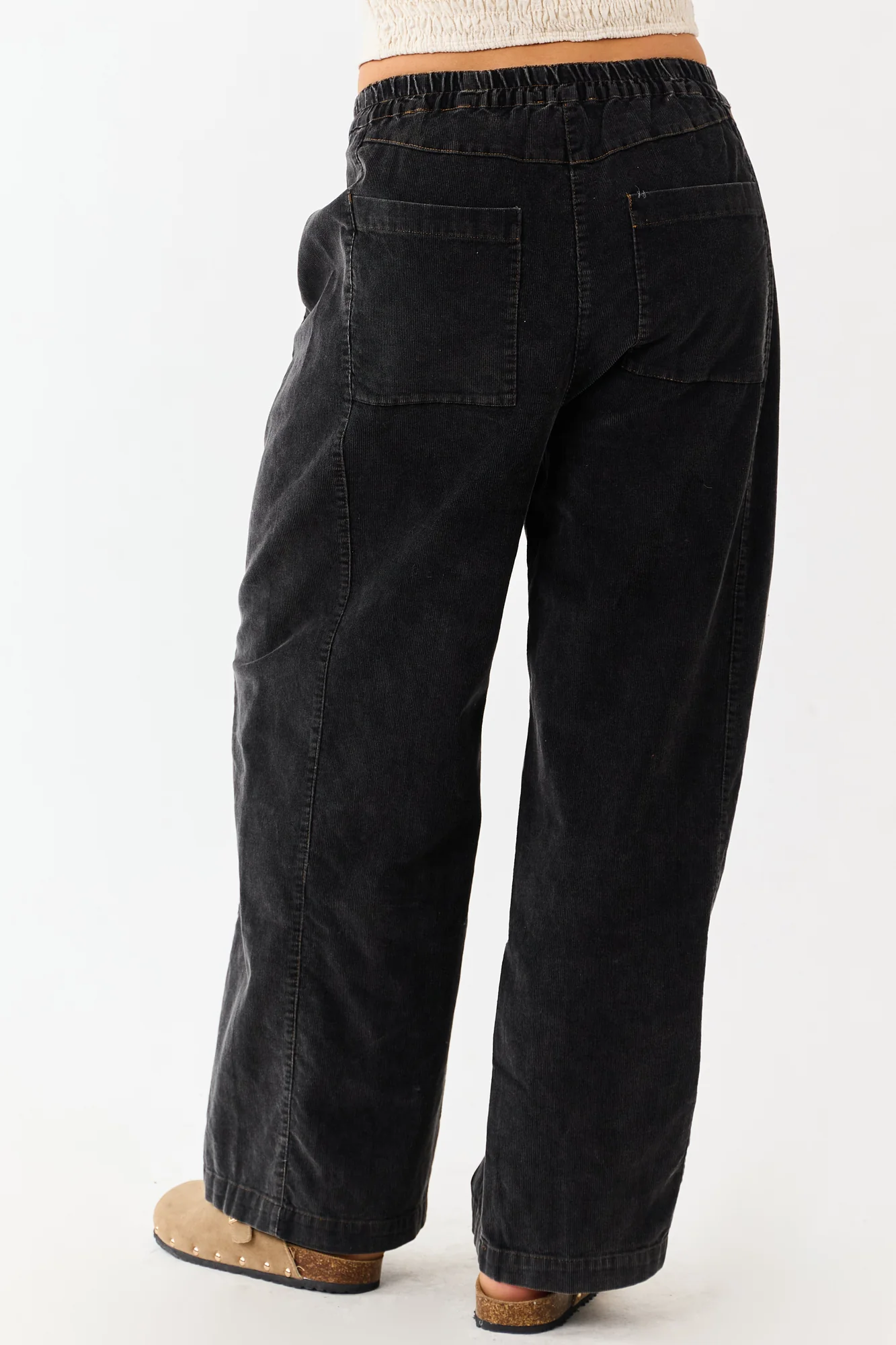 Upgrade your wardrobe with our Charcoal Wide Leg Corduroy Pants featuring a stone-washed finish for vintage charm. These pants offer comfort with an elastic smocked waistband and on-trend high waisted design, ideal for everyday wear. Made from 100% cotton, these ankle-length pants come with four pockets and a non-stretchy corduroy texture. Available in sizes XS to XL (0/2 to 16/18). Models size: Small | Height 57″ | Bust 35″ | Waist 26″. Check our size chart for your perfect fit.
