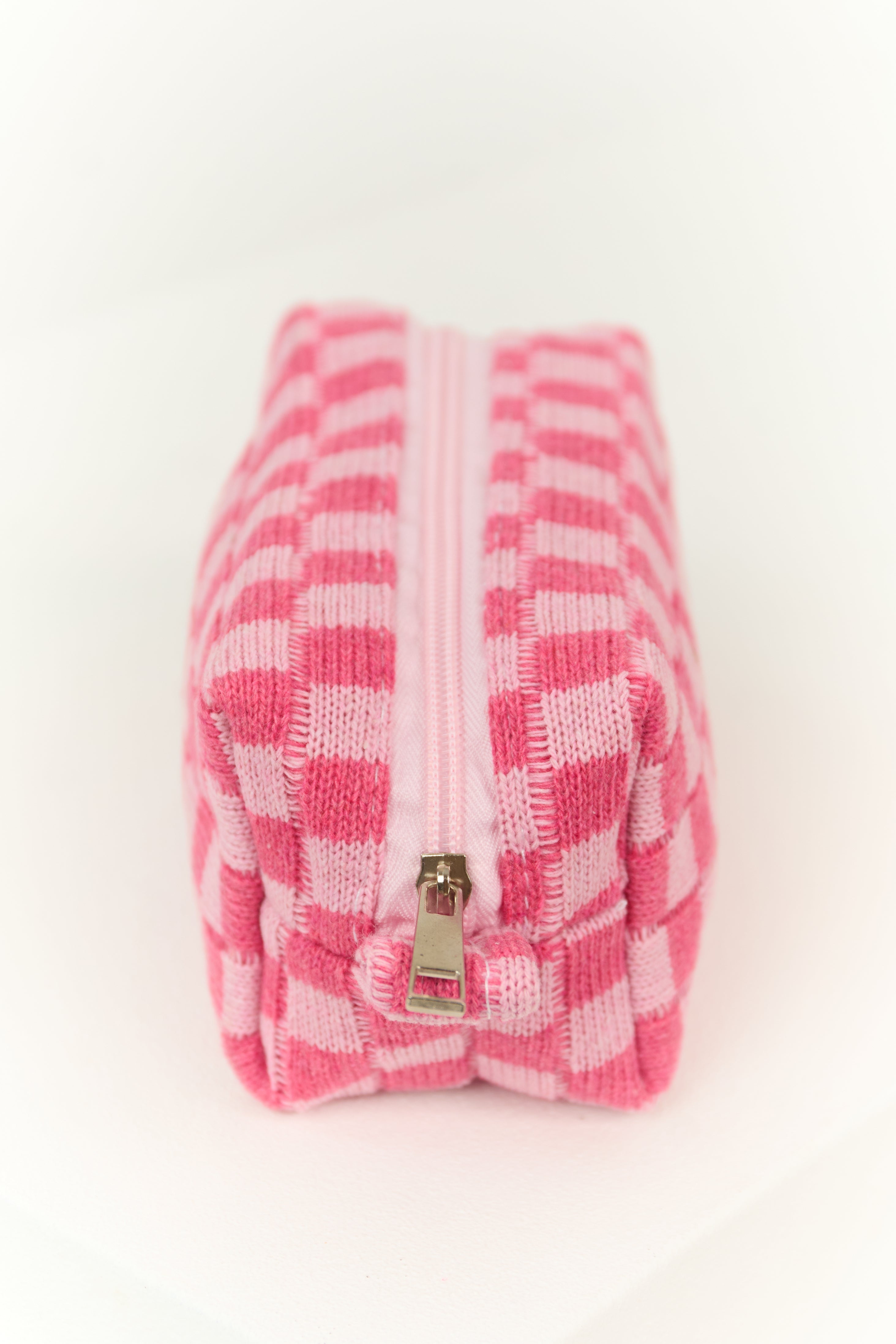 This Checkered Baby Pink Makeup Travel Bag is crafted from non-stretchy fabric and features a convenient zipper opening, side handle loops, and a lined interior for organizing your essentials. With a compact size of 8″ in length, 3″ in width, and 4″ in height, this imported bag is perfect for storing your makeup items on the go.