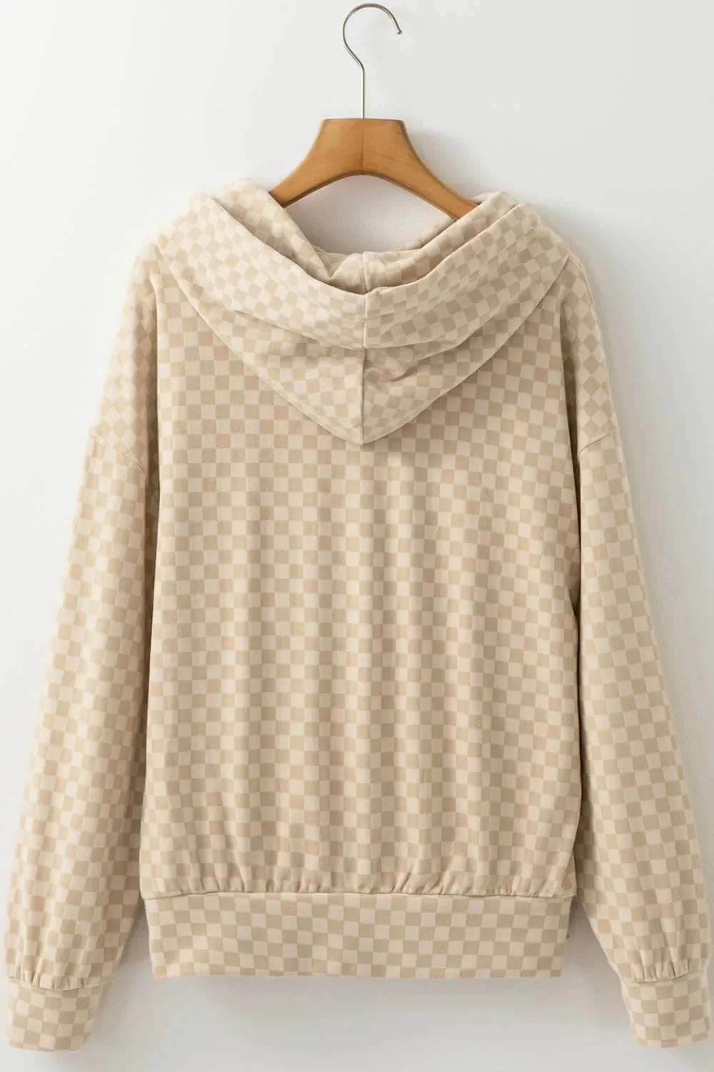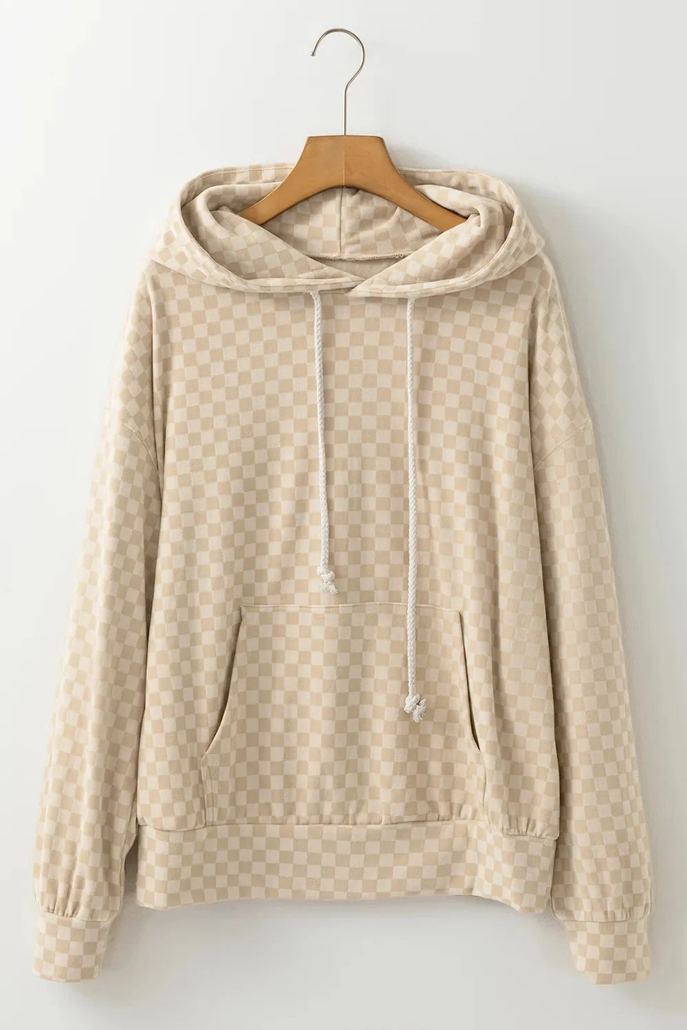 Get ready for the cooler weather with this stylish Checkered Hoodie. Made with a pocketed design, sheer pattern, and slight stretch for comfort. Crafted from 90% polyester and 10% elastane, this hoodie is both cozy and trendy. Easy to care for with machine wash cold and tumble dry low. Available in multiple sizes: S, M, L, XL. Stay fashionable and comfortable all season long!