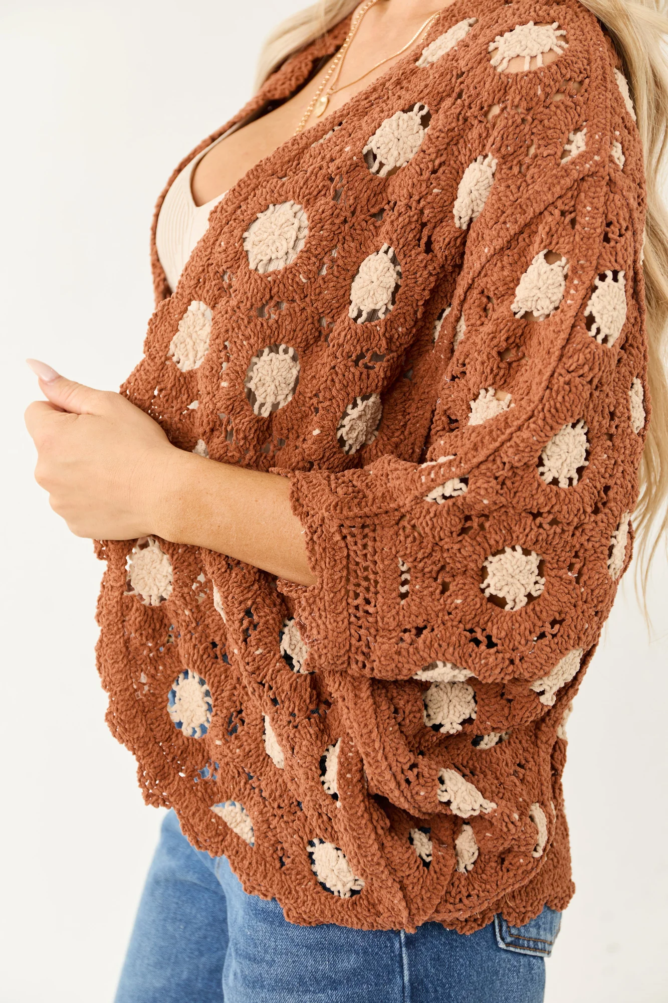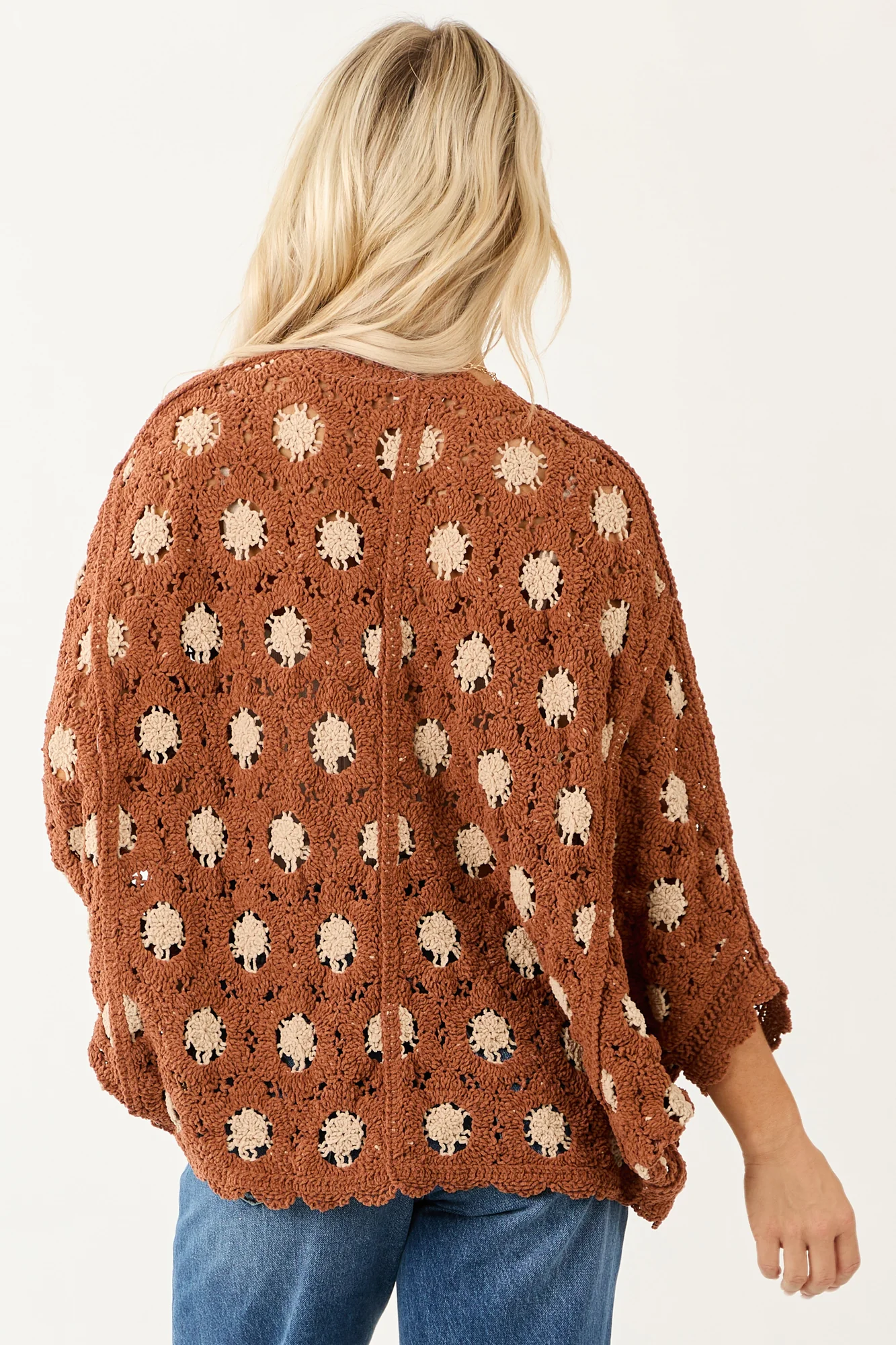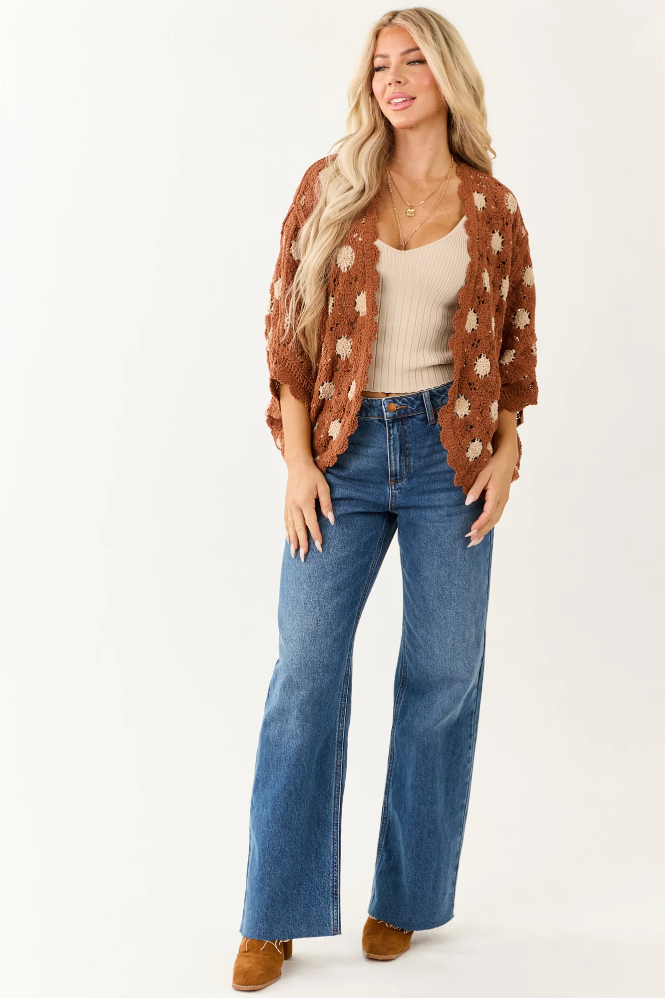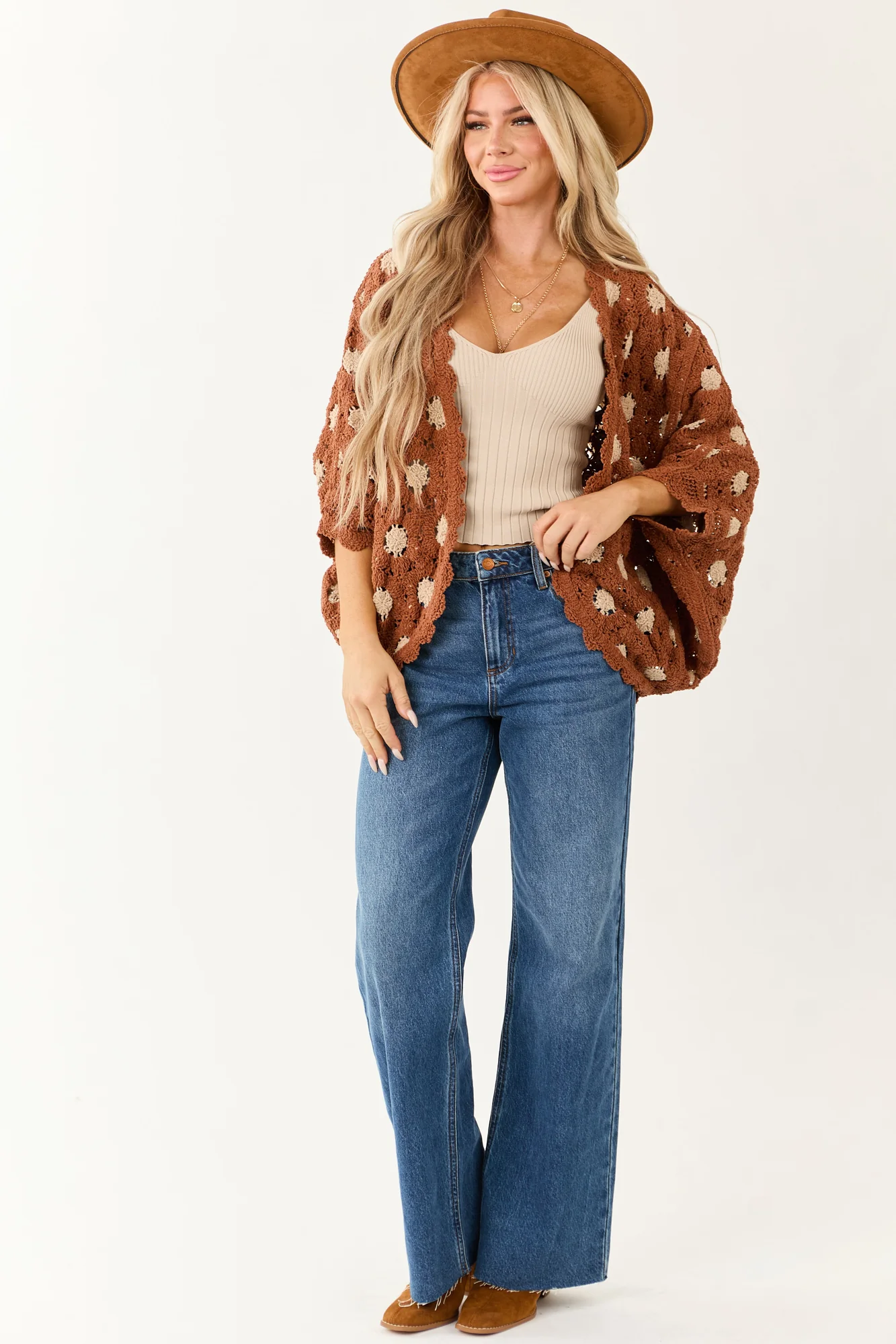 Indulge in luxurious comfort with our Chenille Batwing Sleeve Open Knit Cardigan in Ginger Latte. Crafted from 100% polyester, this elegant cardigan features a stretchy chenille knit, alluring scallop trim, trendy open front design, and chic drop shoulder fit. The rich neutral tones exude effortless style, making it a versatile addition to your wardrobe. Whether you layer it over a casual ensemble or dress it up for a night out, this cardigan offers both fashion and coziness in one piece. Perfect for the autumn season. Model is wearing a size Small. Model’s Profile: Size 3, Height 57″, Bust 35″, Waist 26″