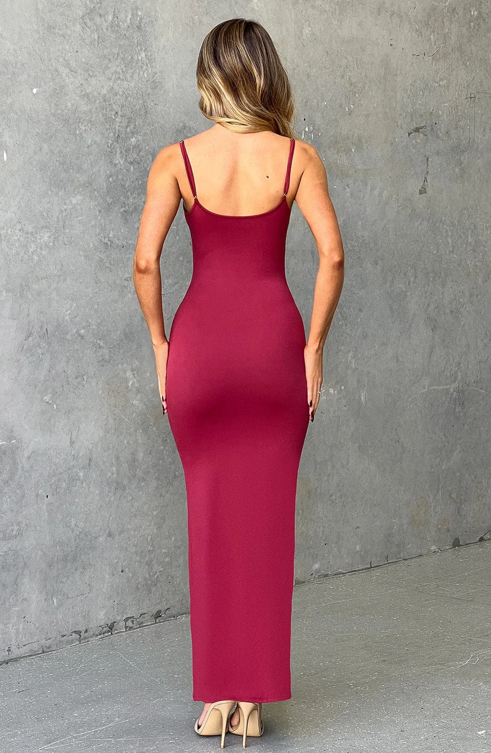 Elevate your style with the Cherry Scoop Neck Maxi Dress. Crafted from premium modal fabric, this buttery soft dress offers a second skin feel with double-layered comfort. Perfect for lounging or parties, the form-fitting design features thin shoulder straps and a scoop neck for a flattering look. Embrace ultimate comfort that moves with your body. Available in sizes XS to XXL.