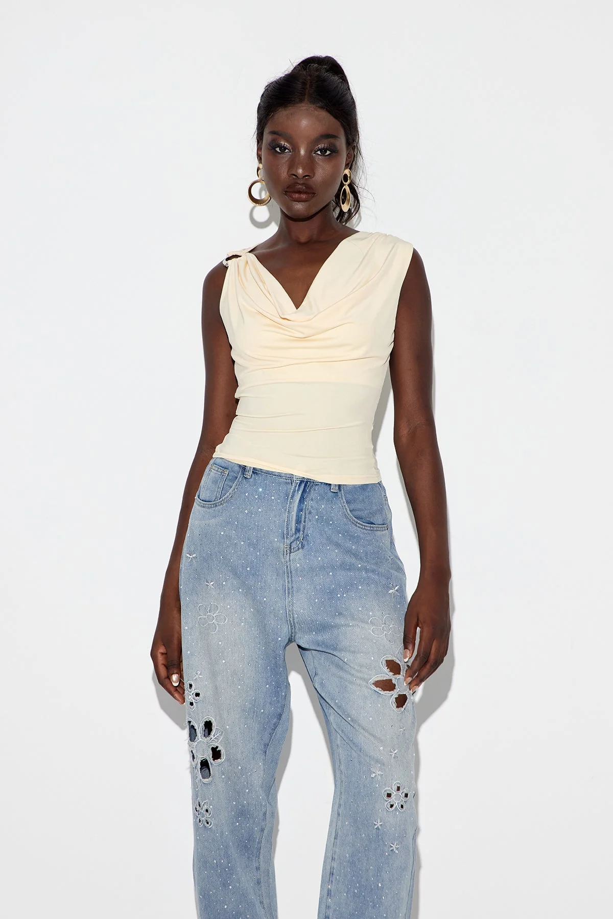 Indulge in elegance with the Chic Apricot Cowl Neck Sleeveless Top . This sophisticated top, available in sizes S, M, and L, boasts a sleek silhouette that accentuates your curves. The draped cowl neckline adds a touch of charm, while the non-stretch fabric ensures a tailored fit perfect for professional or evening attire. Crafted for style and comfort, this bodycon top is a chic essential that pairs beautifully with pants or skirts. Elevate your look effortlessly while exuding confidence with this versatile top.