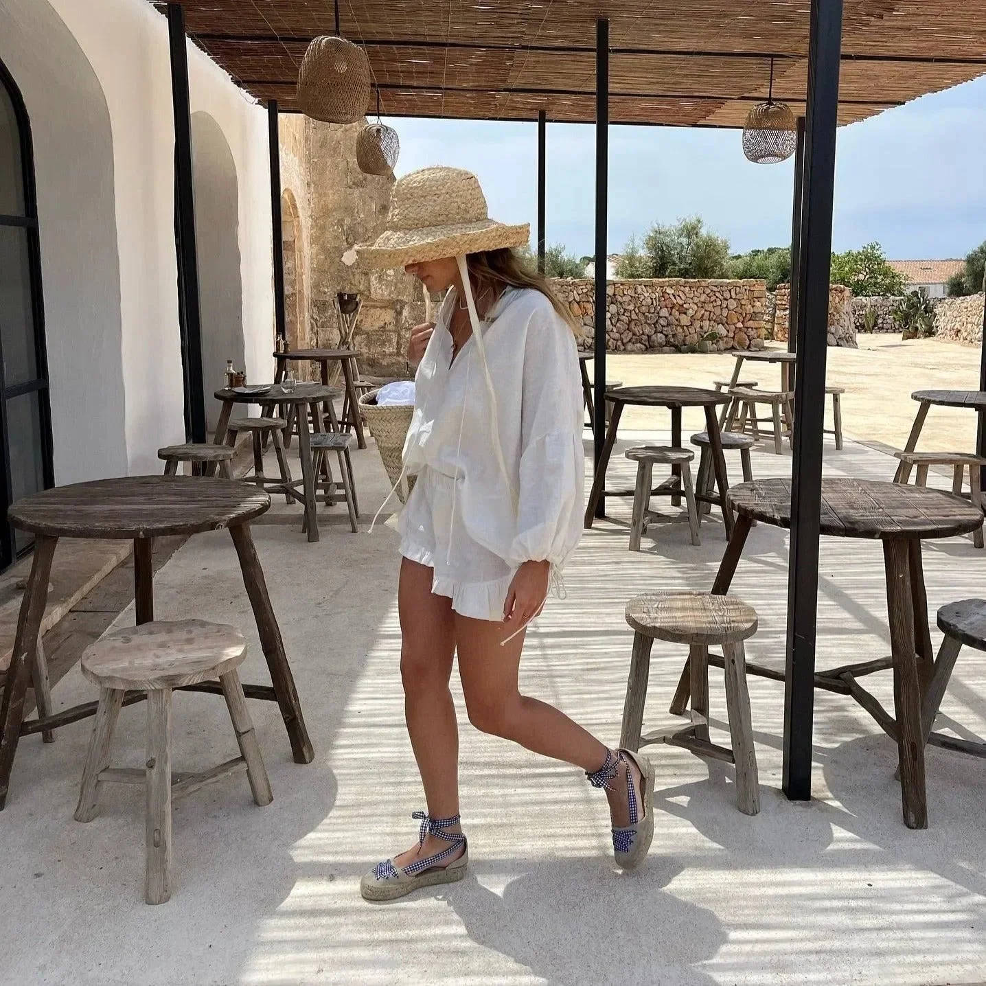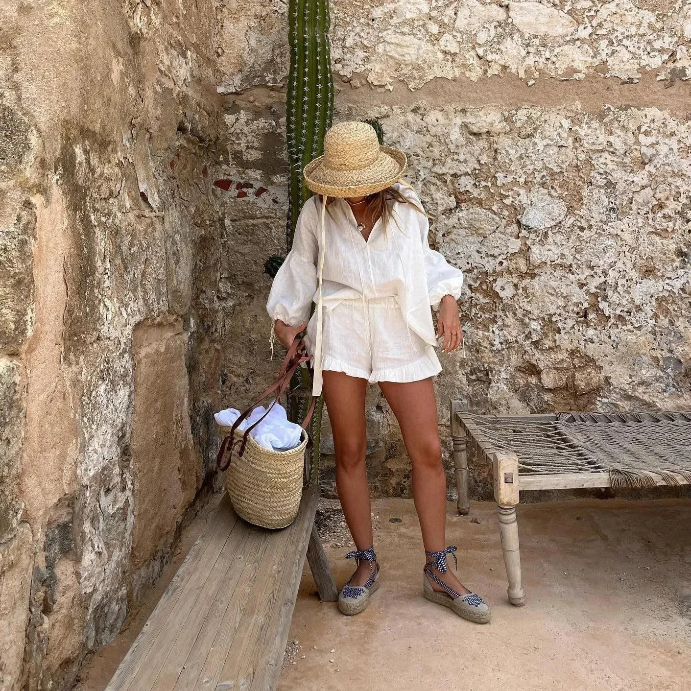 Step into beach elegance with our Chic Beach Cruiser Ruffle Matching Set. This stunning set includes a chic long-sleeved top adorned with delicate ruffles and a high-waisted bottom, perfect for sunset strolls or seaside brunches. Crafted from lightweight, breathable polyester-cotton blend, this set keeps you cool and stylish. The sophisticated design ensures you stand out with confidence. Elevate your wardrobe with this versatile set. Explore style ideas on Instagram @mermaid_way. Enjoy a complimentary size exchange.