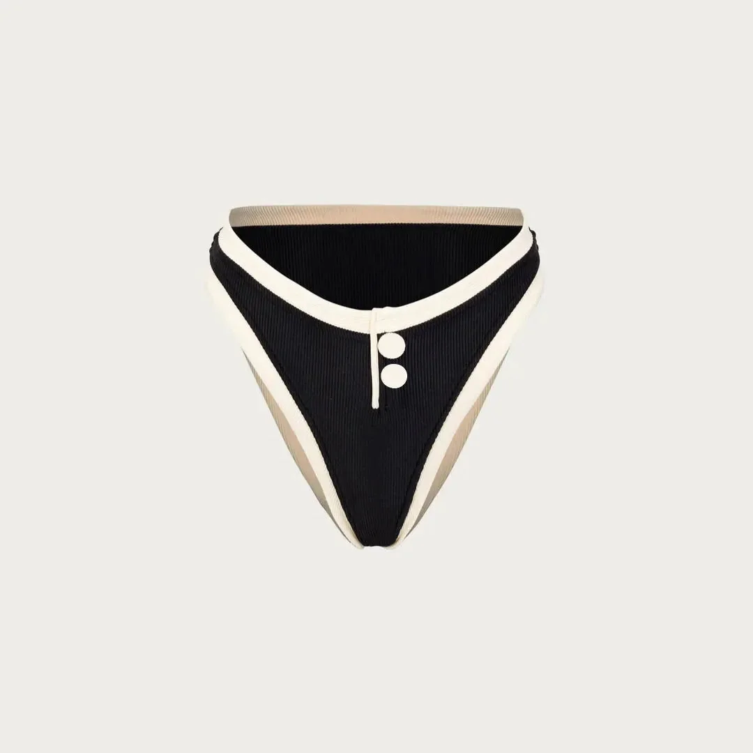 Elevate your beach attire with this chic Black & Cream Button Bikini. Featuring vintage-inspired button accents, this bikini includes a cropped top with a flattering scoop neckline and a supportive fit. The high-waist bottom enhances your silhouette, offering elegance and playfulness. Its comfortable, stretchy fabric ensures a secure and flattering fit all day long. Make a statement with this irresistible bikini that balances sophistication and timeless appeal. Explore styling ideas on Instagram @mermaid_way and enjoy a complimentary exchange for sizing convenience if needed.