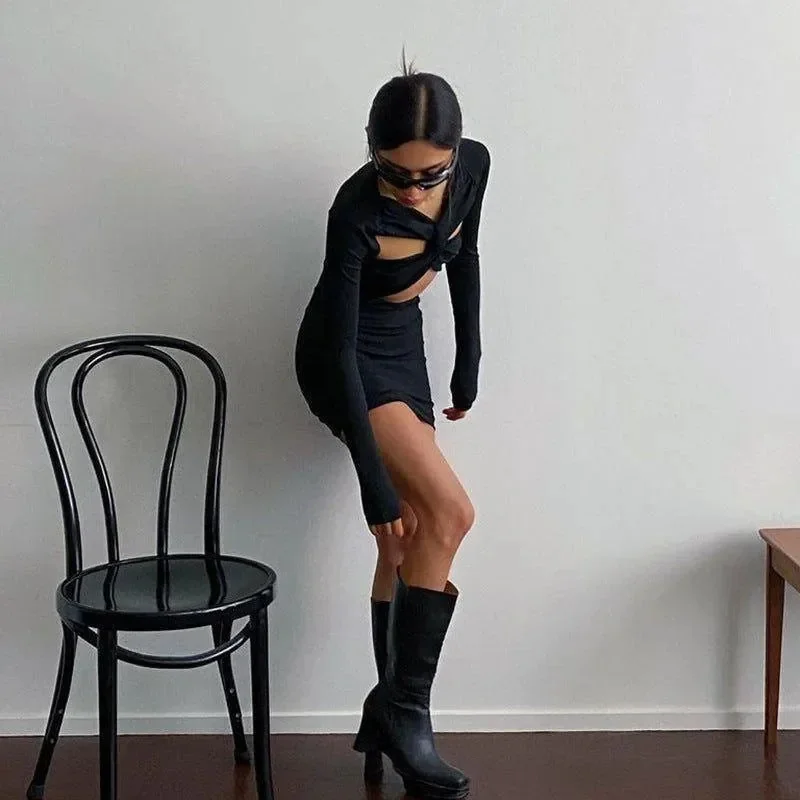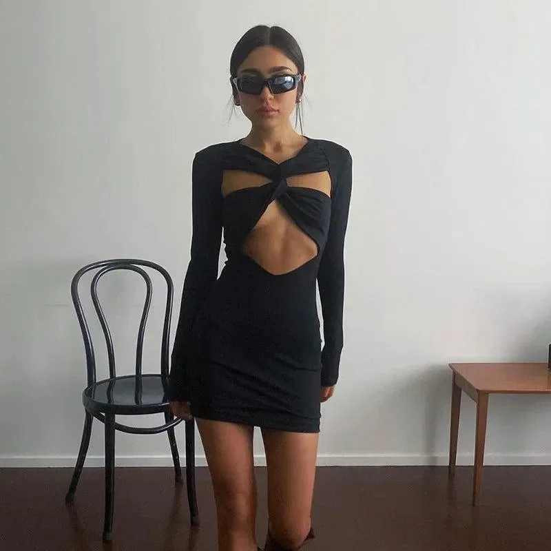 Elevate your style with our chic black cut-out long sleeve dress perfect for any event. This body-hugging dress highlights your figure and is crafted from high-quality polyester and spandex blend for comfort and style. Whether attending cocktail parties, dinners, or nights out, this versatile dress helps you make a statement effortlessly. Transition from day to night with ease and enhance your look by accessorizing with statement jewelry. Discover style tips on our Instagram @mermaid_way for the latest trends. This final sale item is non-returnable, so choose carefully. MATERIAL: Polyester, Spandex | COLOR: Black