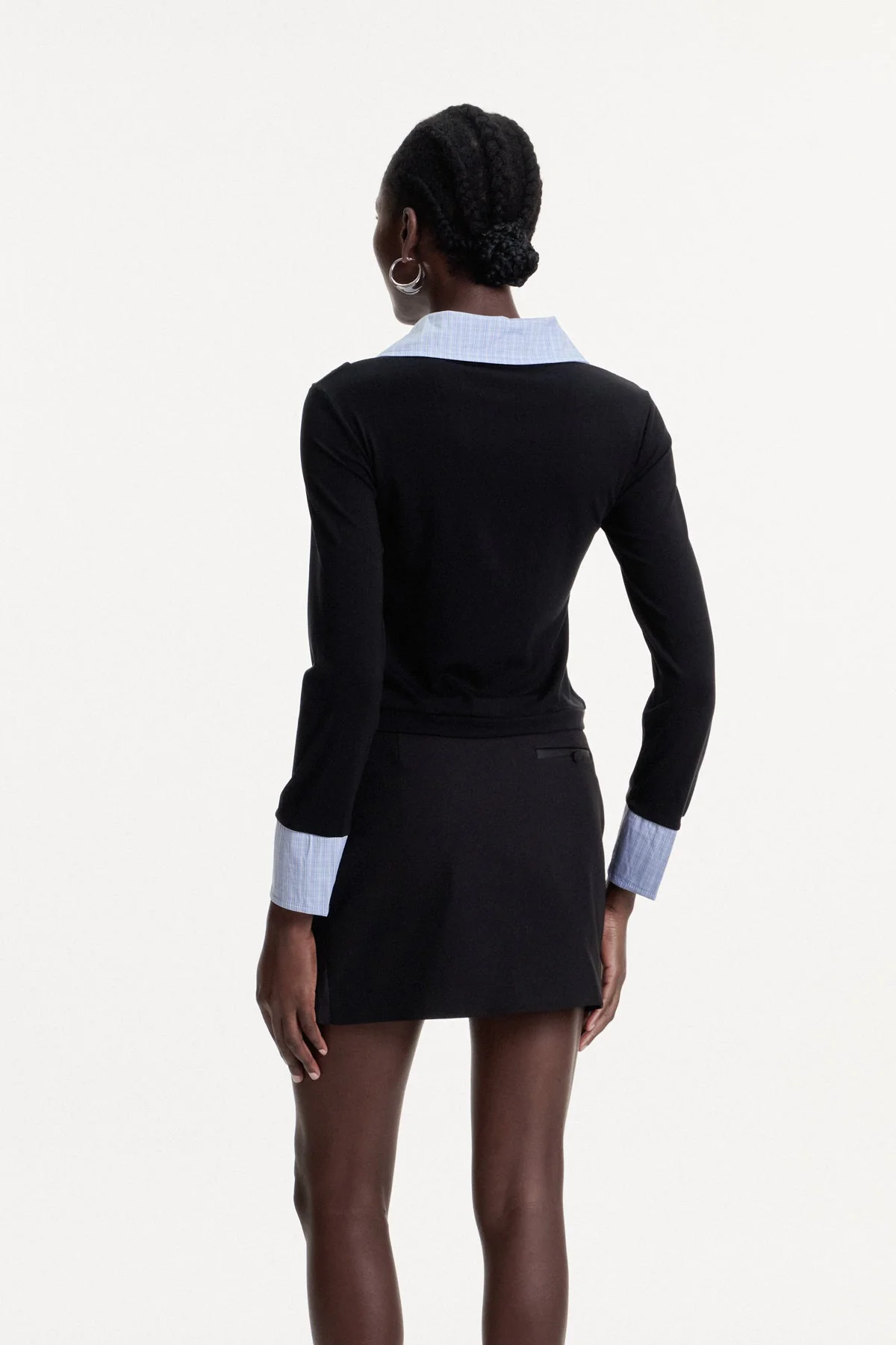 Elevate your everyday wardrobe with the Chic Black Deconstructed Top that offers a modern twist on classic style. Designed with intentional asymmetry and layered details, this top creates a dynamic silhouette. Crafted from high-quality materials for comfort and structure, it provides versatility in styling options. Slight stretch fabric for ease of movement. Ideal for gentle machine wash. Add a distinct edge to your look with this chic essential. Color may vary slightly due to lighting in images.