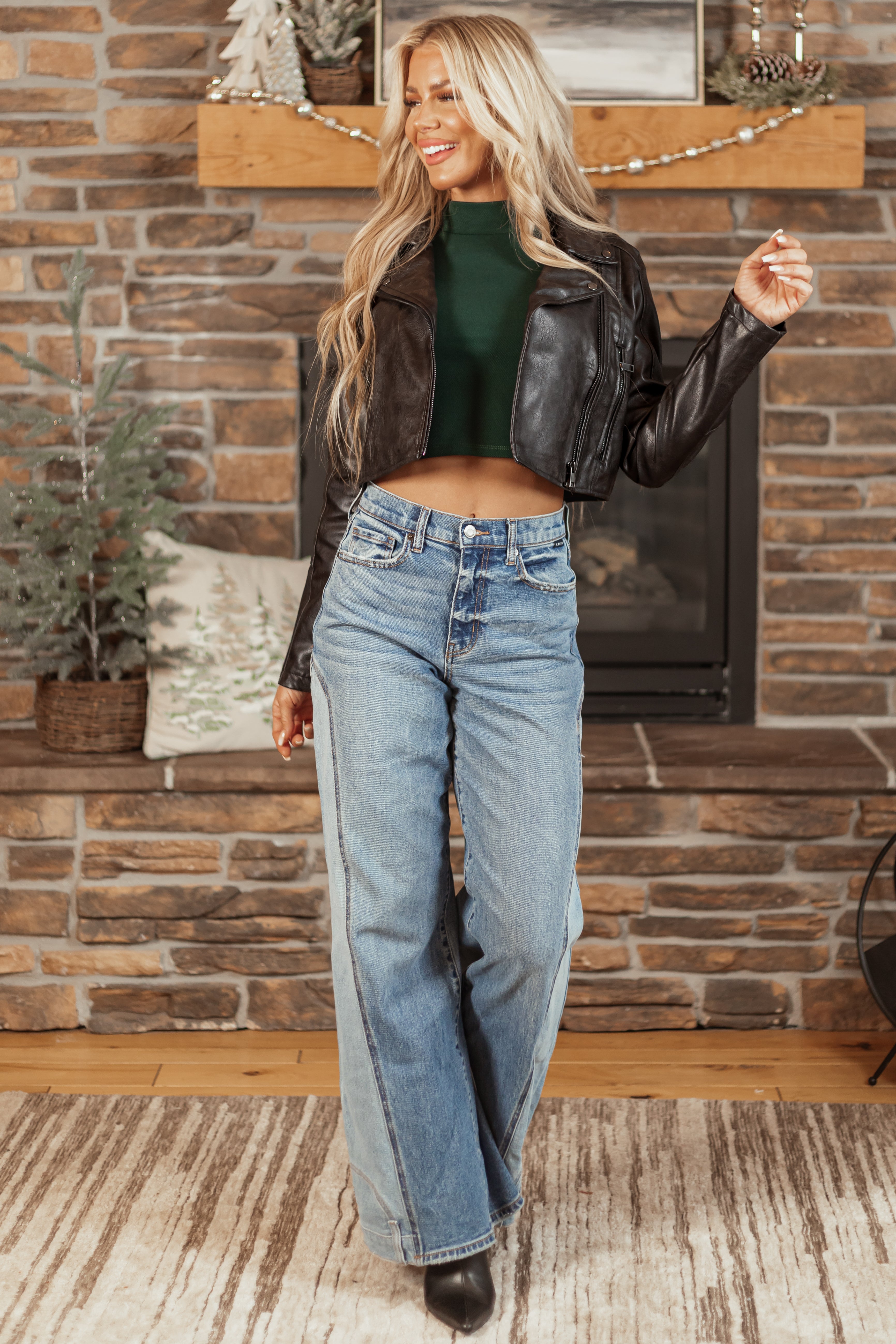 Indulge in urban sophistication with our Black Faux Leather Zip-Up Jacket. Crafted from non-stretchy faux leather, featuring an asymmetrical zipper front, long sleeves, a chic collar, functional side pockets, and stylish buckle strap details on the shoulder. Stay warm and fashionable with this lined jacket made of 100% Polyurethane exterior and 100% Polyester interior. Imported. Care instructions: Do not wash, bleach, tumble dry, iron, or dry clean. Model is wearing size Small. Model’s Profile: Size 1, Height 57″, Bust 34″, Waist 26″. Elevate your style effortlessly!