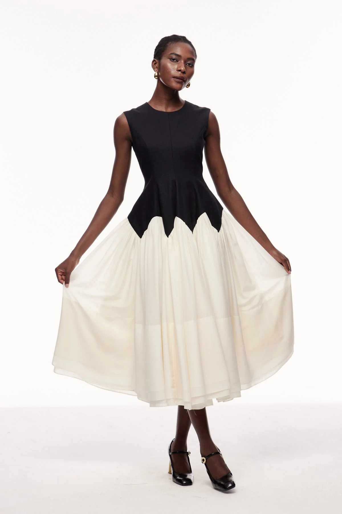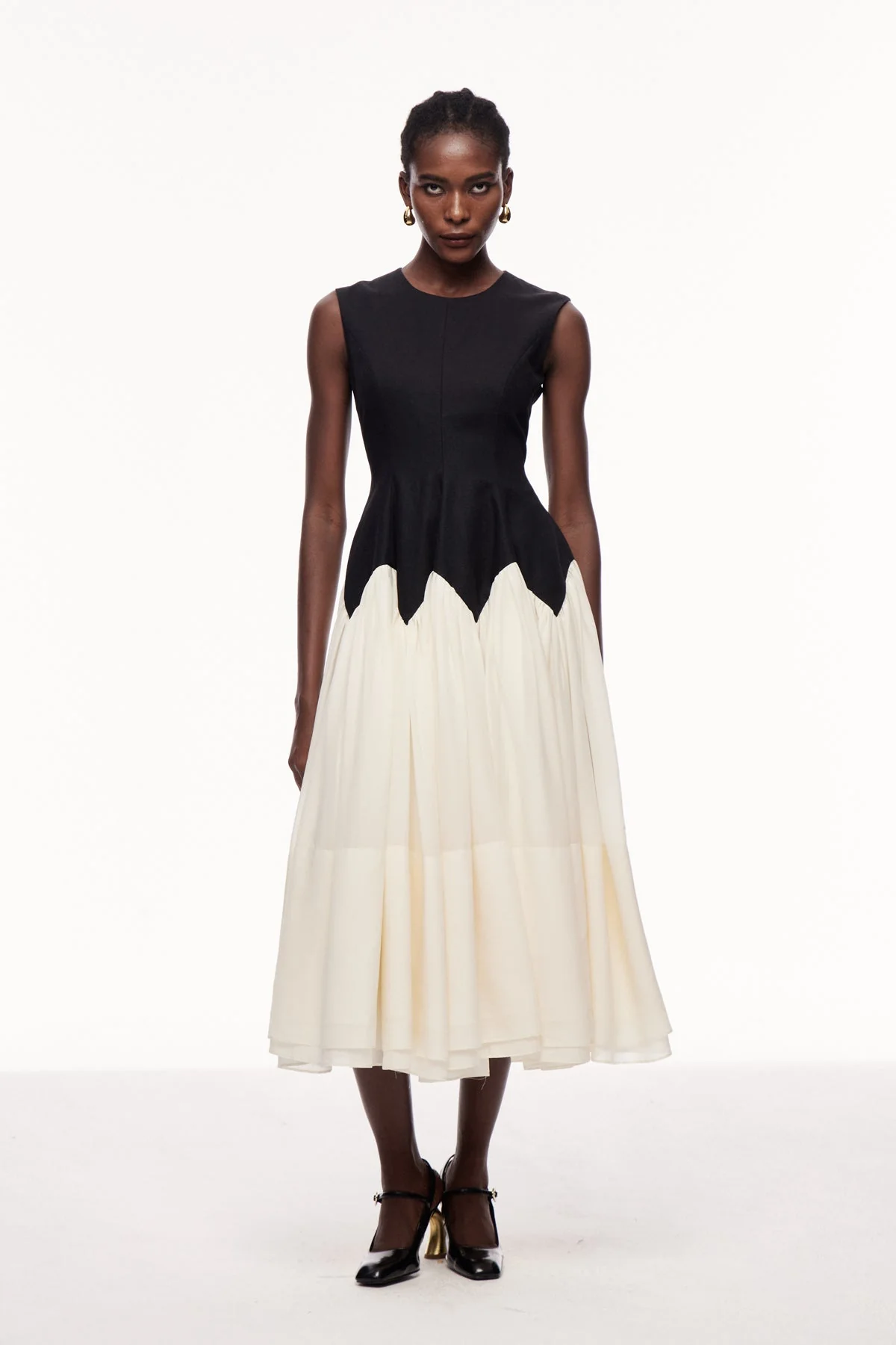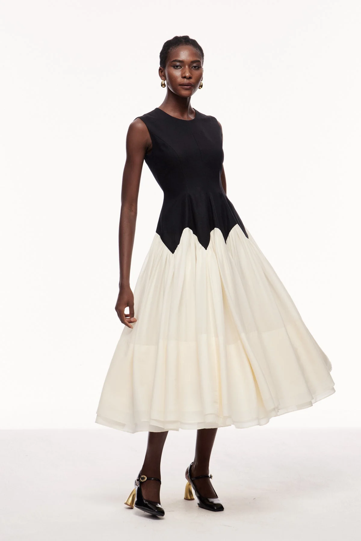 Elevate your style with the Chic Black Ruffle Sleeveless Midi Dress . Experience a blend of sophistication and comfort with delicate ruffle accents, a flattering sleeveless design, and a versatile silhouette that transitions seamlessly from day to night. This wardrobe essential offers a polished, refined look with feminine details, perfect for any occasion. Crafted for non-stretch comfort, this dress is machine washable for easy care. Please note: Color variations may occur due to lighting. Achieve a timeless elegance with this chic staple. Stretch Factor: Non Stretch.