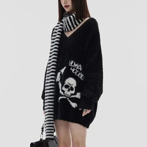 Elevate your style with our Limited Edition Black Skull Print Sweater for women. This unique piece is a definite head-turner, crafted from a premium blend of cotton and polyester for high-quality comfort. Perfect for any occasion, exude charm and elegance in this chic sweater. Check out the size chart for your perfect fit. At In The End Cult, your satisfaction is our priority, contact us anytime for a delightful shopping experience!