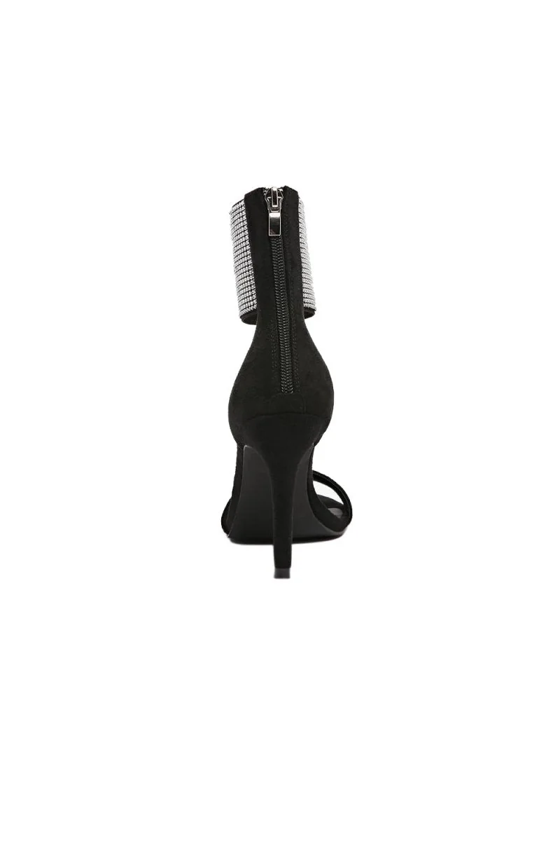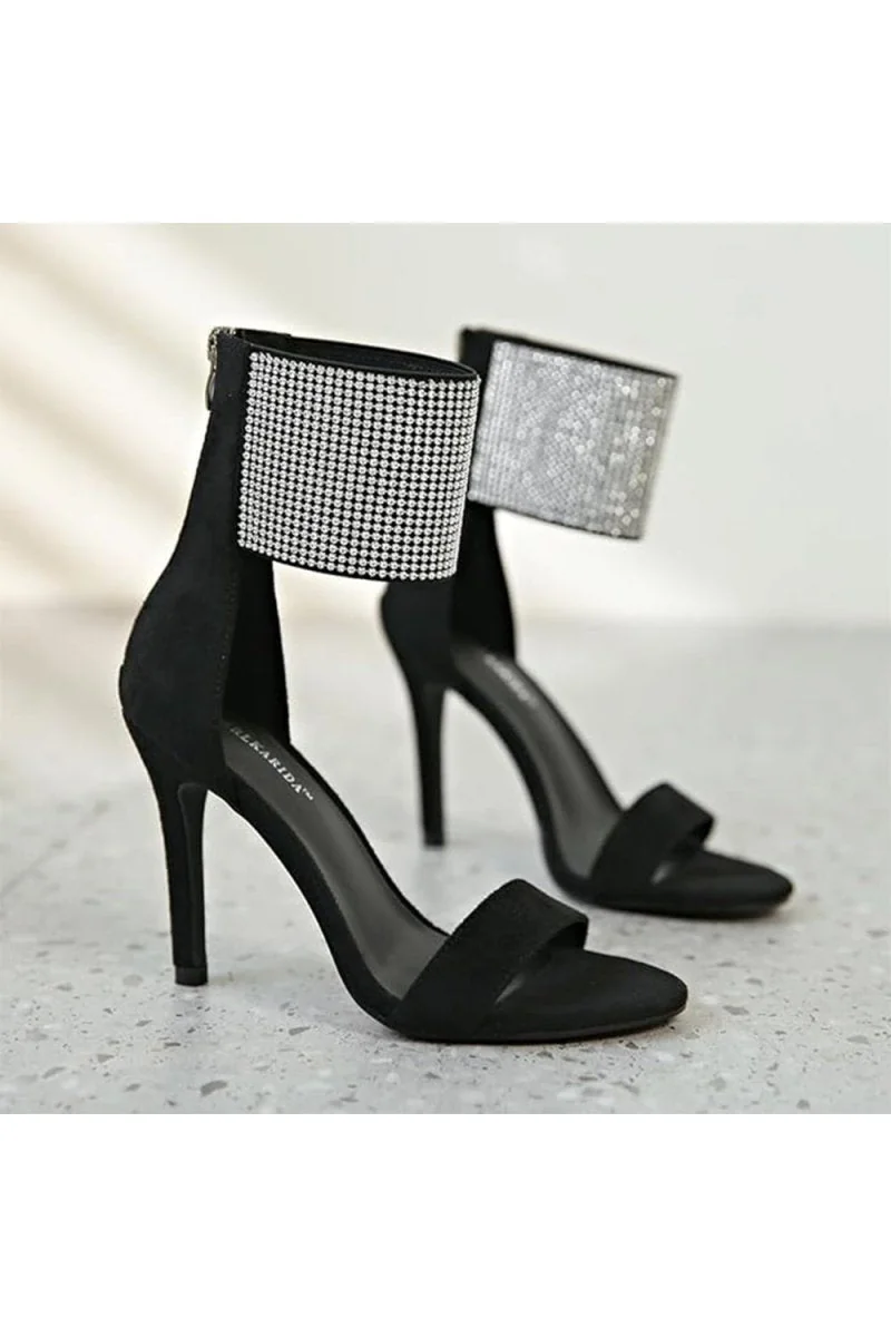Make a stylish statement with these Chic Black Wide Ankle Cuff Stiletto Heels, featuring a fashionable open toe design, a sleek 10 cm heel, and a convenient back zipper closure. Crafted with glossy patent leather and a comfortable rubber lining for a perfect balance of style and comfort. Ideal for parties and special occasions. Embrace your unique fashion sense with these stunning heels!