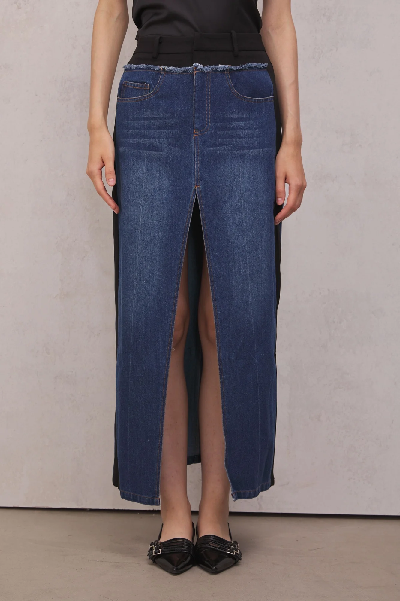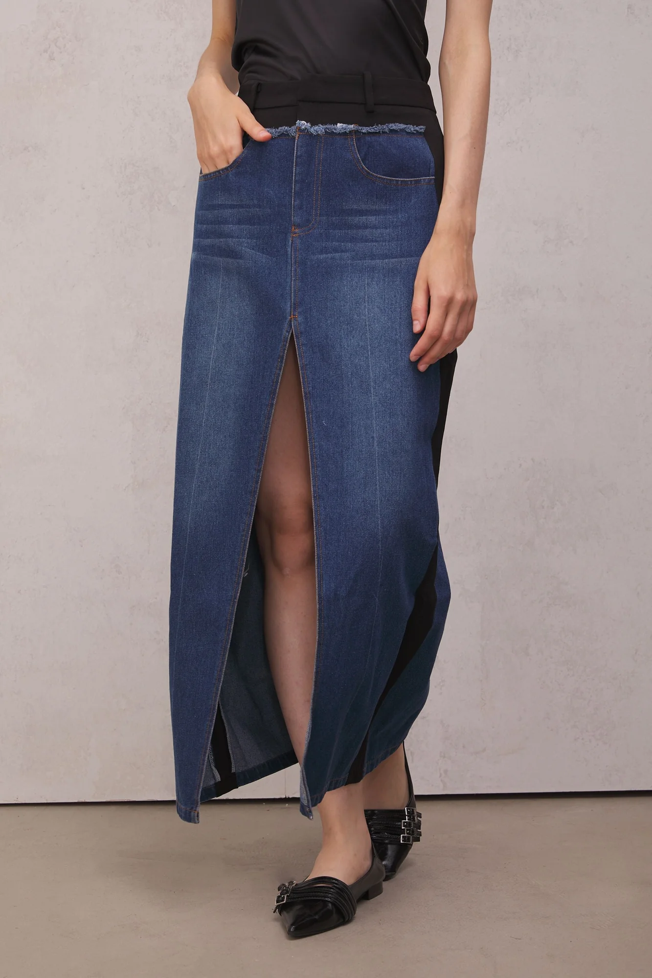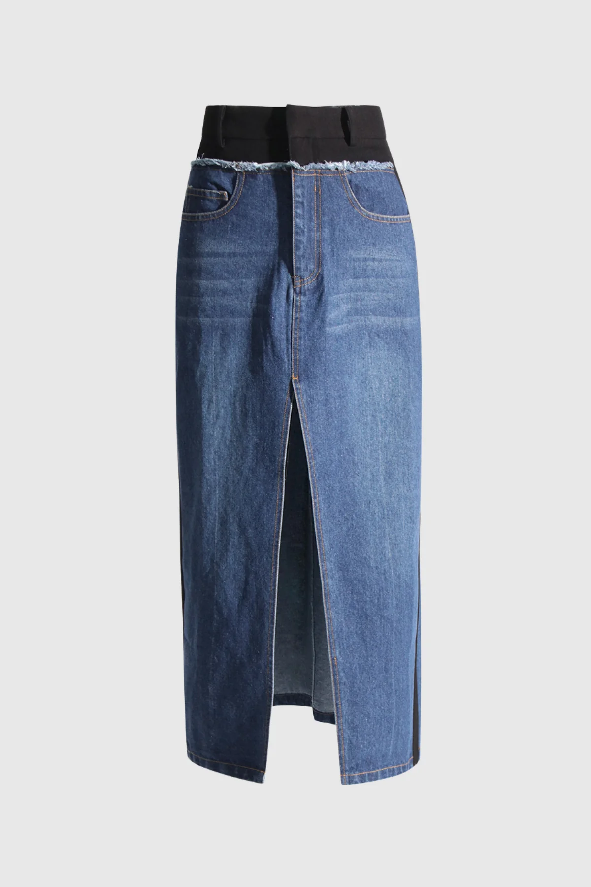 Indulge in the elegance and versatility of this chic blue patchwork maxi skirt . Made from high-quality 100% polyester material, this skirt features a dramatic high slit design. Whether youre going for a casual outing or a special event, this flowy maxi skirt is a must-have for every fashion-forward individual. Care instructions: Gentle machine wash recommended. Please note that color may vary due to lighting. The product images displayed (model-free) provide the closest representation of the actual product color.