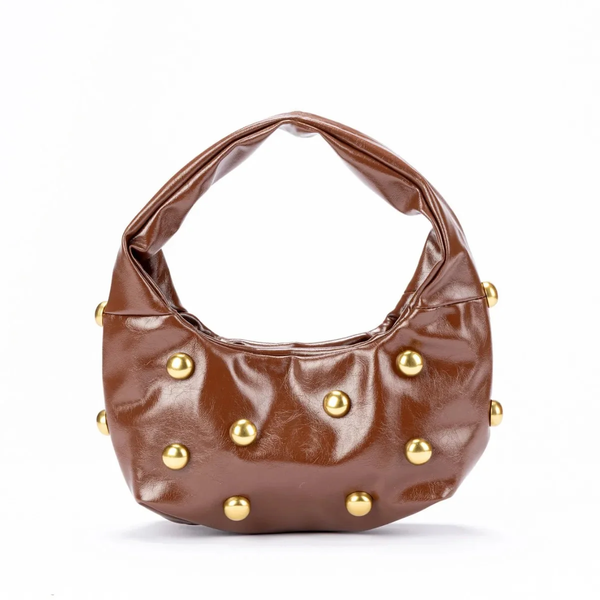 Tags: Chic Design, cloud shoulder bag, metallic touches, rivet details, spacious, stylish