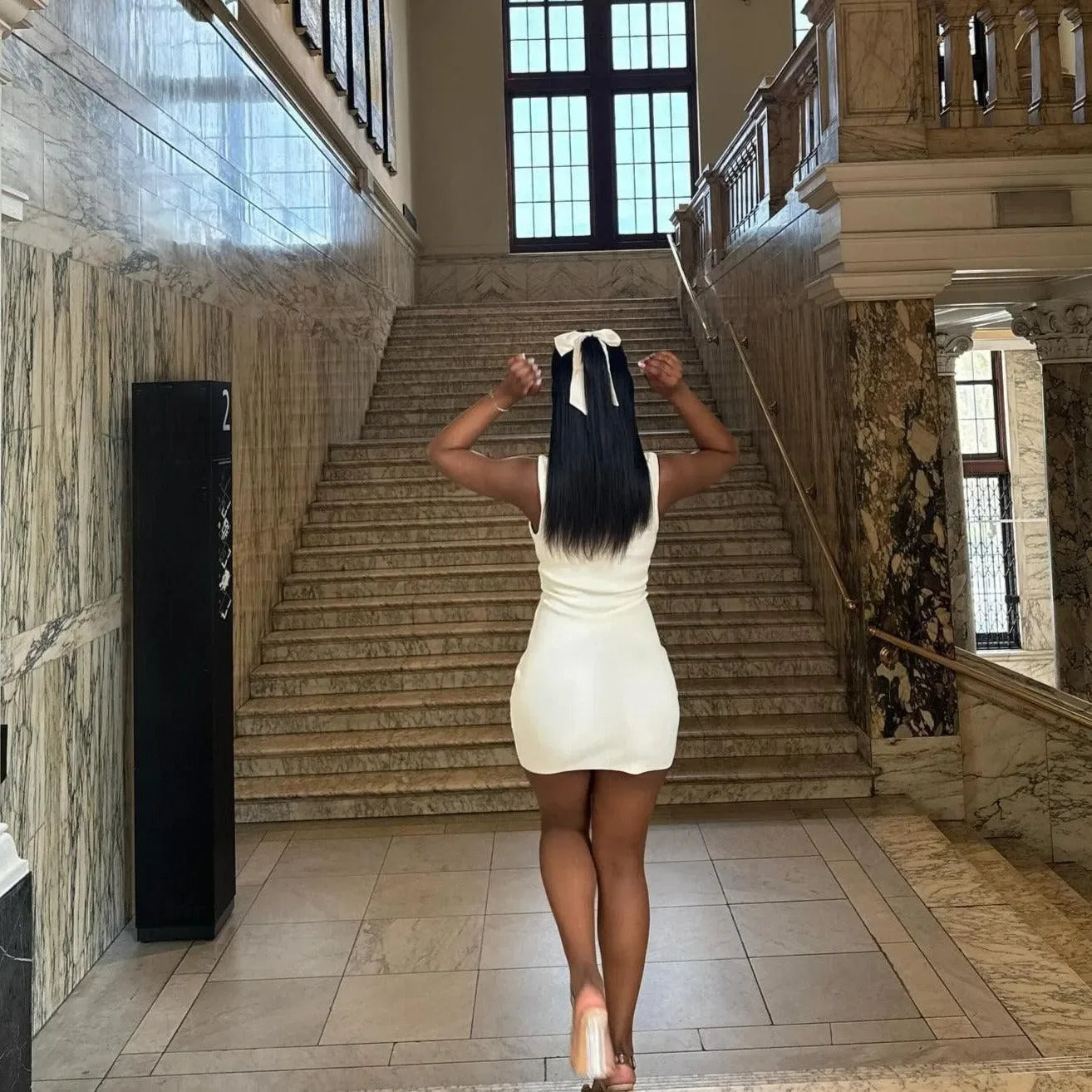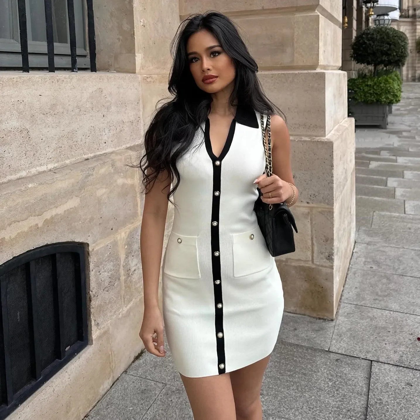 Experience sophistication and comfort with our chic collared knit mini dress in white. Crafted from a soft and breathable knit fabric, this dress features a striking contrast design and a tailored fit that accentuates your silhouette. Whether its a casual brunch or an evening event, this versatile dress ensures you stand out with elegance. Elevate your fashion game today! This mini dress is a perfect blend of style and comfort. Explore fashion inspiration on our Instagram @mermaid_way. FABRIC COMPOSITION: 52% Viscose, 48% Nylon. Enjoy complimentary size exchanges if needed.