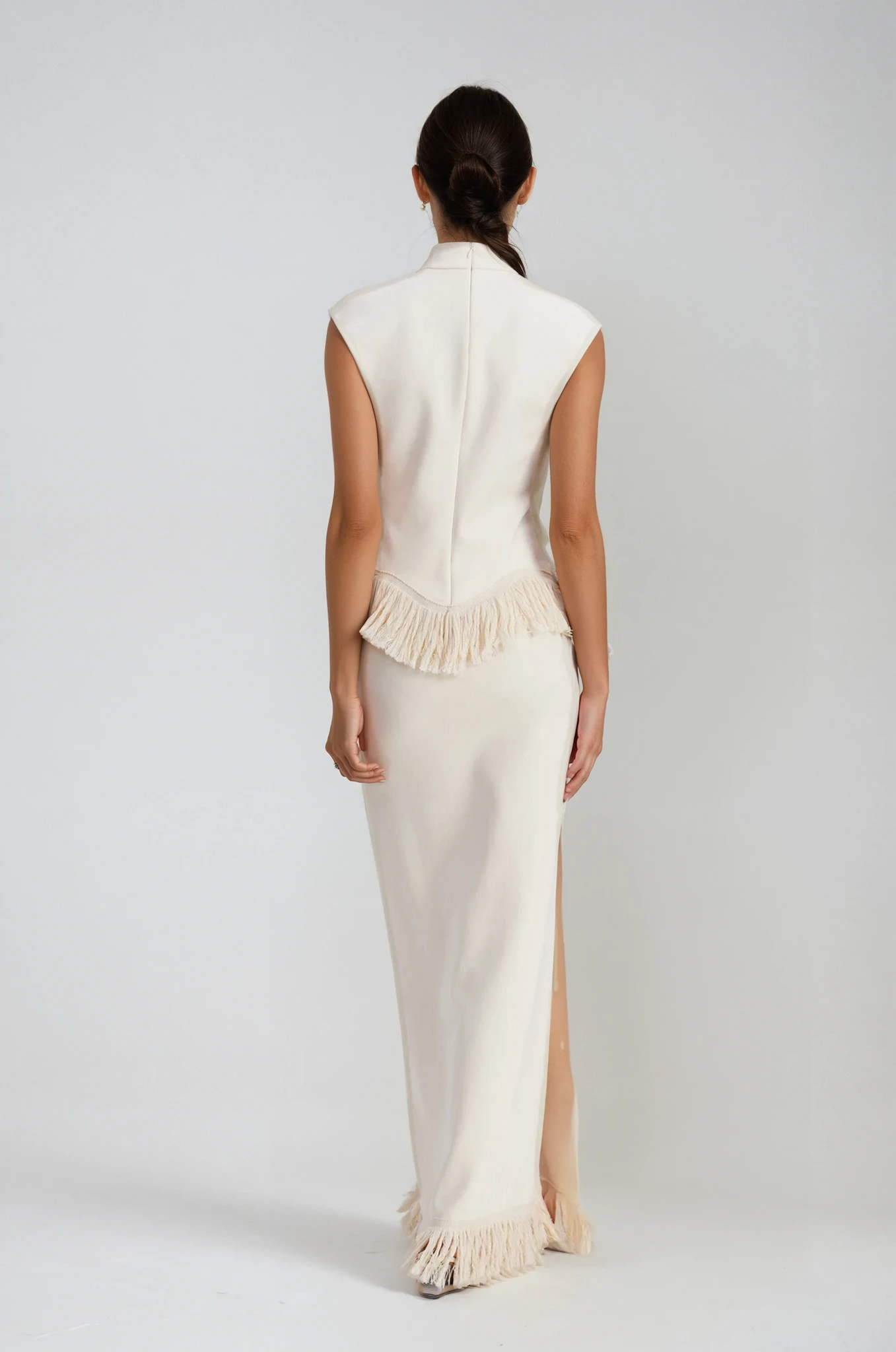 Elevate your wardrobe with the Chic Fringe Knit Skirt Set in apricot color, expertly crafted for a refined yet contemporary look. This set features a finely knit fabric that offers both comfort and structure, while the distinctive fringe detailing adds dynamic texture and movement. Perfect for sophisticated layering or standalone styling, it balances elegance with modern edge, making it an essential addition for those who appreciate meticulous design and versatile fashion. The slight stretch ensures a comfortable fit. Clean with a gentle machine wash. Please note, the color may vary due to lighting in images.
