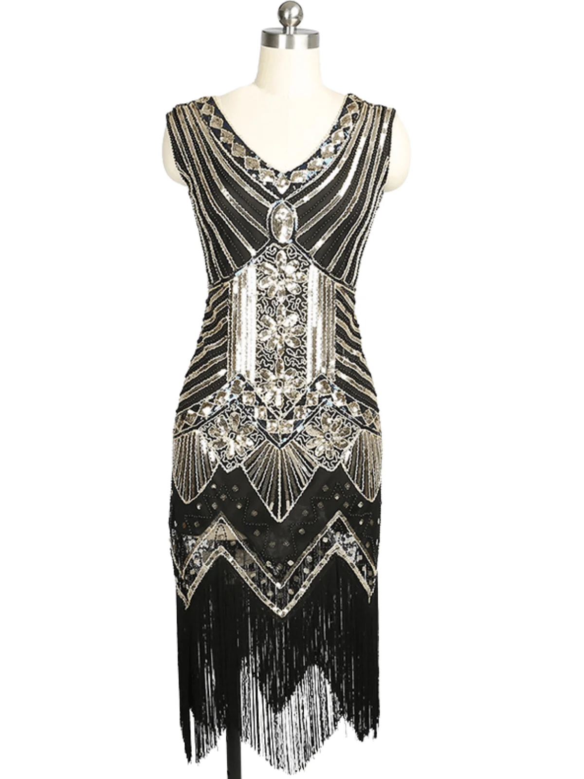 Elevate your style with our luxurious Chic Fringe V-Neck Sequin Dress. Crafted with intricate sequin detailing and a chic fringe V-neck design, this dress exudes sophistication. The stunning black color ensures versatility, while the 100% Polyester material offers comfort and durability. Perfect for cocktail events, parties, or special occasions. Make a statement and shine with this beautiful midi dress.