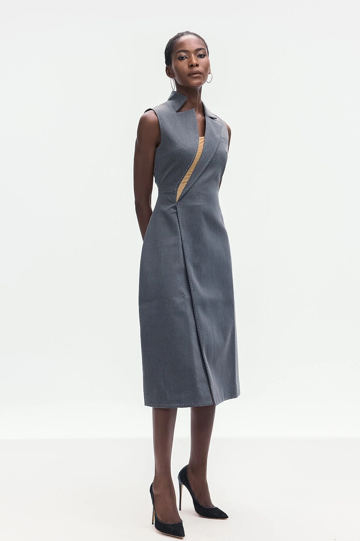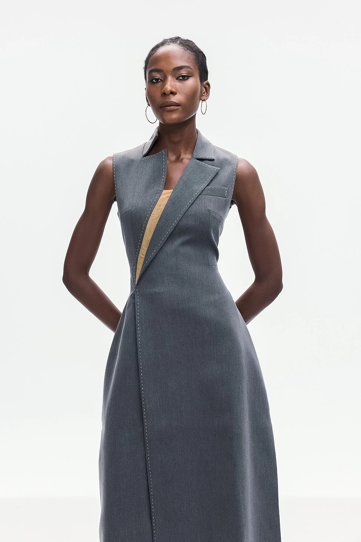 Elevate your style with the chic Grey Asymmetric Split Sleeveless Maxi Dress. This trendy dress features a unique split design and sleeveless cut for ultimate comfort and sophistication. Made from a soft blend of 50% Polyester and 50% Cotton, this non-stretch dress is perfect for all-day wear. Whether its a casual outing or a night out, this dress is a versatile addition to your wardrobe. Embrace elegance with this innovative piece .