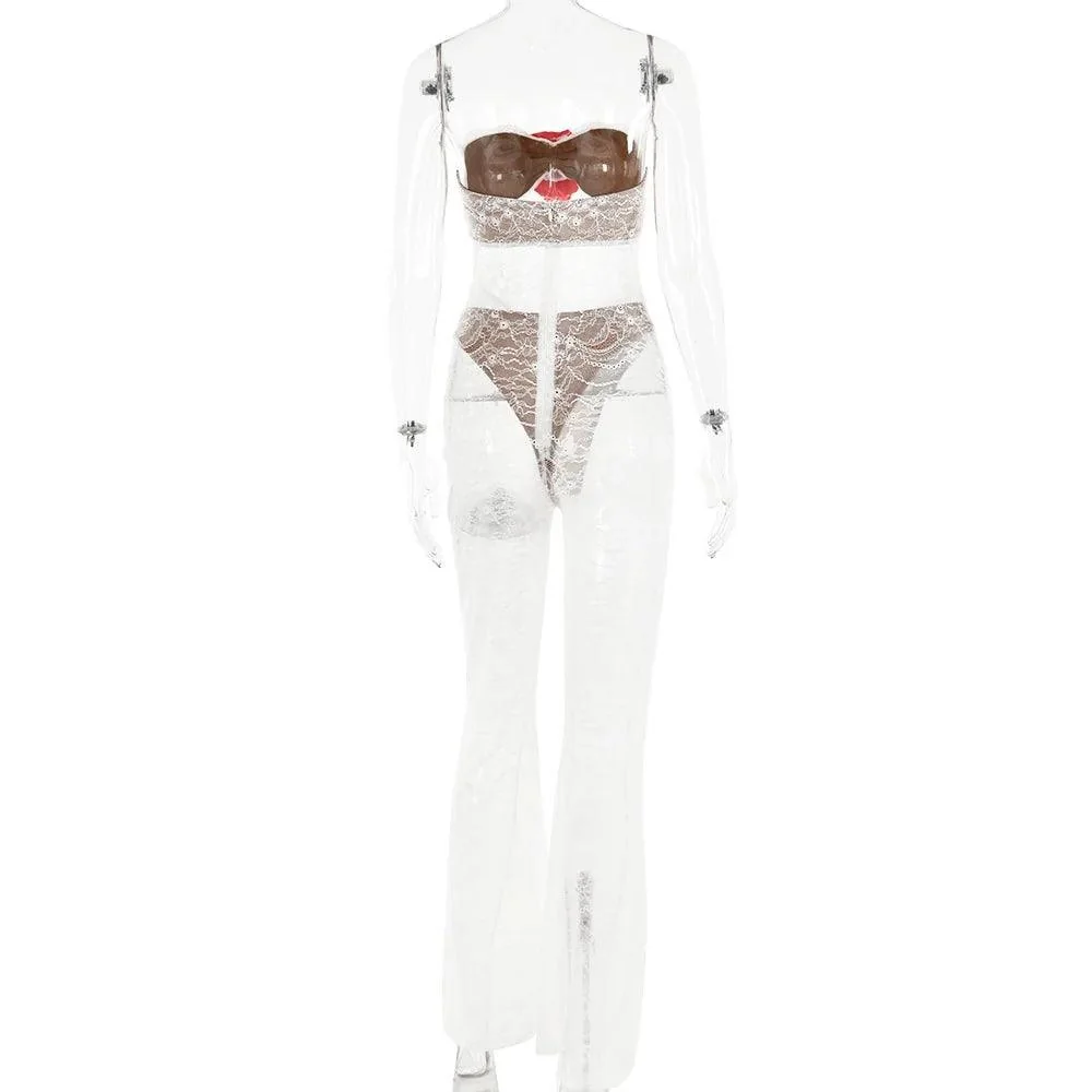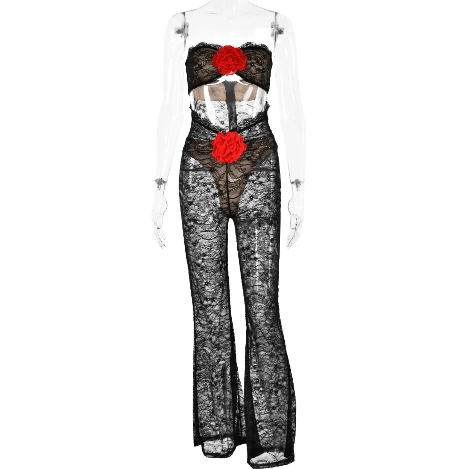 Elevate your style with our chic Lace Cut-Out Jumpsuit designed with intricate lace detailing and a flattering cut-out design. Perfect for any special occasion, this jumpsuit offers glamour and sophistication. The fitted waist and tailored legs ensure a sleek and elegant look that will make you shine at any event. Explore more outfit ideas on Instagram @mermaid_way. Enjoy free size exchanges if needed.