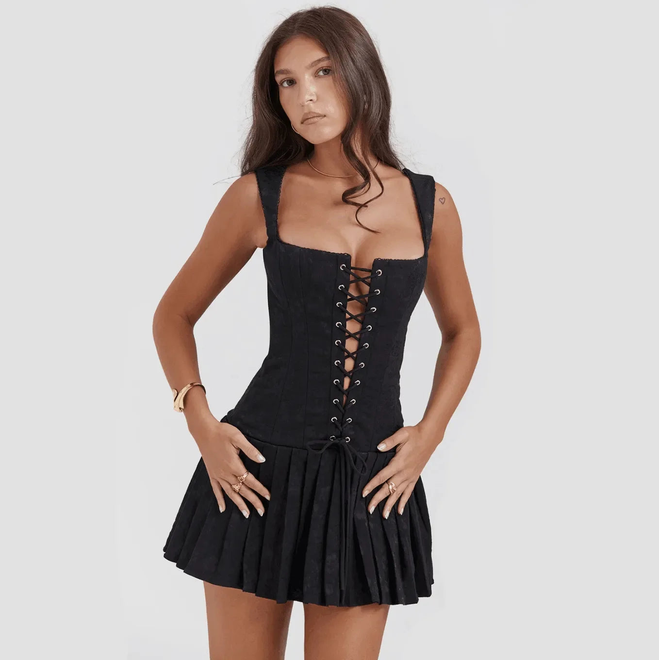 Elevate your style with our Chic Lace Detail Sweetheart Corset Mini Dress. Crafted with jacquard, cotton, and rayon, this elegant dress flatters with its corset design, accentuating your curves for a feminine silhouette. Ideal for special occasions, form-fitting yet comfortable, this versatile dress ensures confidence at galas or nights out. Showcase effortless elegance at every event with this wardrobe staple . Enjoy free size exchanges if needed.