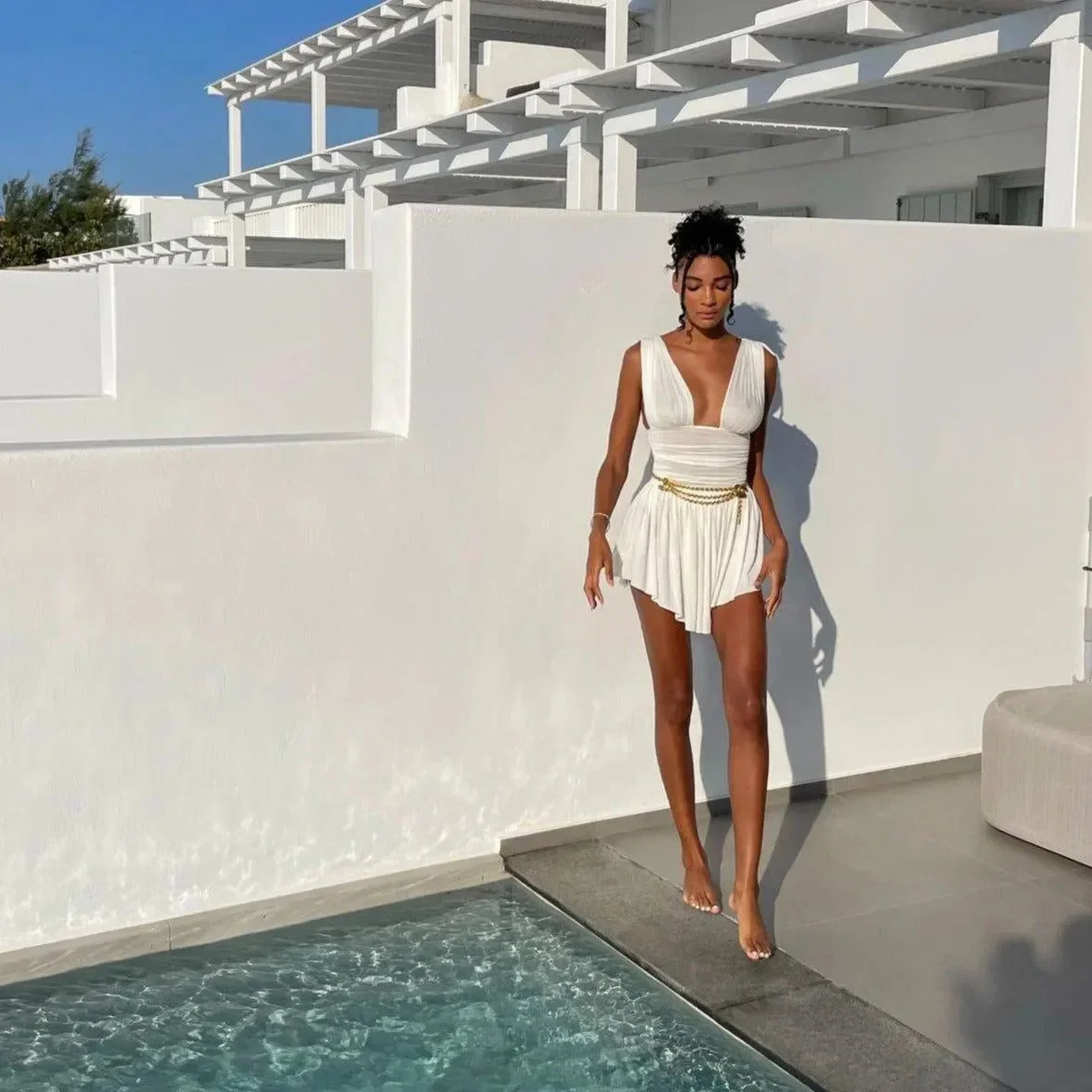 Elevate your style with this chic Ruched Shoulder Knot Mini Dress crafted from a blend of Chiffon and Spandex. The knotted shoulder straps add a unique touch to the elegant design, while the ruched detailing highlights your figure for a stunning look. Perfect for casual outings and special occasions, this mini dress pairs beautifully with any accessory. The lightweight fabric ensures maximum comfort, and the sleek silhouette effortlessly accentuates your curves. Whether its brunch or an evening event, this dress is your go-to outfit. Follow us on Instagram @mermaid_way for more style inspirations and receive a free replacement or local tailoring service for the perfect fit if unsatisfied.