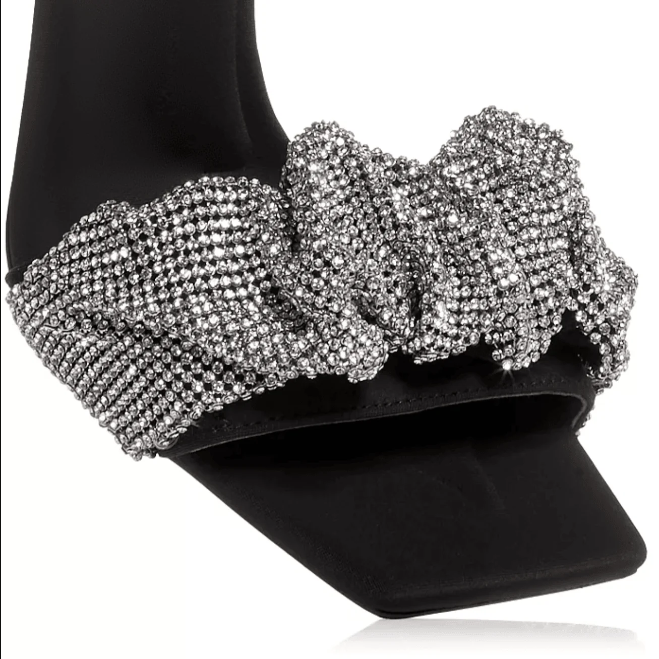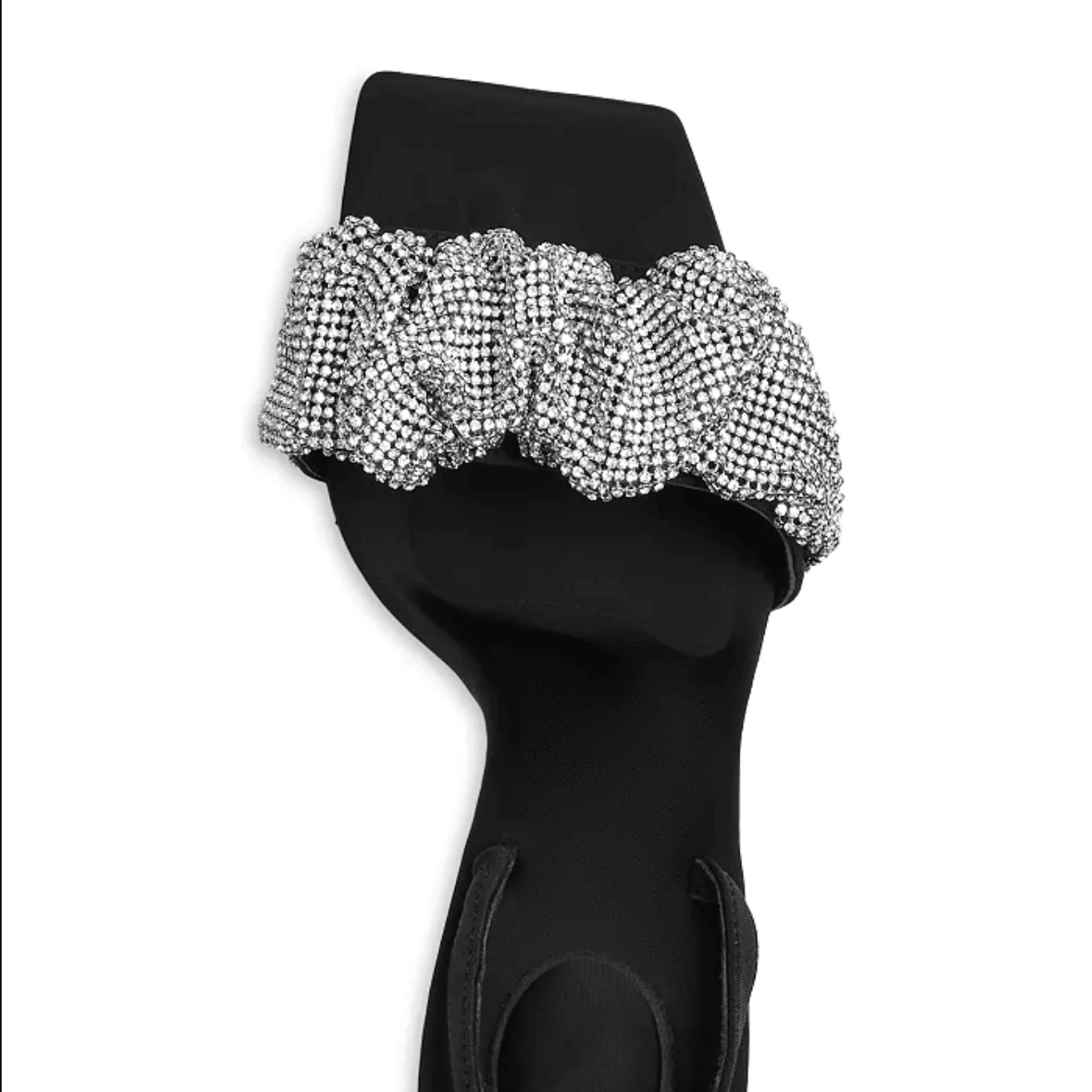 Elevate your style with our chic Scrunchie Embellished Sandals in mysterious black. These comfortable sandals feature stylish scrunchie details and a soft, cushioned sole for all-day wear. Versatile and durable, they pair perfectly with summer dresses or casual outfits, adding a touch of flair to your look. Discover a blend of fashion and comfort with these eye-catching sandals .