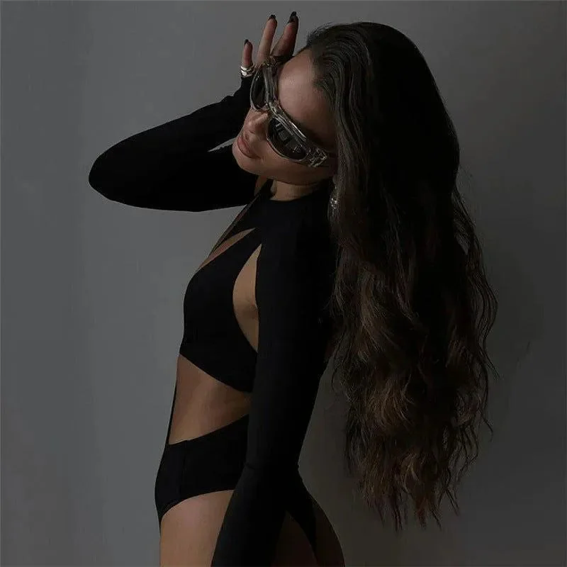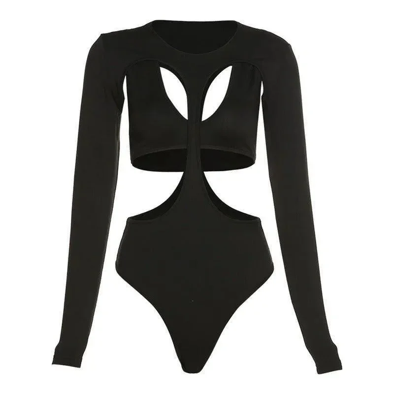 Elevate your style with our chic Star Cut-Out Long Sleeve Bodysuit in black. This versatile piece features stylish cut-outs that add a unique flair to any outfit. The fitted design hugs your curves, offering both comfort and confidence. Made from high-quality polyester and spandex, it’s perfect for a night out or casual day wear. Dont miss out on creating unforgettable looks with this fashion-forward bodysuit . Grab yours now and embrace a new level of style today! If the sizing does not fit, we offer a complimentary exchange for a different size.