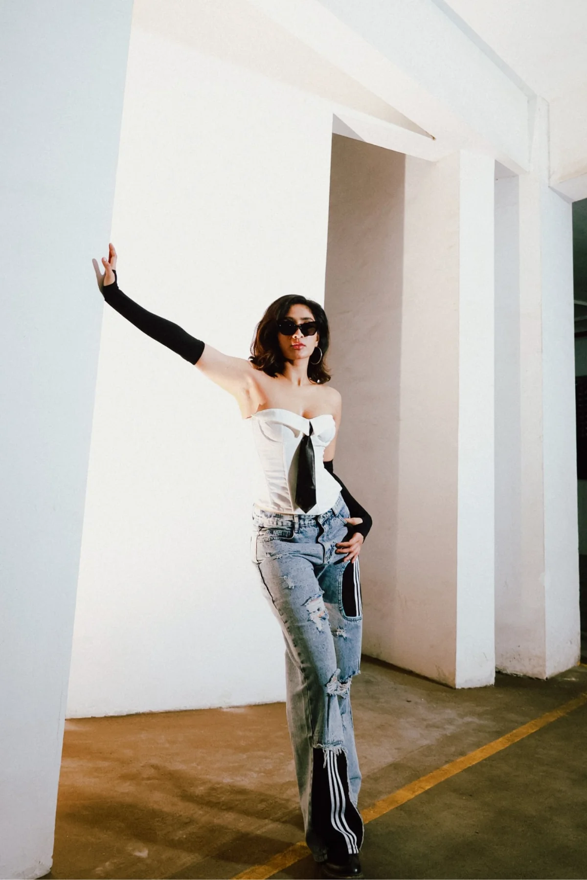 Elevate your style with the chic Strapless Corset Tie Top in neutral hues. This versatile top features a flattering and secure corset tie design, suitable for any occasion. Its strapless style allows for easy dressing up or down, offering a polished statement piece for your wardrobe. Made of a blend of 50% Polyester and 50% Cotton, this top is non-stretch with gentle machine wash care instructions. Please note that color may vary due to lighting conditions in images.