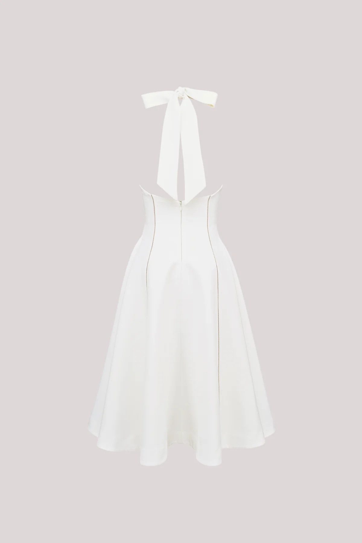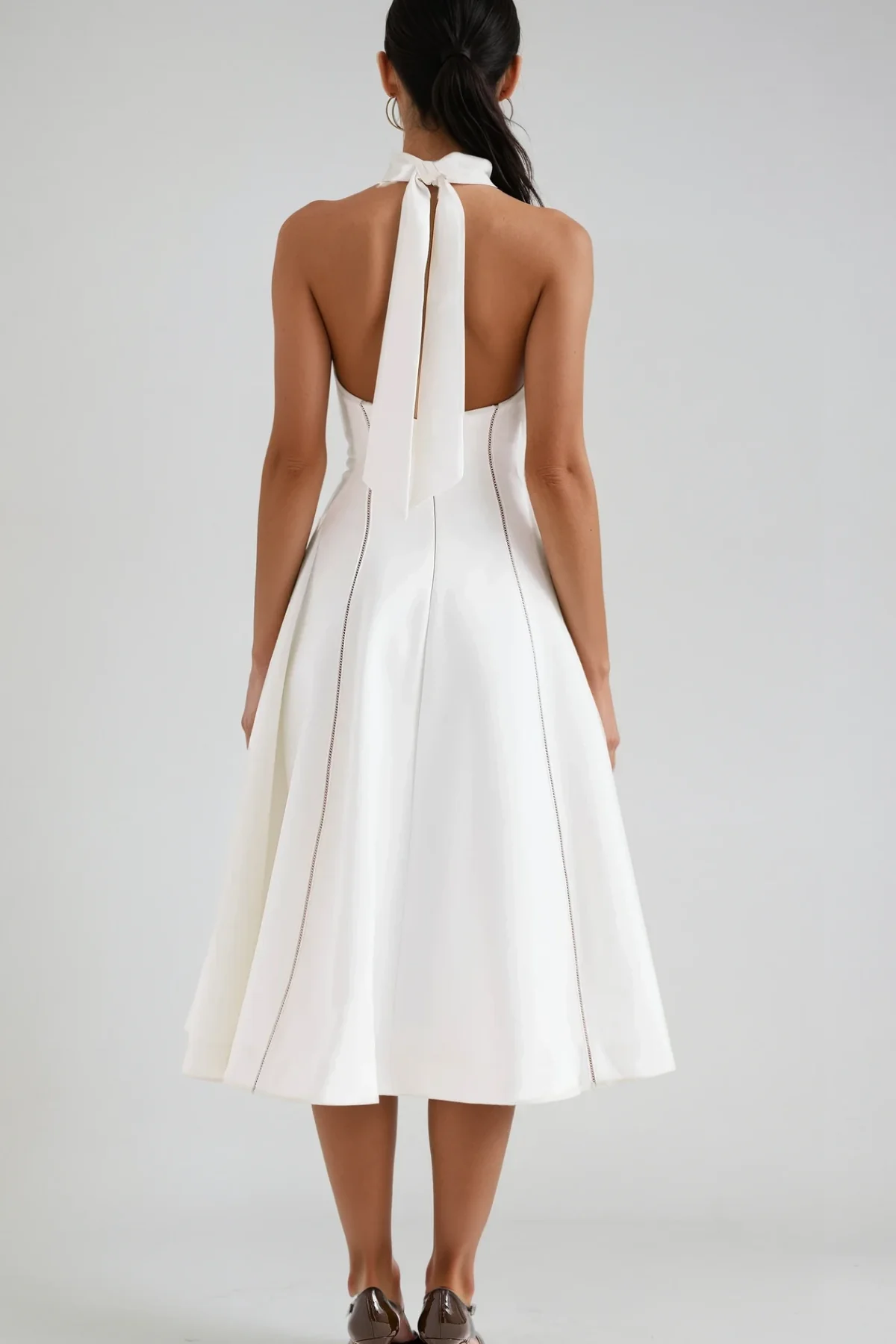 Elevate your style with our Chic Striped Ruffle Halter Midi Dress. This elegant piece features a halter neck for allure, ruffle details for playfulness, and a striped pattern for added charm. Crafted from high-quality 50% Polyester and 50% Cotton blend, this dress ensures comfort and style all day long. Enjoy the non-stretch fabric and gentle machine wash care. Please note, color may vary due to lighting effects. Embrace sophistication with this versatile attire.