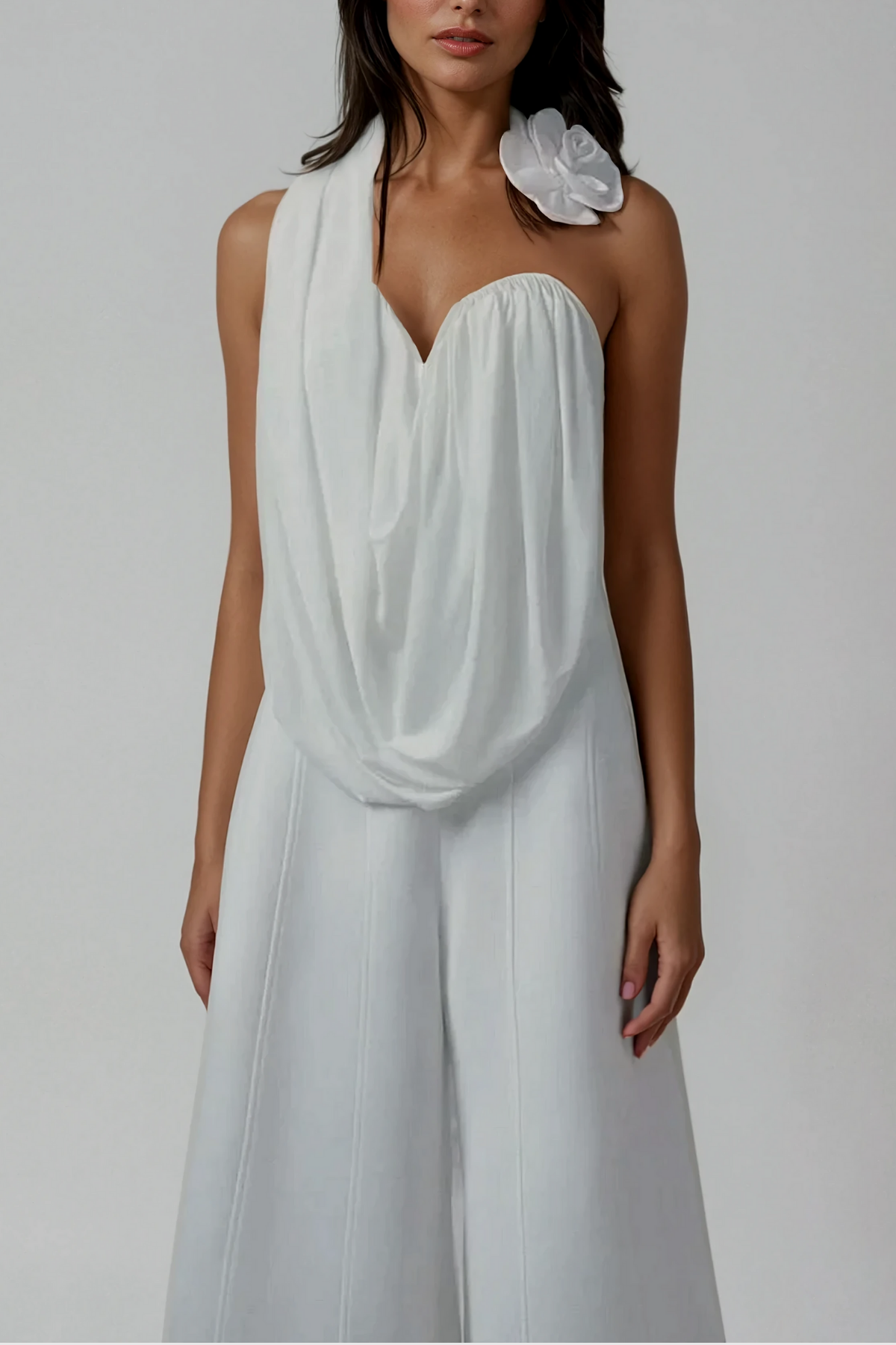 Elevate your wardrobe with the stylish Chic White Flower Asymmetric Ruch Top for women . This versatile top features an eye-catching asymmetric design and elegant ruching, ensuring you stand out at any event. Crafted from high-quality 95% Polyester and 5% Spandex fabric, this non-stretch top combines comfort with elegance. Easy to care for with a gentle machine wash. Note: Color may appear slightly different due to lighting effects in images.