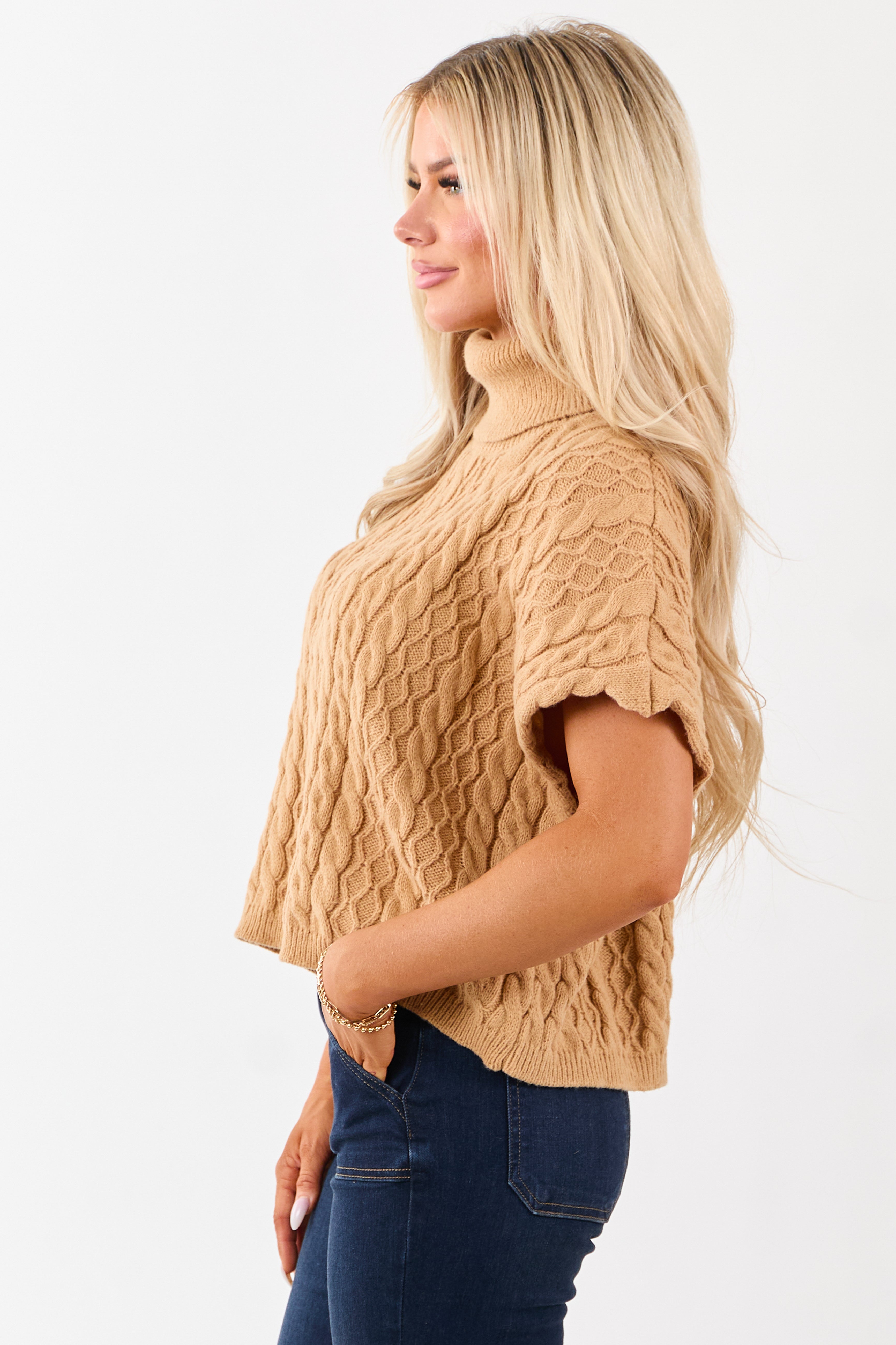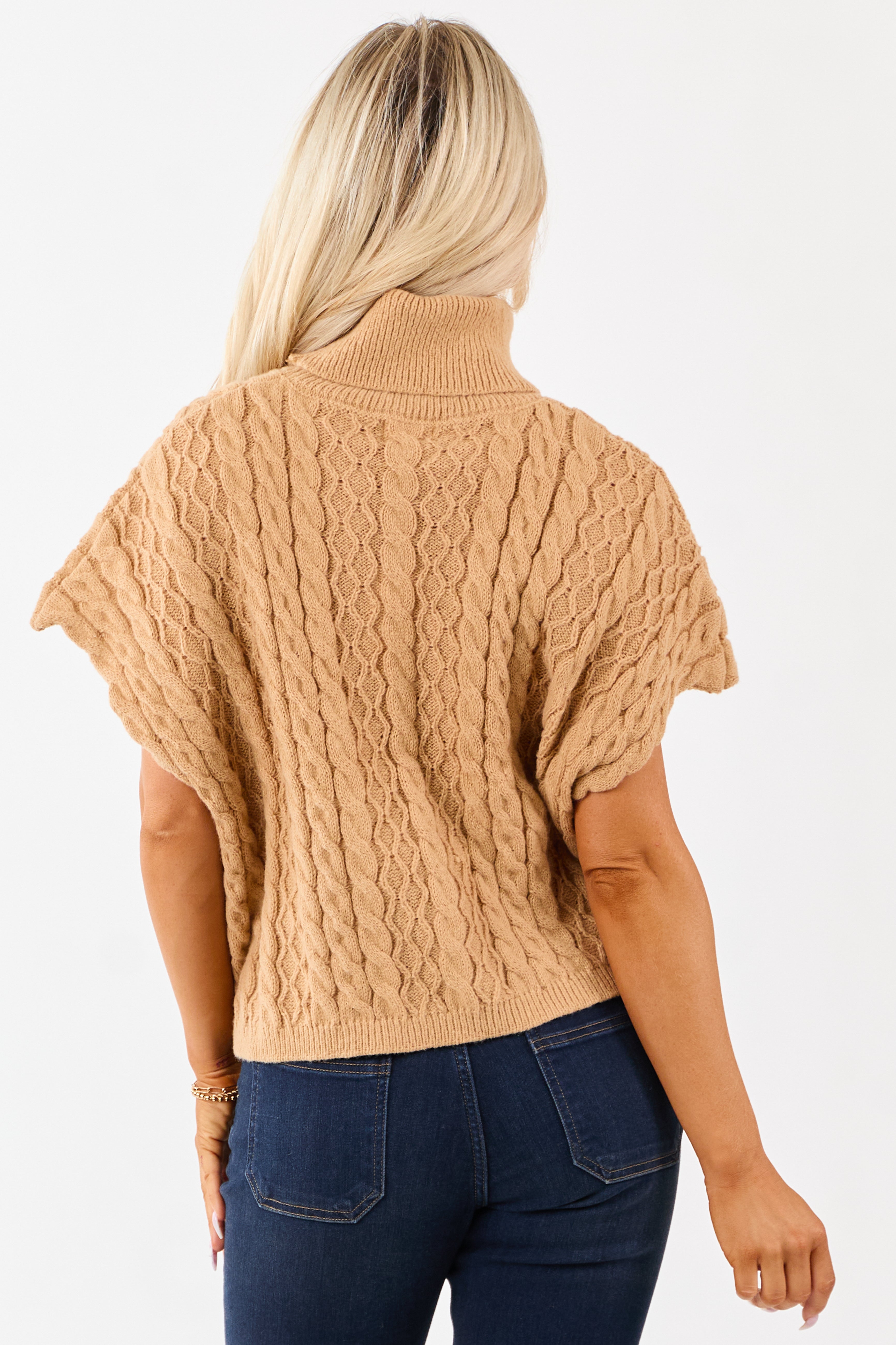 Indulge in cozy warmth with our Chunky Cable Knit Short Sleeve Sweater. Crafted from stretchy cable knit for an oversized fit, this turtleneck sweater features a neutral tone, ideal for versatile styling. The short sleeve design ensures a contemporary twist on a classic favorite. Whether youre at work or out with friends, this sweater offers both comfort and style. Available in sizes S, M, and L. Stay fashionable and snug with this must-have piece!