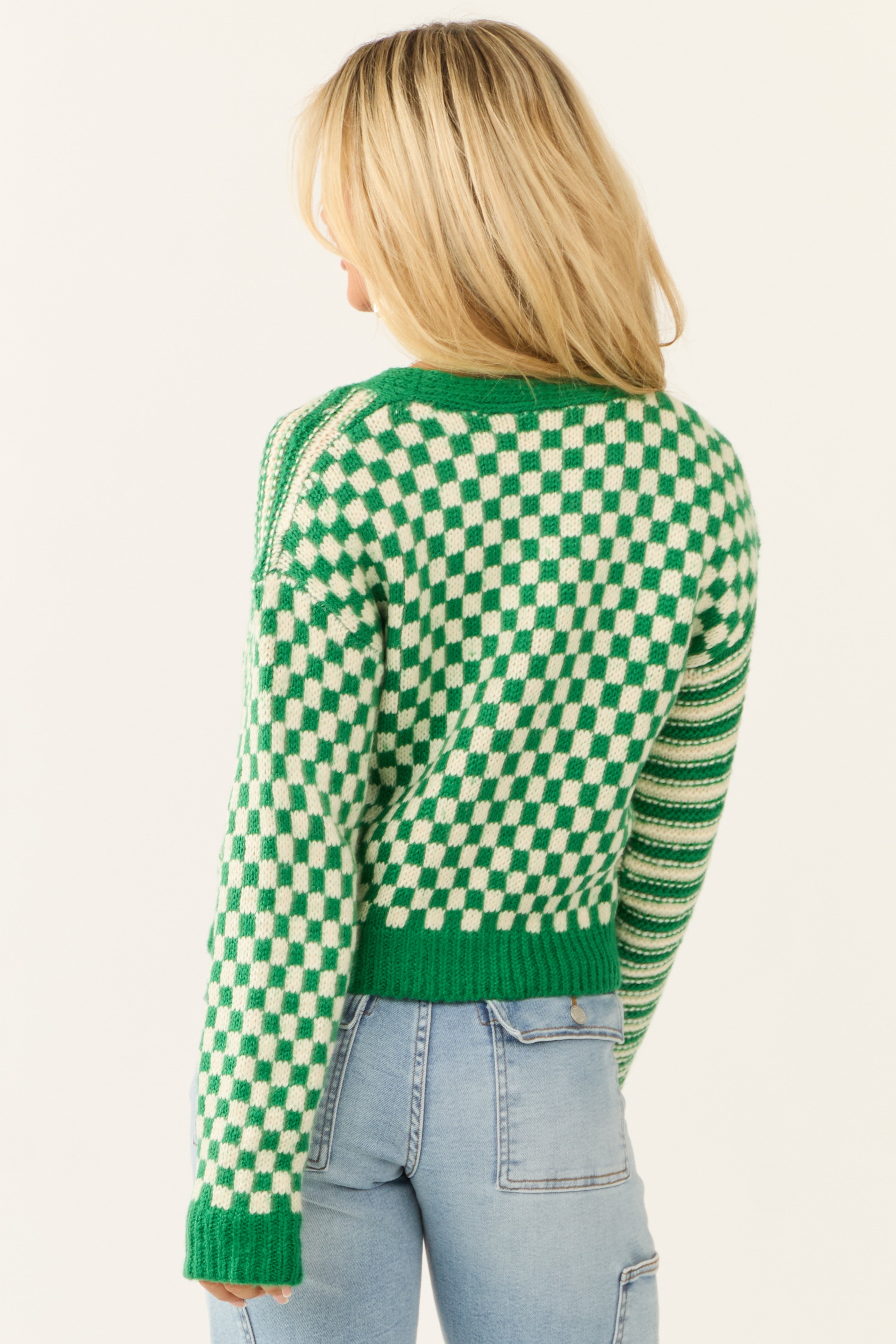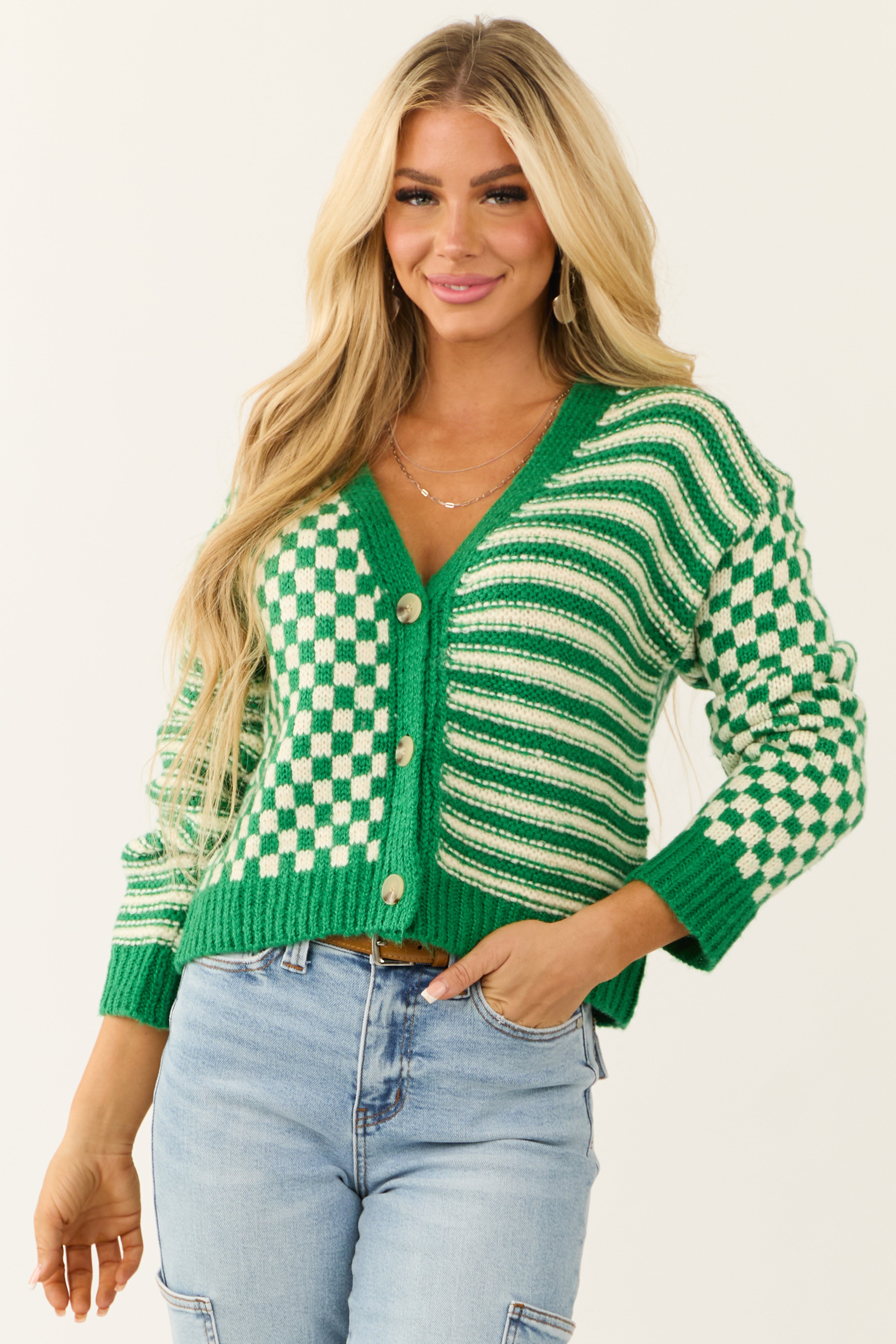 Stay stylish and cozy with our Chunky Knit Green Cardigan featuring a timeless stripe print. This cardigan comes in sizes S, M, and L, with a semi-stretchy fit and ribbed trim for added comfort. Crafted from 50% Acrylic and 50% Nylon, it boasts long sleeves, drop shoulders, and a button-down front. Pair it effortlessly with any outfit for a chic look. Care instructions: Hand wash cold, do not bleach, line dry, iron low, do not dry clean. Model is wearing a size Small; Models profile: Size 1, Height 57, Bust 34, Waist 26.