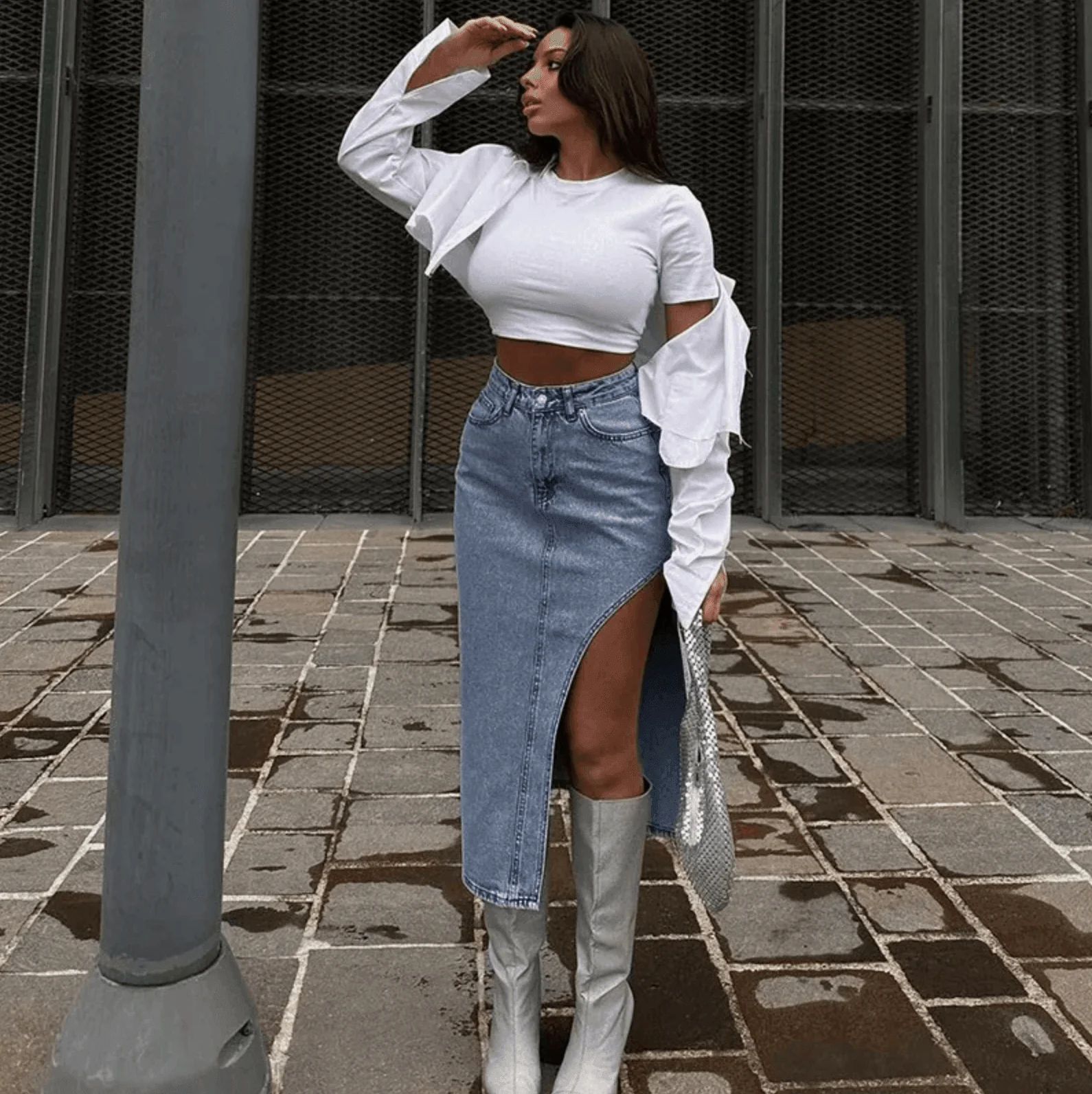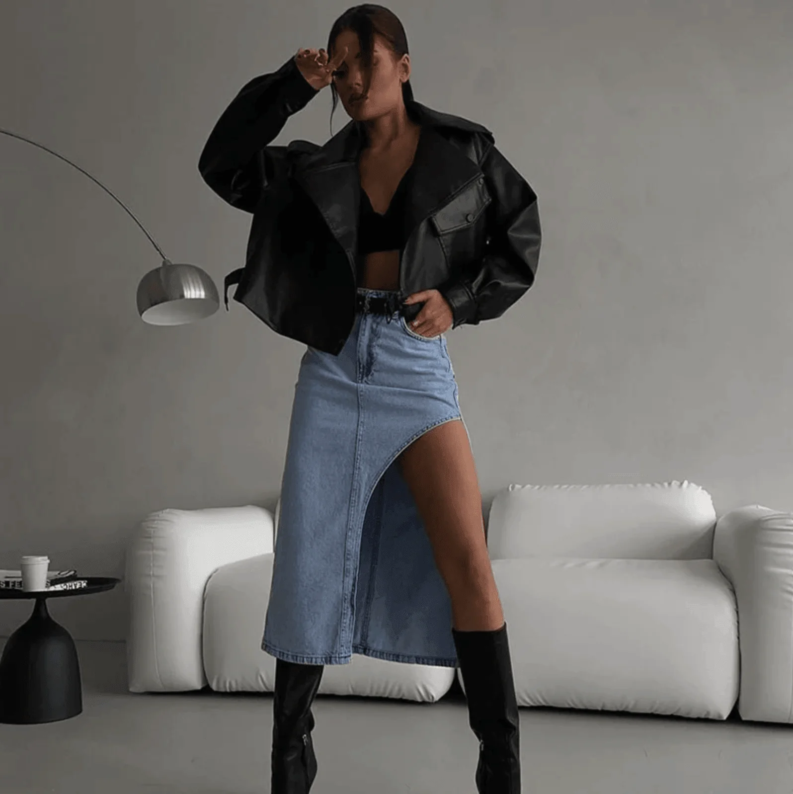Elevate your wardrobe with the Classic Denim High Waist Slit Skirt, a versatile and timeless piece designed for both casual and semi-formal occasions. Crafted from premium denim, this skirt features a flattering high-waisted design to accentuate your waistline and a chic front slit for added sophistication and ease of movement. Pair it with a graphic tee and sneakers for a laid-back look or style it with a blouse and boots for a classy evening outfit. This skirt adapts to seasonal changes effortlessly, ensuring you stay fashionable year-round. Available in classic denim shades, it is a staple that complements various styles and trends. Experience comfort and style with the Classic Denim High Waist Slit Skirt today.