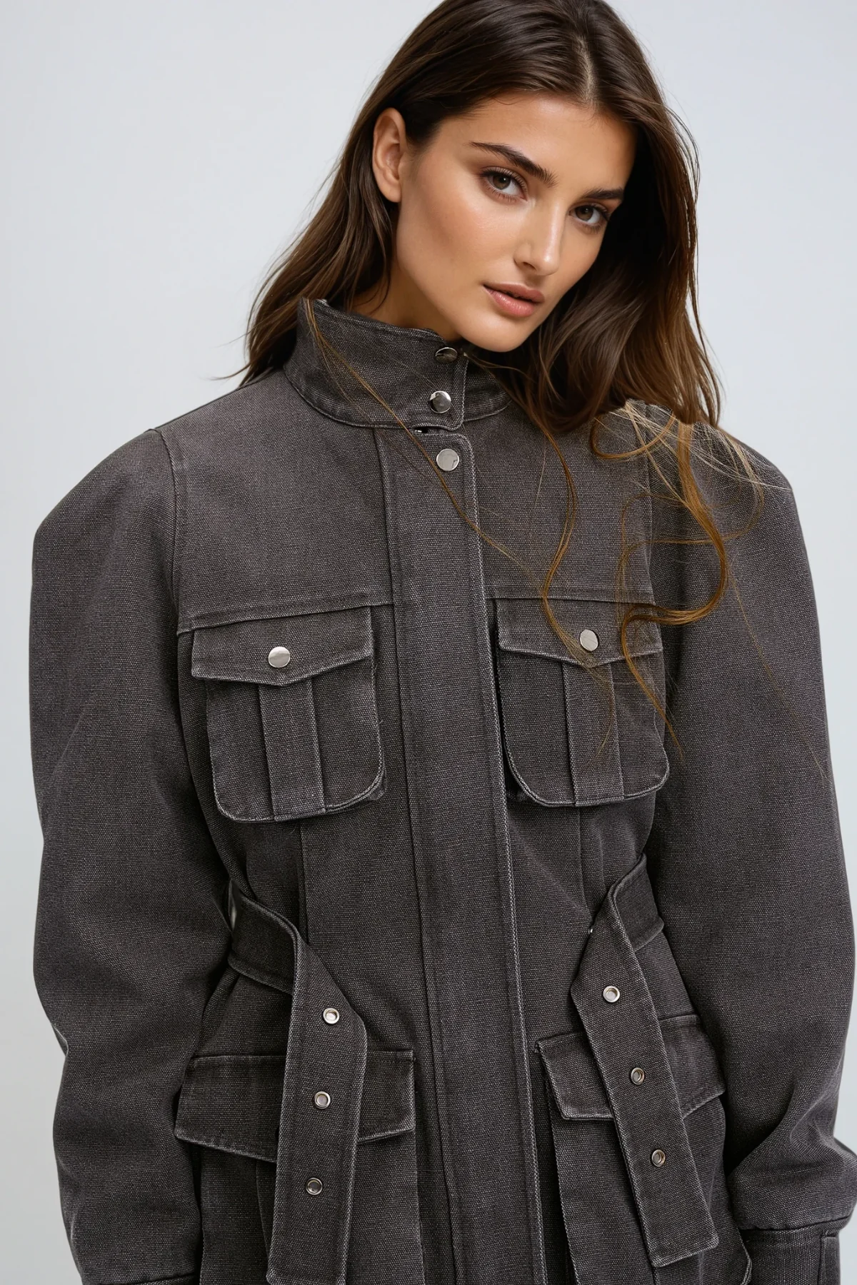 Indulge in comfort and style with this classic denim pocket jacket . Crafted from premium quality denim, this jacket features a timeless design with multiple convenient pockets. Ideal for any casual setting, this versatile piece is a must-have in your wardrobe. The non-stretch fabric requires gentle machine washing. Please note, color may vary due to lighting in images. Elevate your urban edge with this essential jacket today!
