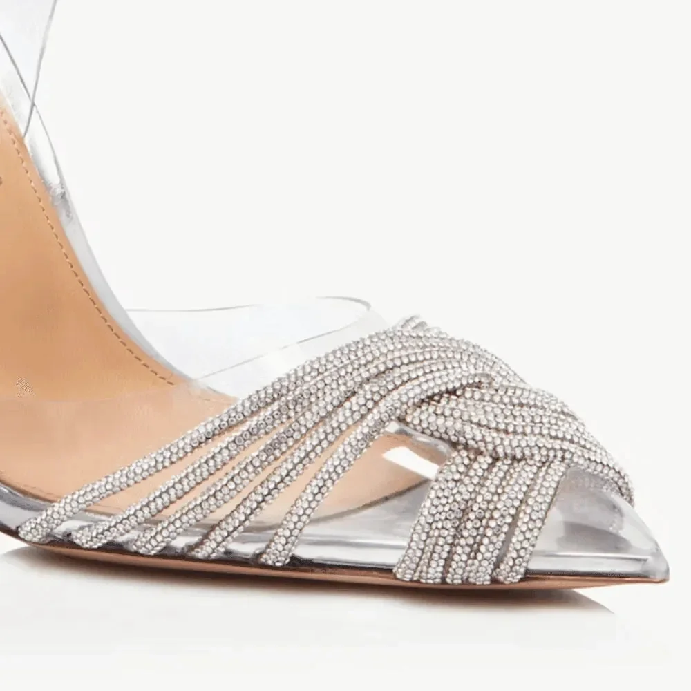 Step into elegance with our Clear Rhinestone Pointed Toe Heels. These stunning heels feature a crystal-clear design adorned with sparkling rhinestones that create a dazzling effect, catching light beautifully. The pointed toe and delicate heel enhance your silhouette for a chic and sophisticated look at special occasions or a night out. Effortlessly elevate any outfit with a glamorous touch, designed for comfort and versatility in your wardrobe. Let your style shine brightly with these heels!