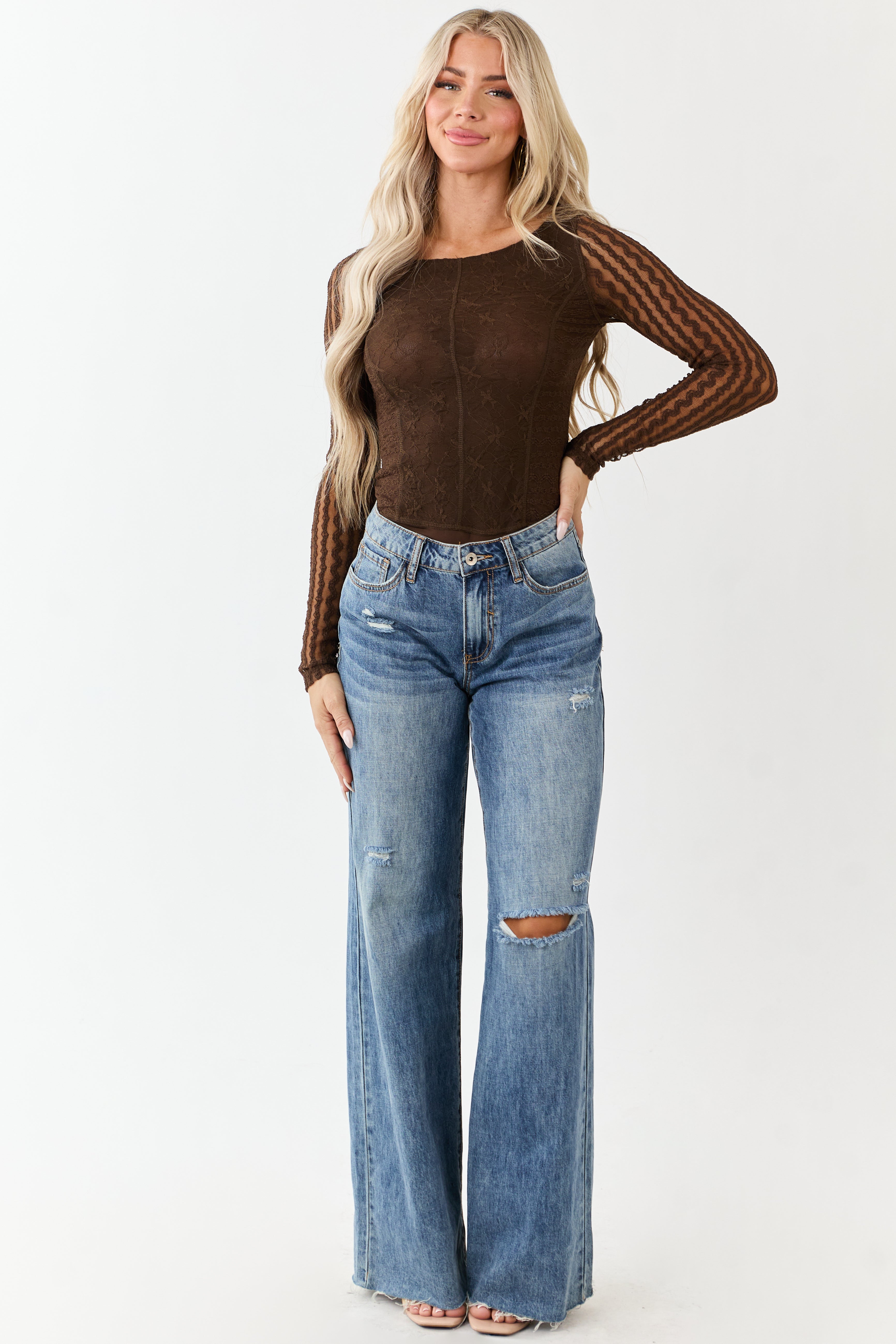 Indulge in elegance with our Cocoa Lace Mesh Long Sleeve Bodysuit crafted from stretchy nylon and spandex blend. This romantic bodysuit boasts floral detailing, sheer sleeves, and a cheeky cut for a show-stopping allure. Featuring double snap button crotch closure and a lined bodice with polyester-spandex blend, this stunning piece redefines sophistication. Available in sizes S, M, and L. Bring out your inner diva with this versatile and chic bodysuit perfect for any occasion.