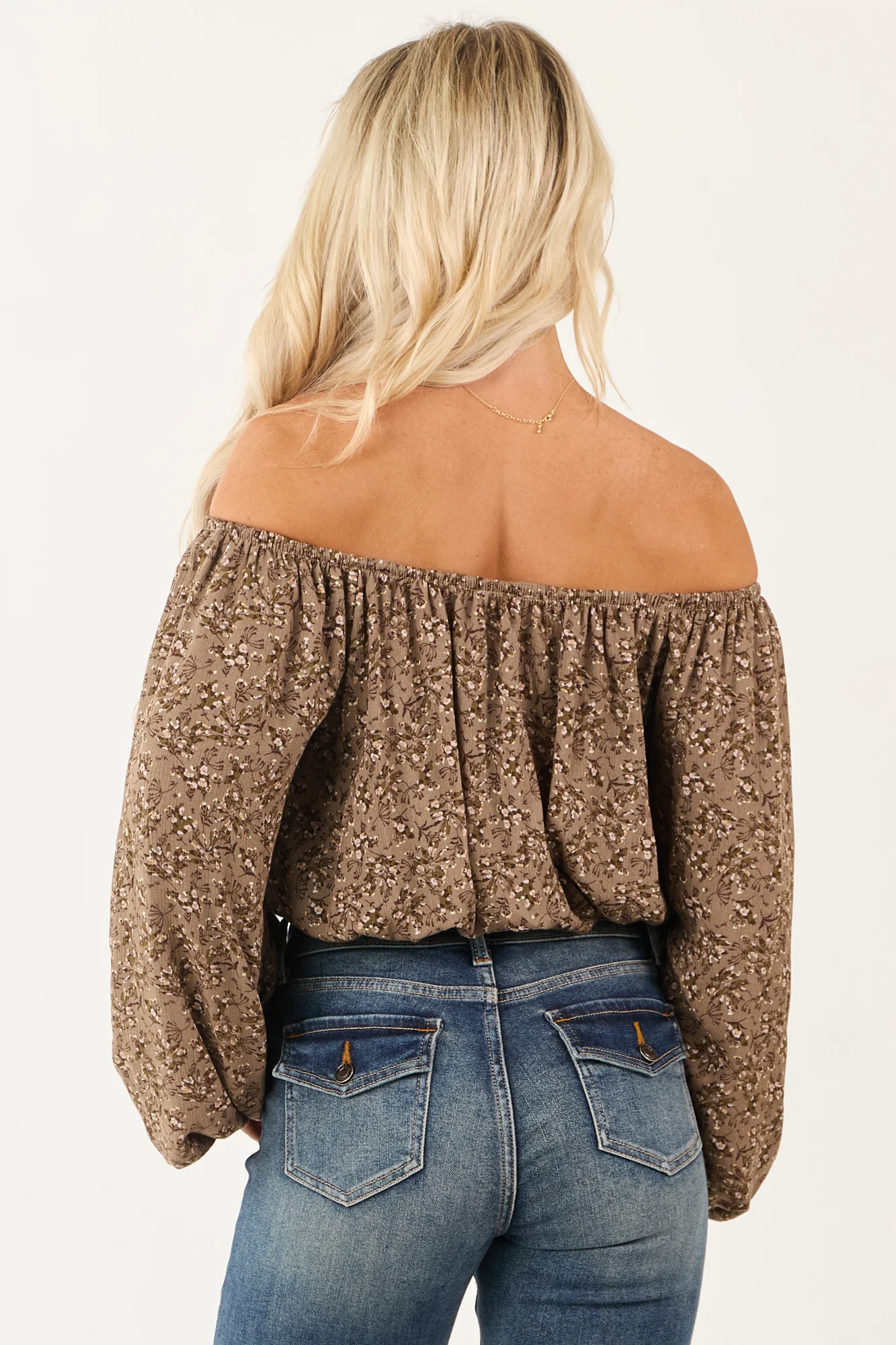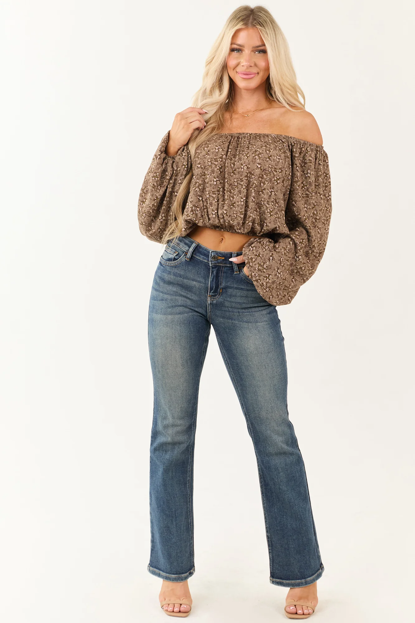 Enhance your wardrobe with this flowy and feminine floral top in Coffee, Olive, Periwinkle, Chocolate, and Peach. Featuring an adjustable neckline and a flirty cropped length with elastic cuffs. Each piece is unique due to the print variation. Made of 100% Rayon. Perfect for a stylish and chic look. Available in sizes S, M, and L.