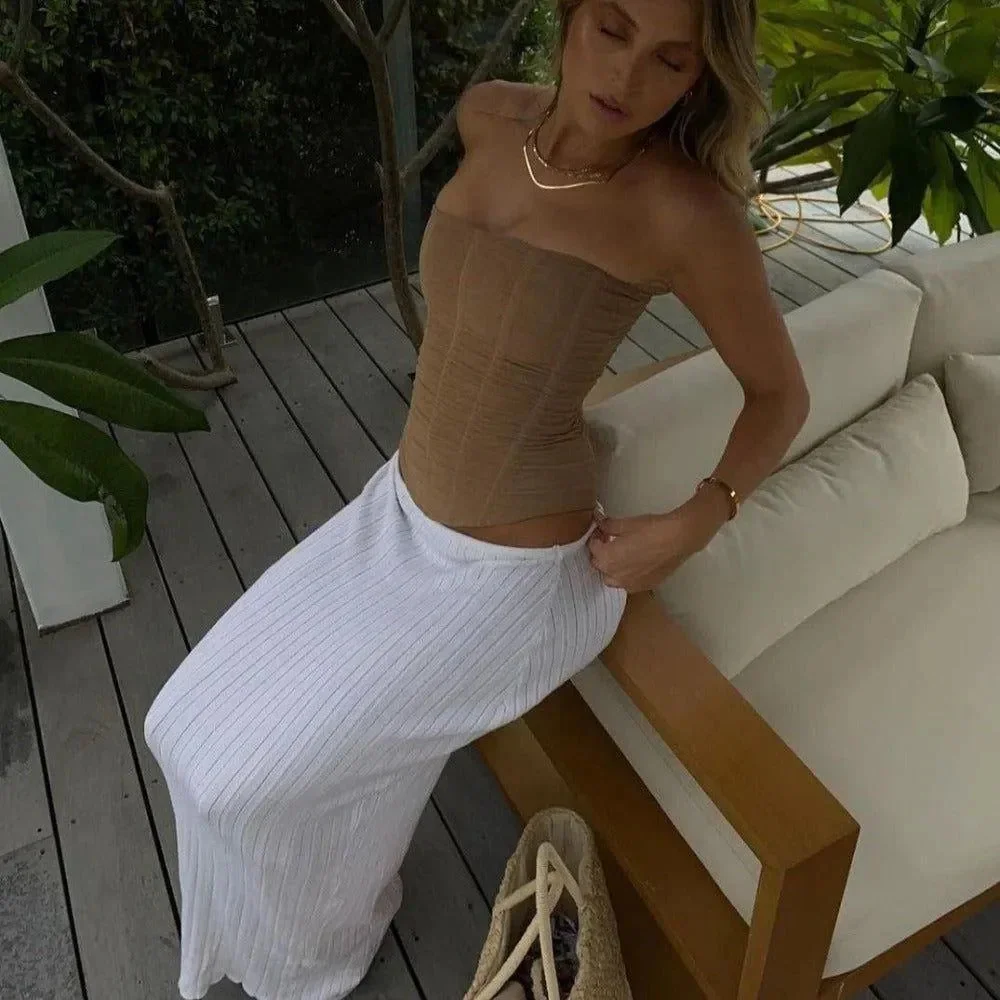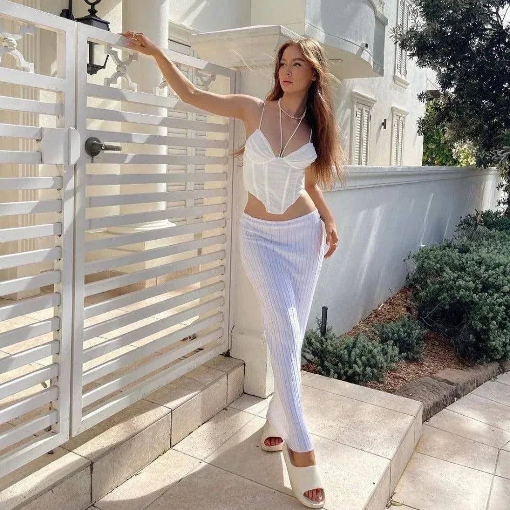 Discover the perfect balance of comfort and style with our Amara Long Knit Cotton Skirt. This high-quality cotton skirt offers a soft, breathable feel suitable for various occasions. The elastic waistband ensures a comfortable fit, while the flowing silhouette and knit texture elevate your elegance. Easy to care for and available in multiple sizes, this skirt is a stylish wardrobe essential. Embrace comfort and elegance with this versatile piece. Free size exchanges available if needed. Explore styling tips on our Instagram @mermaid_way. MATERIAL: Cotton