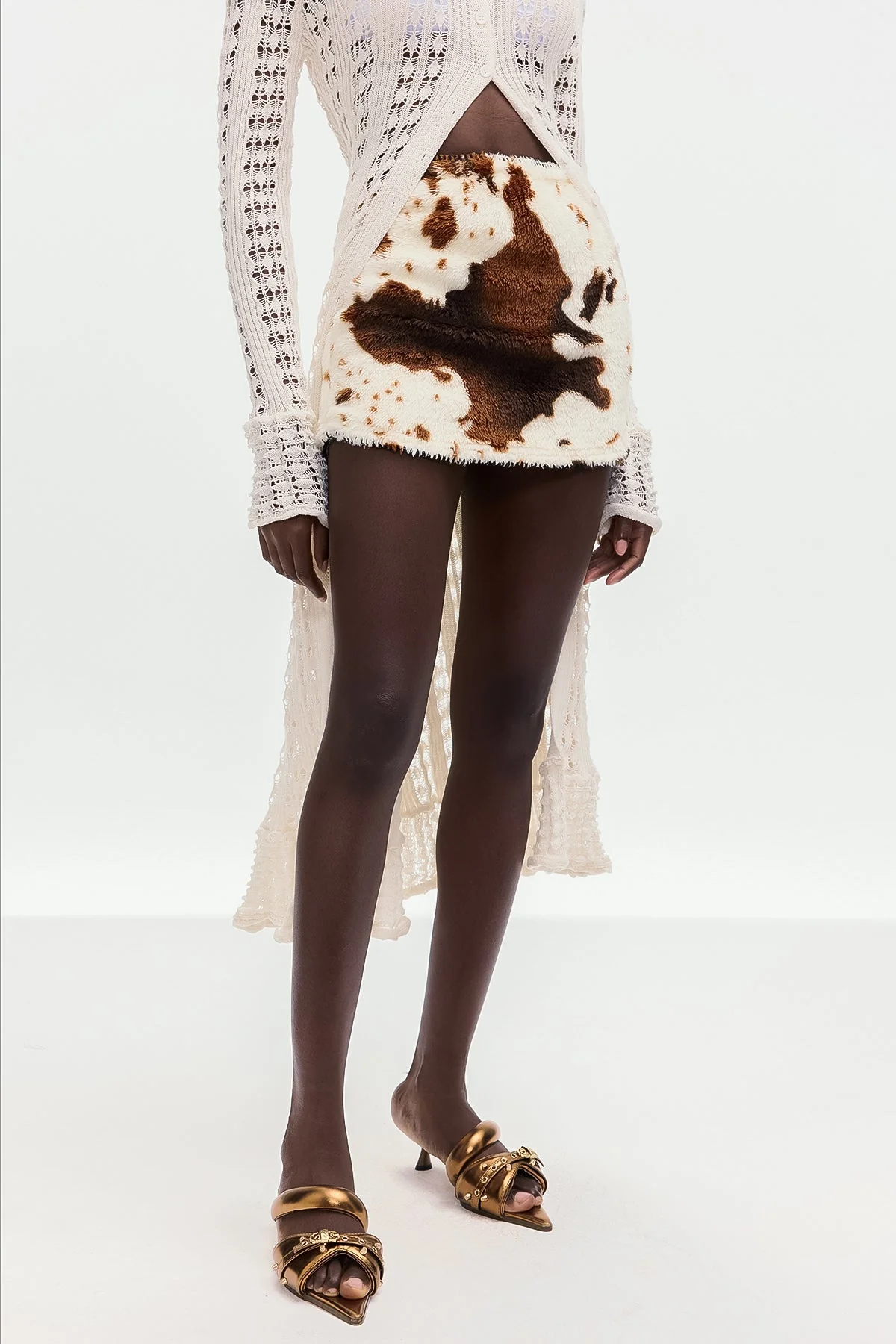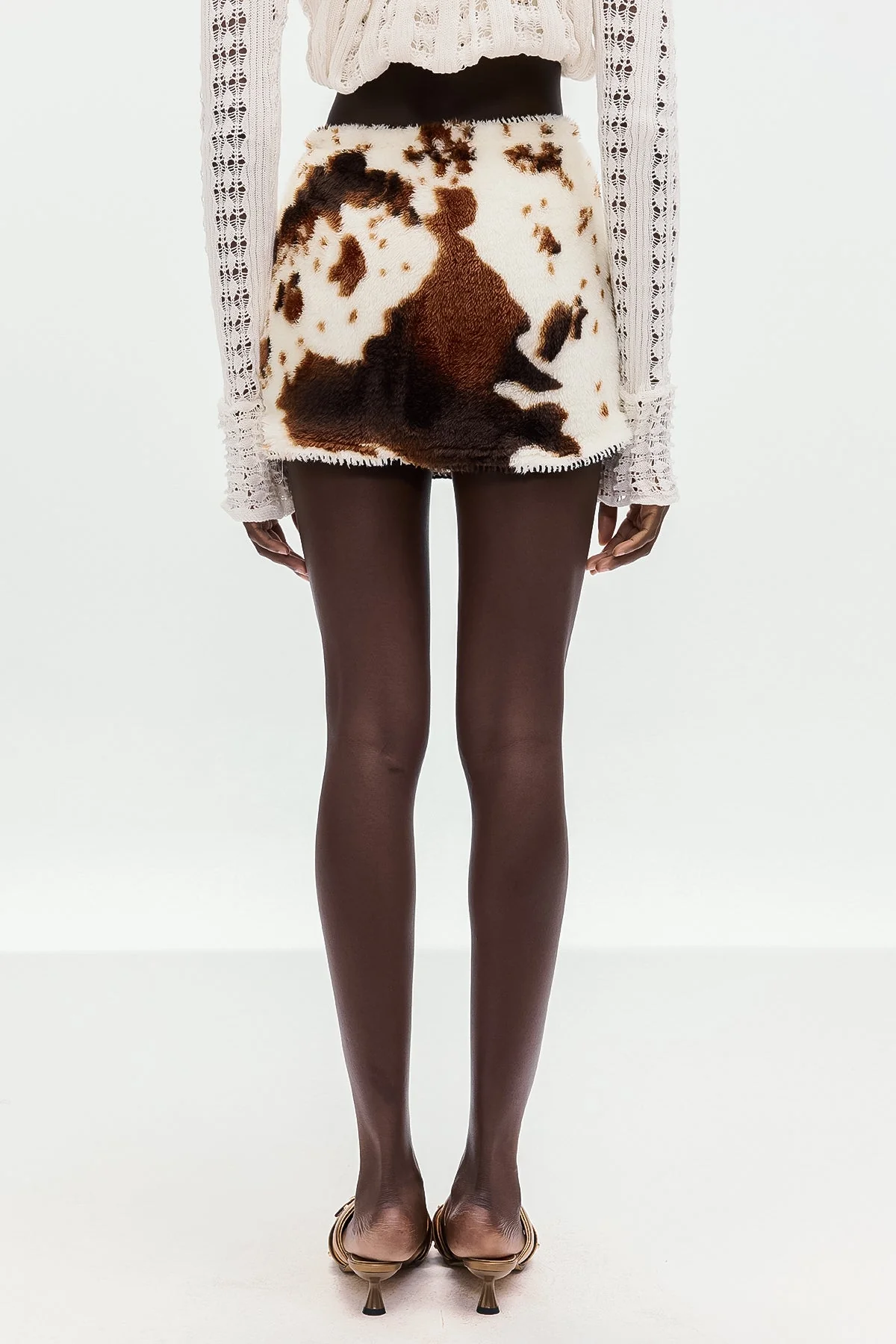 Elevate your wardrobe with the Cow Print Mini Skirt in brown, a modern twist on a classic design. The mini skirt boasts a bold cow print pattern, flatteringly tailored with slight stretch for comfort. Ideal for fashion-forward individuals, this skirt effortlessly pairs with various tops for casual outings or trend-conscious events. Expertly crafted for style and comfort, this unique piece balances playful patterning with urban edge charm. Experience the ultimate blend of style and versatility. Color may vary due to lighting on images.