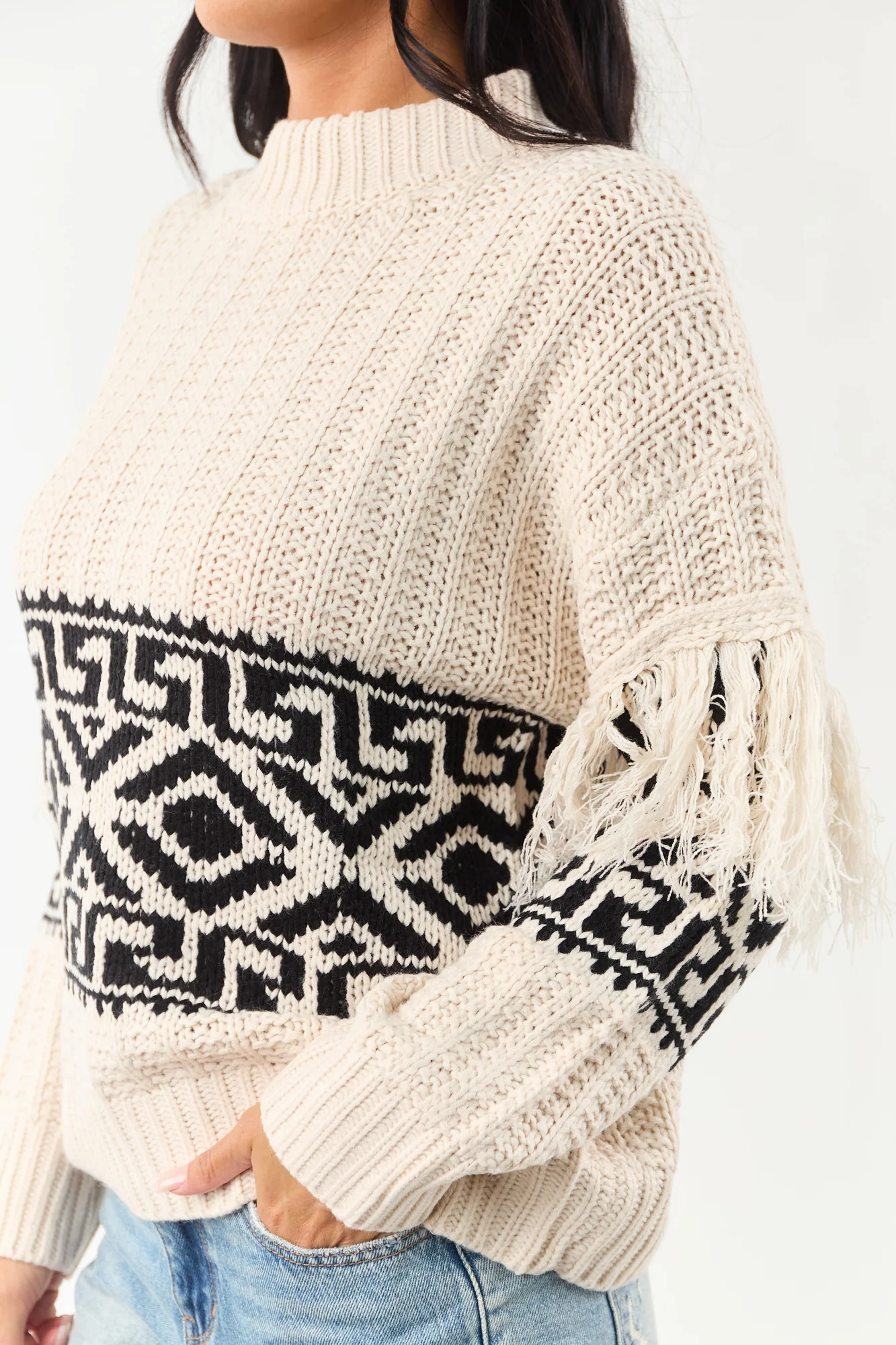 Revamp your closet with a unique sweater that feels as cozy as a cloud and is styled by the fashion Muses! This relaxed fit sweater features a stretchy knit with a chic geometric pattern in classic black. Perfect for everyday wear, it boasts drop shoulders, ribbed trim, and is made of 85% Acrylic and 15% Polyester for ultimate comfort. Elevate your style effortlessly with this imported piece from ee:some. Available in sizes S, M, and L. Model is wearing a size Small. Model’s measurements: Size 1, Height 59″, Bust 34″, Waist 26″.
