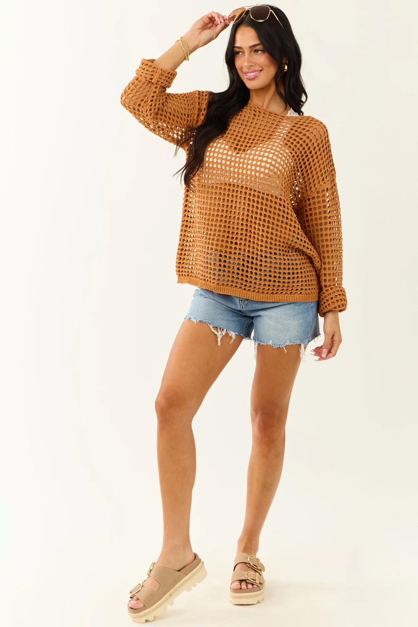 Indulge in ultimate comfort and warmth with this charming long sleeve top! Featuring an oversized fit with open crochet knit, drop shoulder, and ribbed trim for a stylish look. Made of 100% polyester, this airy top is perfect for a relaxed day out. Available in sizes S, M, and L to suit your preference. Explore the versatility of this top and adorn yourself with the perfect blend of style and coziness.