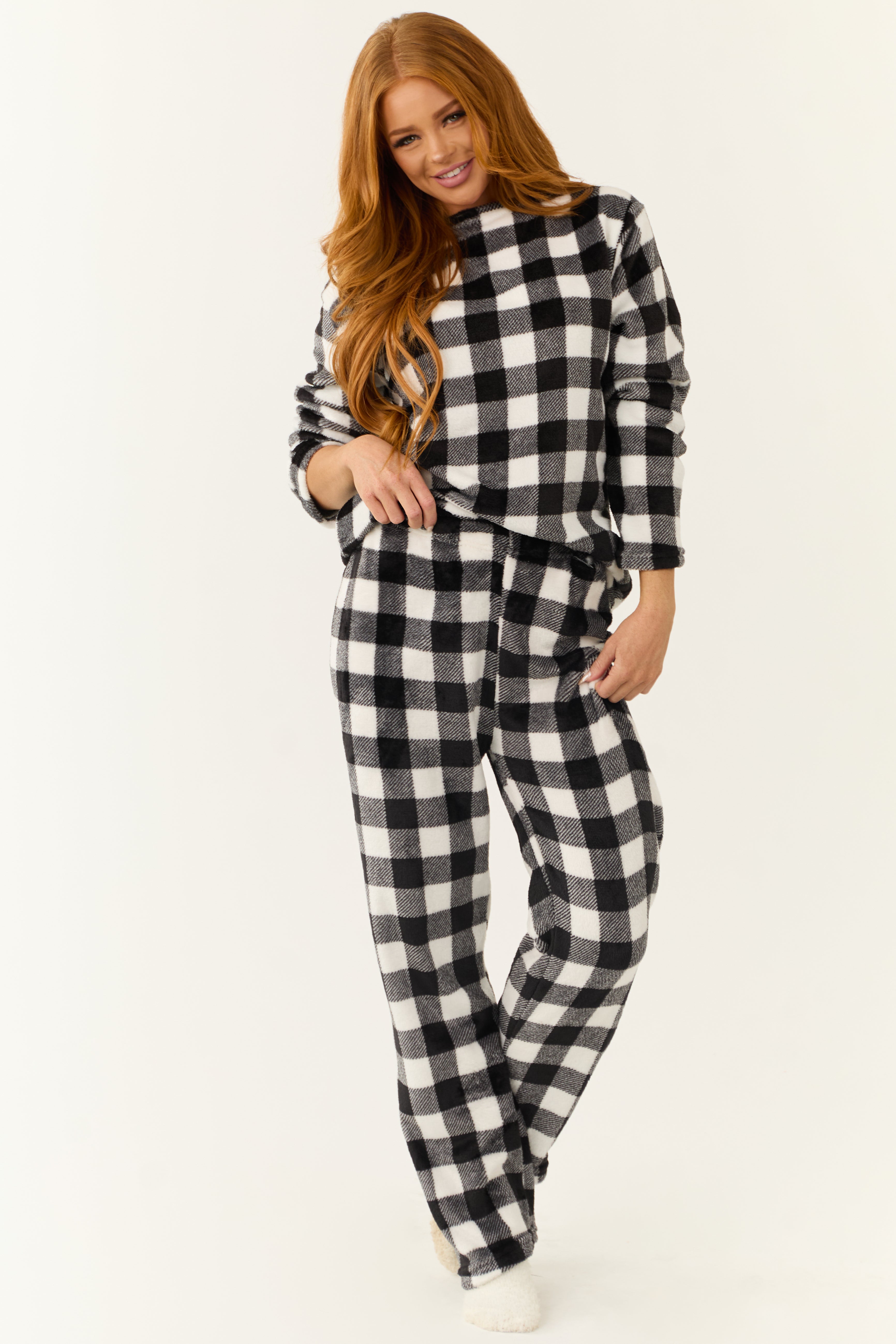 Indulge in comfort with our Black and White Checkered Plaid 2 Piece Soft Pajama Set. This set features a non-stretchy woven fabric for a classic look, long sleeves to keep you snug, and an elastic waist for flexible sizing. Enjoy the softness of 100% Polyester material. Perfect for a relaxing day at home or a restful nights sleep. Available in two sizes to ensure the perfect fit: S/M and L/XL.