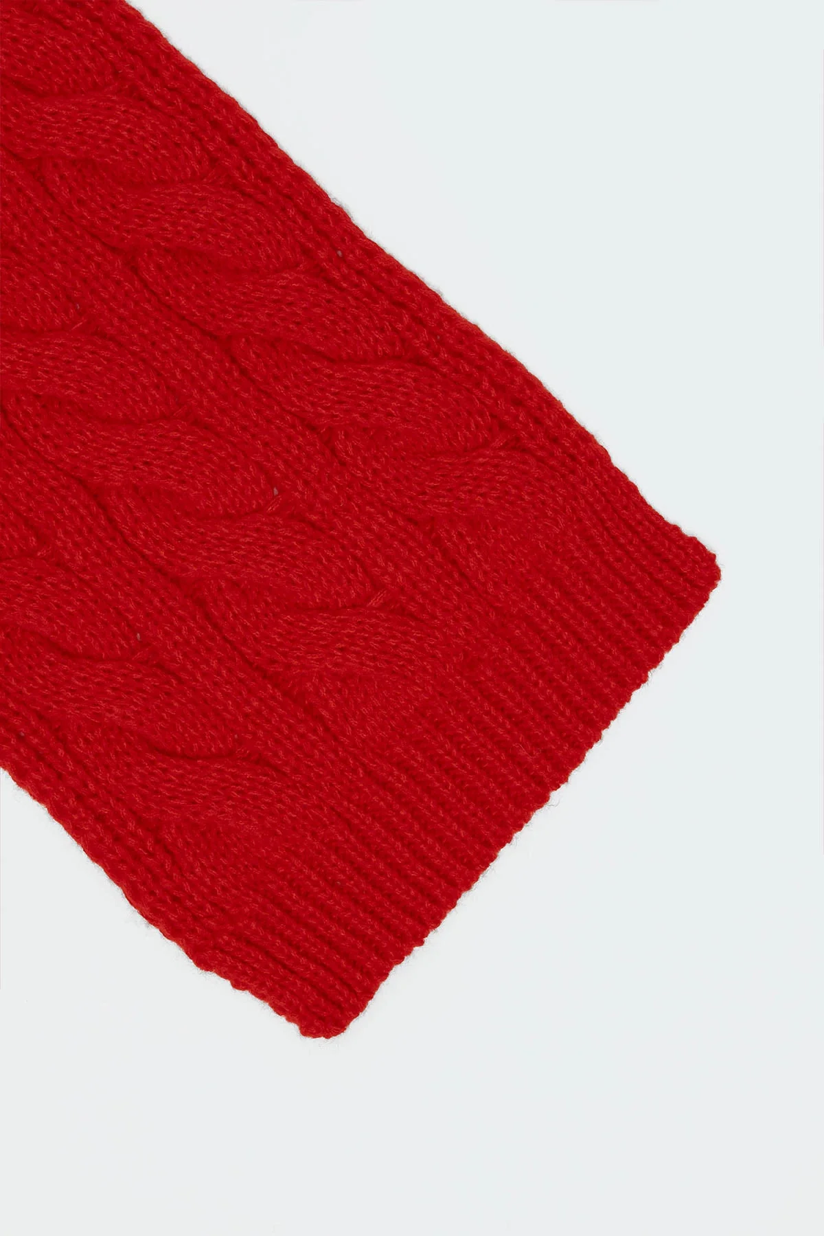 Indulge in luxurious warmth with our Cozy Red Cable Knit Scarf made of soft cotton-spandex blend fabric. Wrap yourself in comfort with dimensions of Length 63.8 inches and Width 9.5 inches. This versatile scarf can be machine washed for easy care. Enjoy the softness and style along with easy maintenance. Elevate your winter wardrobe effortlessly!