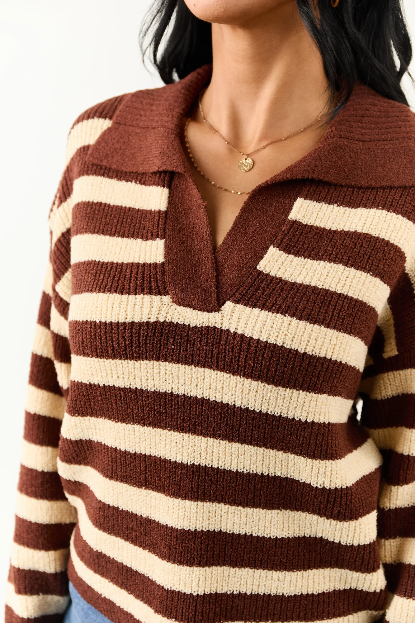 Indulge in comfort with our cozy rib-knit sweater featuring a stylish collar, bold stripes, and a relaxed fit. Crafted from a stretchy blend of 60% Acrylic, 30% Nylon, 10% Polyester, it offers ribbed trim for added style. This versatile piece is perfect for effortless styling, whether youre out and about or relaxing at home. The drop shoulder design adds a touch of casual chic, while the soft fabric ensures all-day comfort. Available in sizes S, M, and L. Length options: 24″, 24.5″, 25″. Enhance your wardrobe with this must-have piece. Free shipping available!