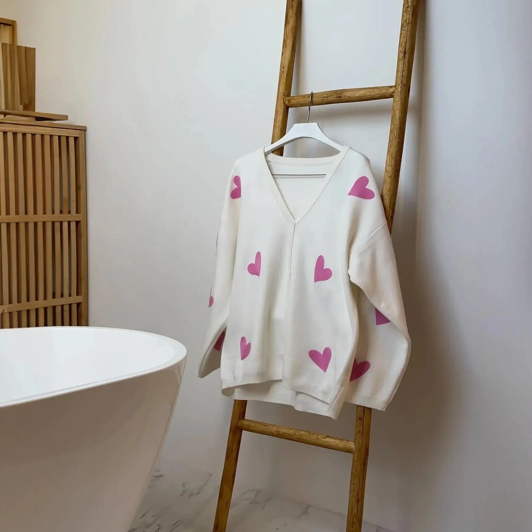 Indulge in luxurious warmth with our Cozy White Knit Cardigan. This stylish womens sweater features a soft wool and cotton blend, a figure-flattering V-neckline, and an adorable heart design. Transition effortlessly from casual to chic with this versatile piece that keeps you cozy in every season. Explore outfit inspiration on Instagram @mermaid_way. Enjoy a complimentary size exchange if needed.