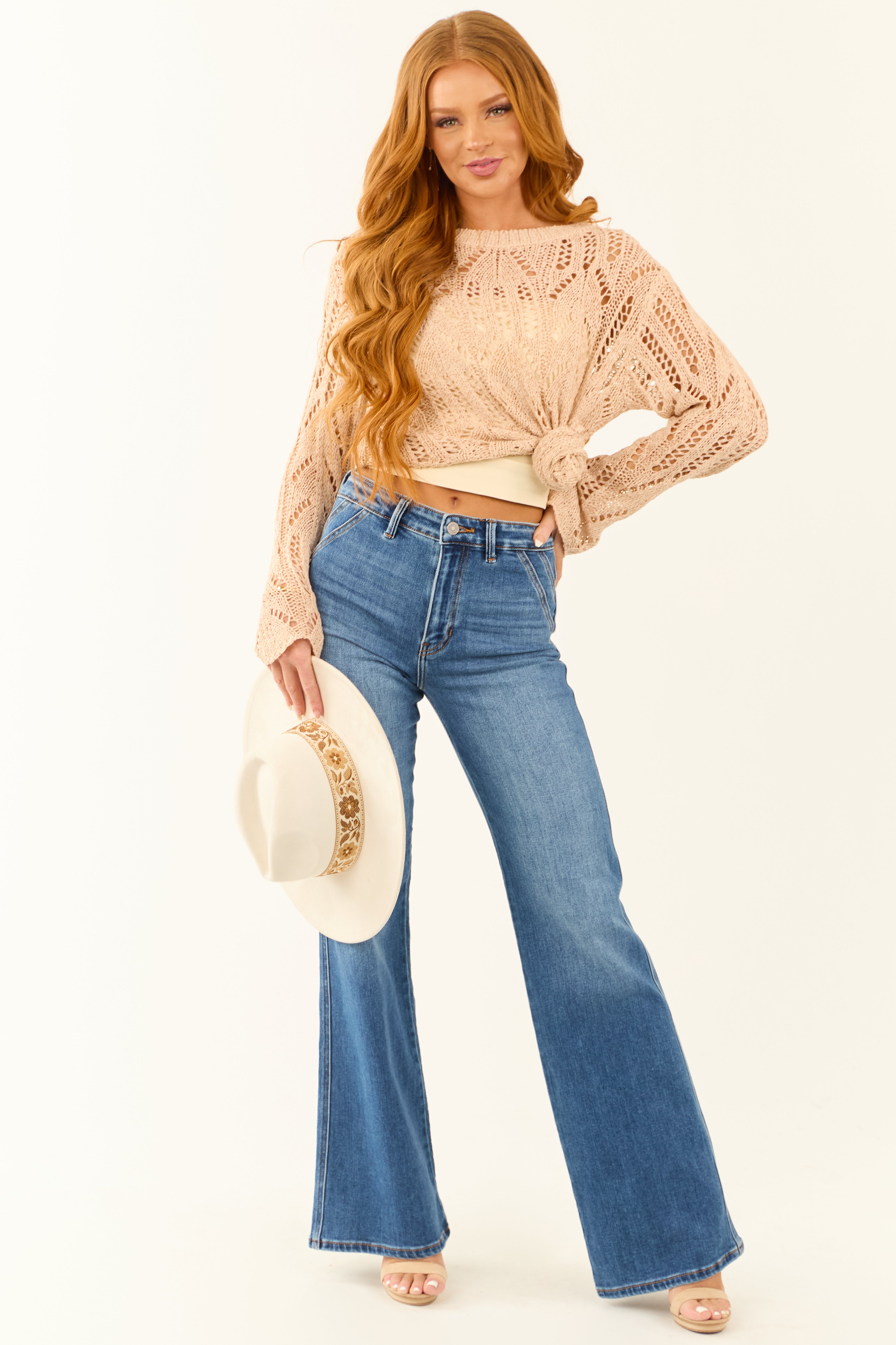 Indulge in the warmth and style with our Cozy White Open Crochet Knit Sweater. Crafted from a stretchy crochet knit with sheer details, featuring scalloped trim and a comfortable crew neckline. Available in sizes S, M, and L with sleeve lengths of 23″, 24″, and 25″ respectively. The bust ranges from 46″ to 48″ while the length varies from 23″ to 24″. Care instructions: Hand wash with cold water, do not bleach, line dry, iron on low heat, and avoid dry cleaning. Elevate your fashion with this versatile piece. Our model is wearing a size Small. Model #1 Profile: Size 1, Height 57″, Bust 34″, Waist 26″. Model #2 Profile: Size 1, Height 55″, Bust 33″, Waist 24″.