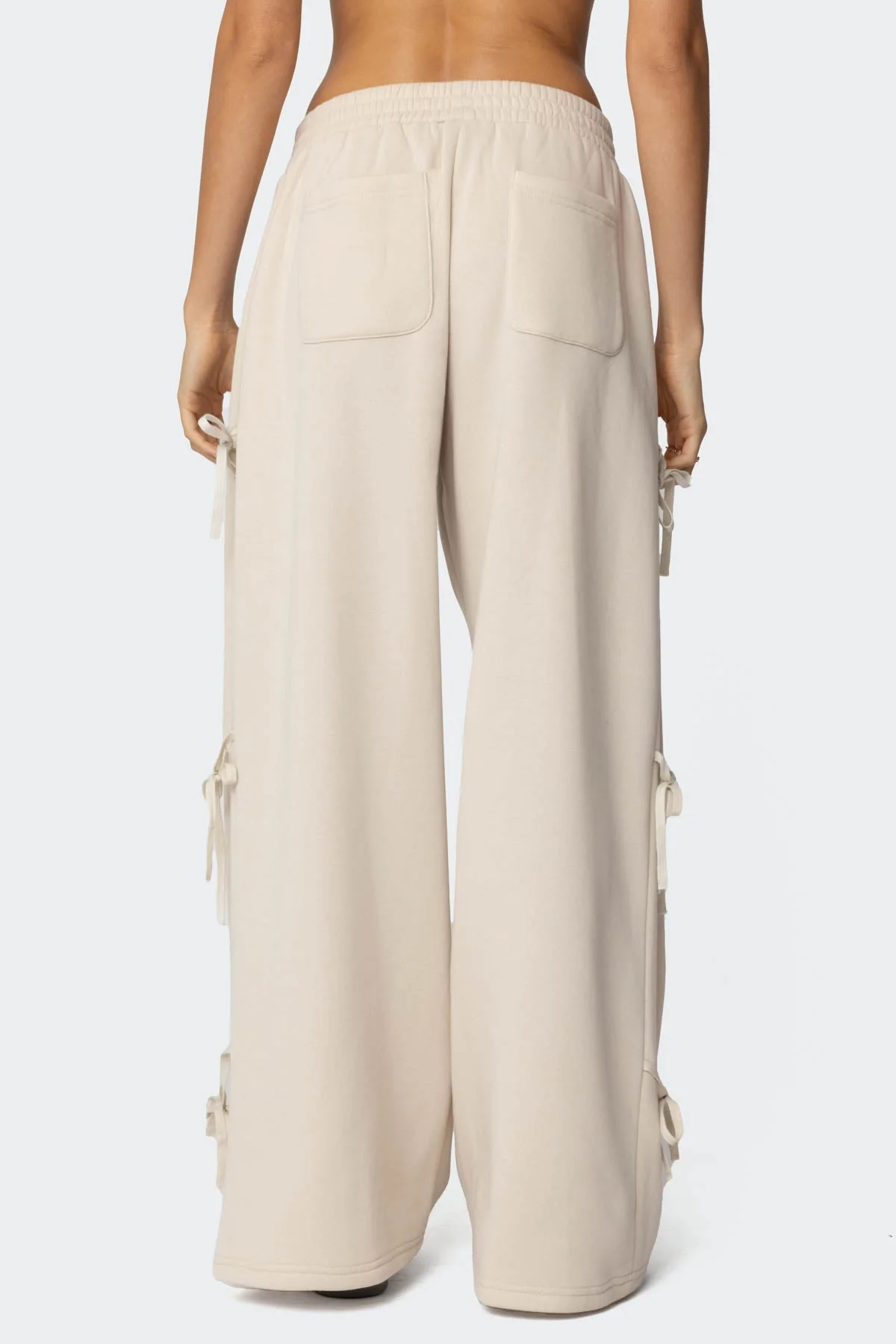 Upgrade your athleisure style with our Cream Baggy Sweatpants designed for supreme comfort and on-trend looks. Crafted from a blend of Polyester and Cotton, these pants feature a flattering baggy fit with side ribbon detailing. The elastic waistband ensures a custom fit, while the back pockets add functionality. Perfect for daily wear or lounging, our sweatpants are a must-have addition to your wardrobe. The model wears size S with an inseam of 30.9 inches. Care instructions: Machine wash cold with similar colors, avoid bleach, tumble dry low, and iron warm. Say goodbye to dull loungewear with our chic and cozy Cream Baggy Sweatpants!